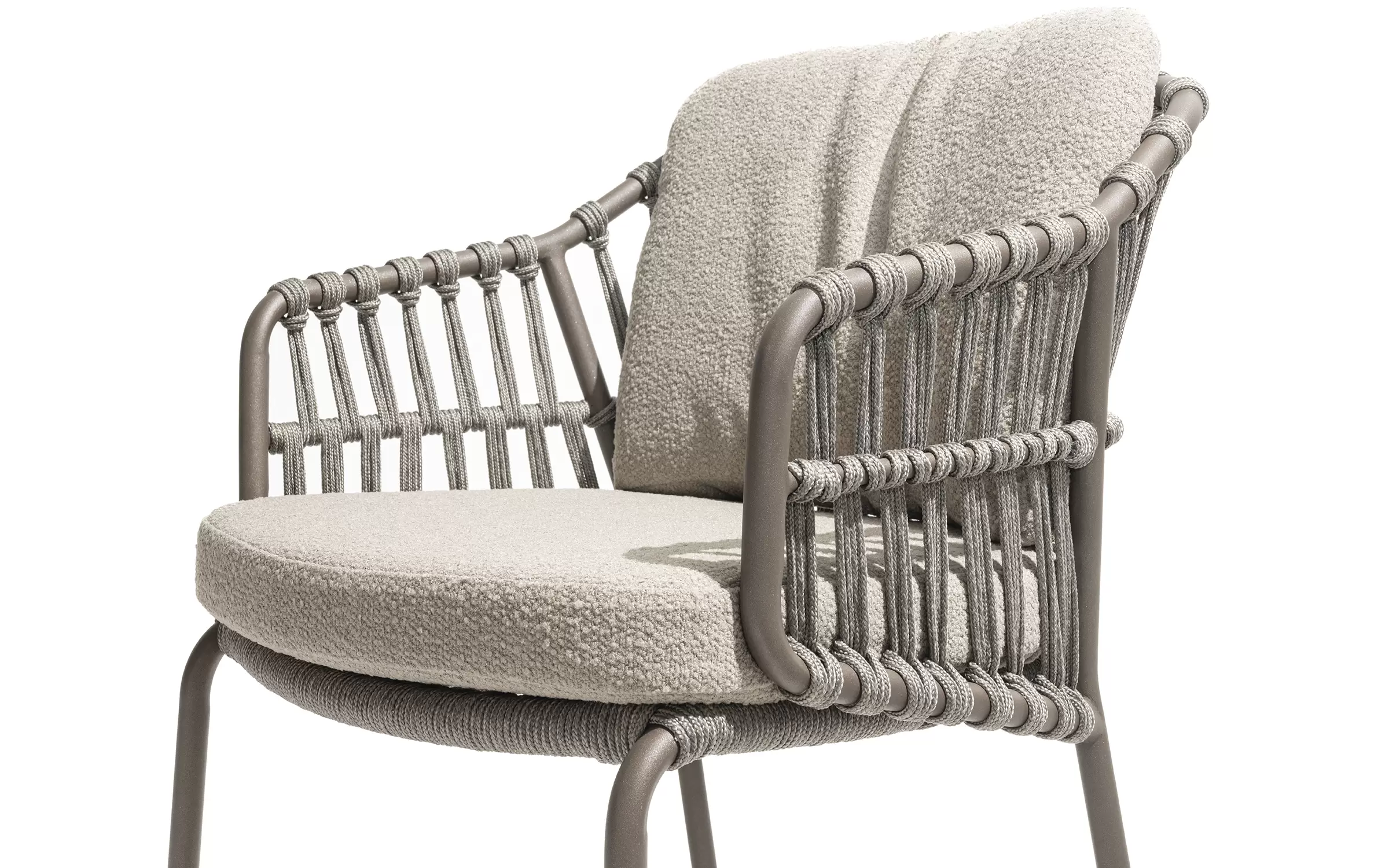 Zdejmowane poszewki obiciowe z materiału Boucle wyplecionego z odpornych na działanie UV i wody włókien polipropylenowych.