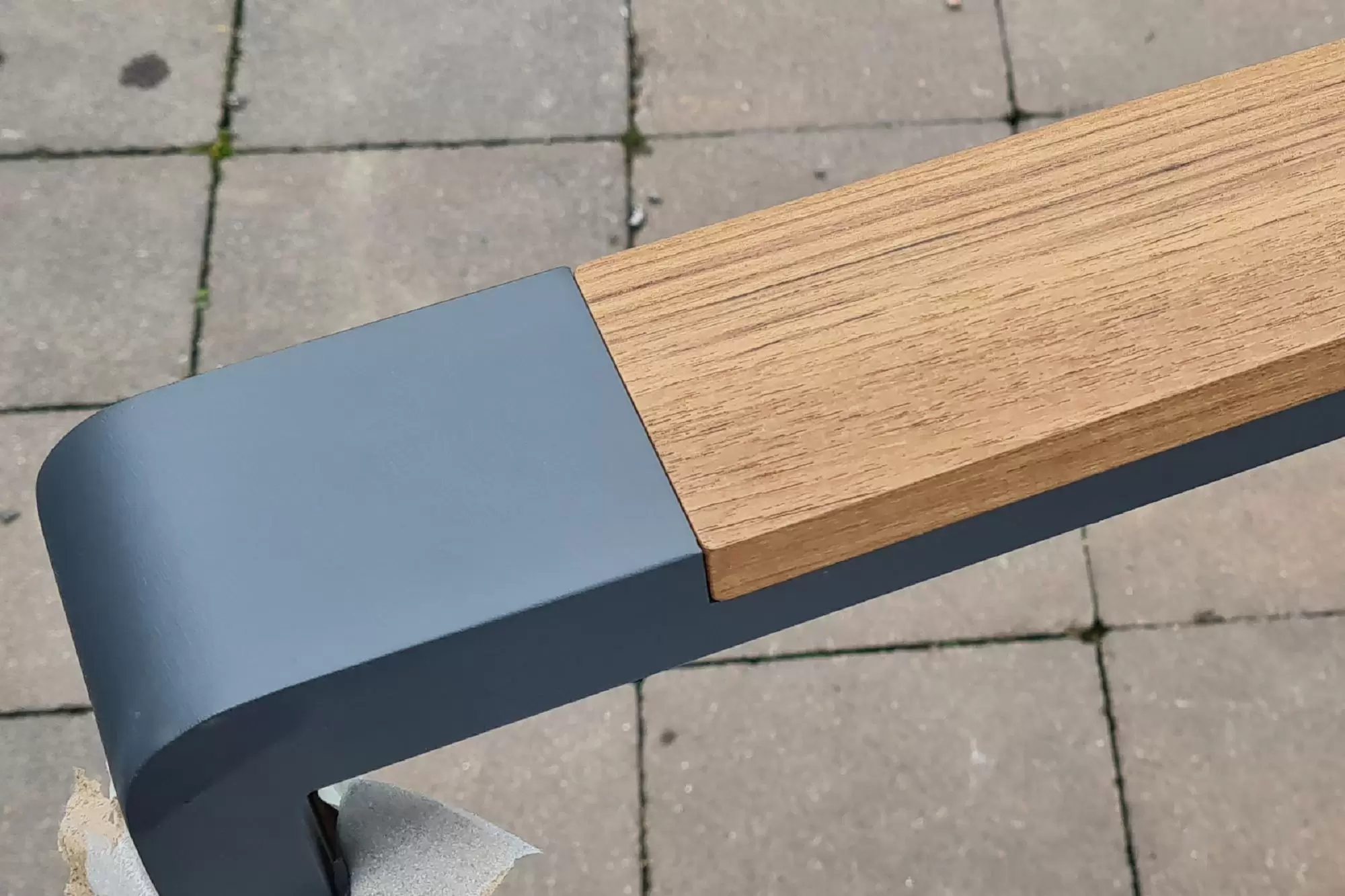 Konstrukcja meble z profili aluminiowych spawanych i malowanych proszkowo na kolor grafitowy.