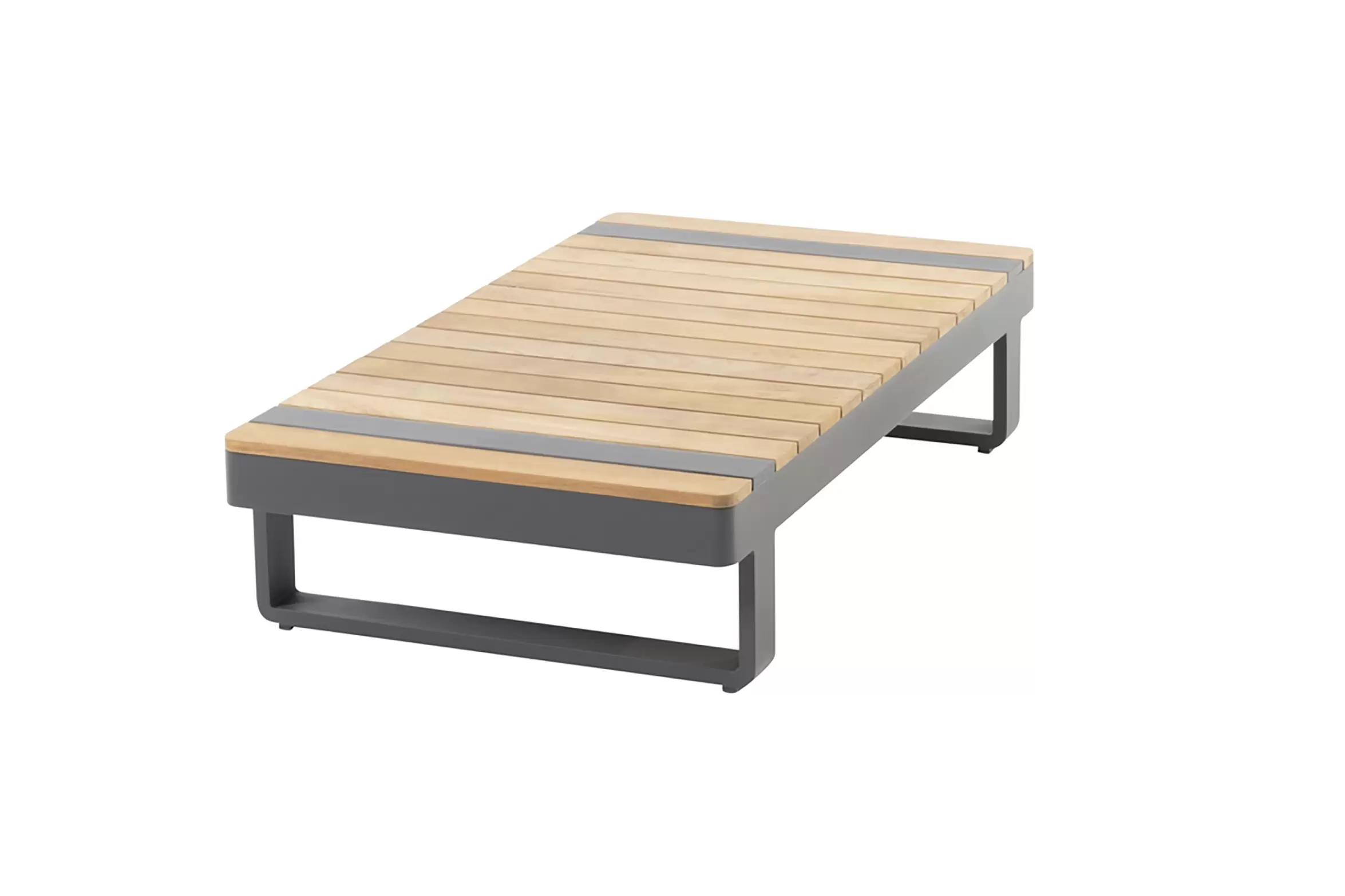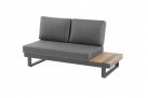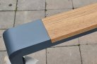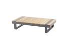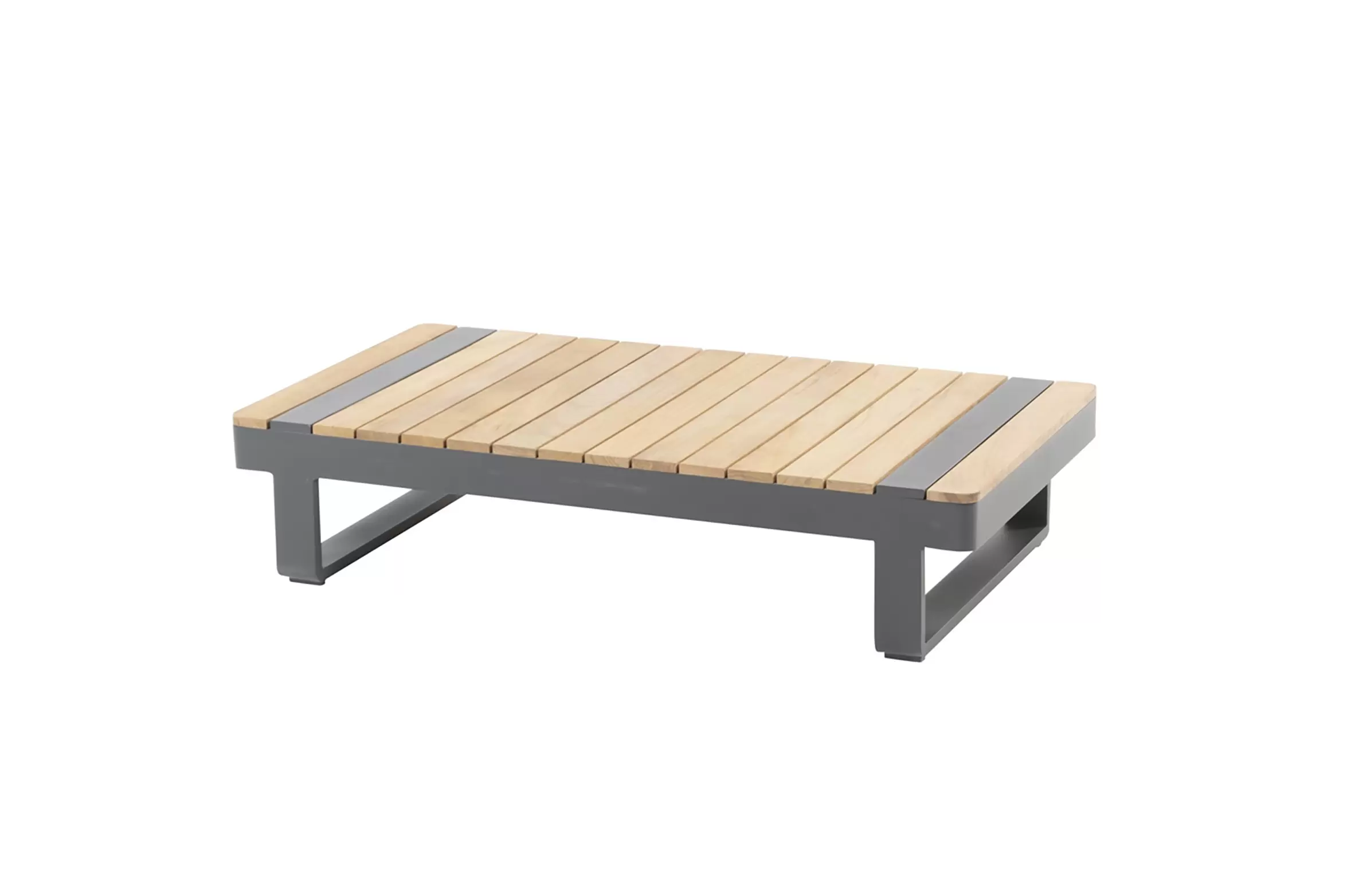 Blat stolika, podłokietniki i blaty stolików bocznych z drewna tekowego.