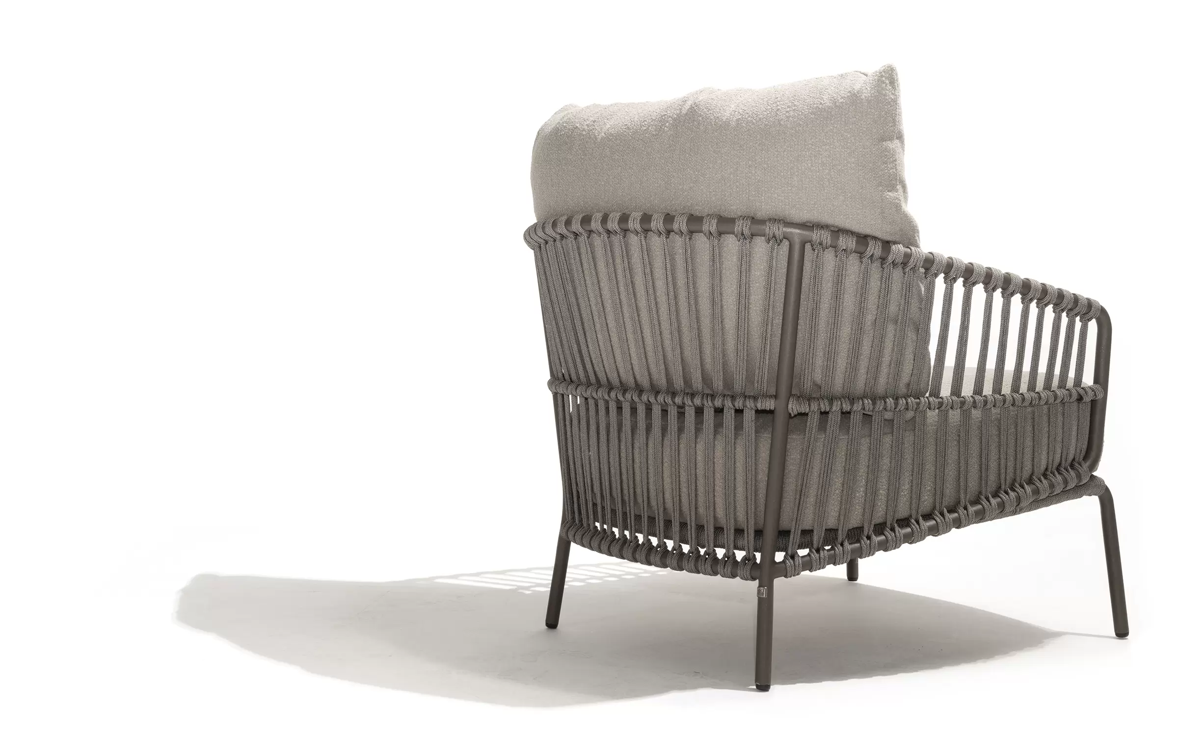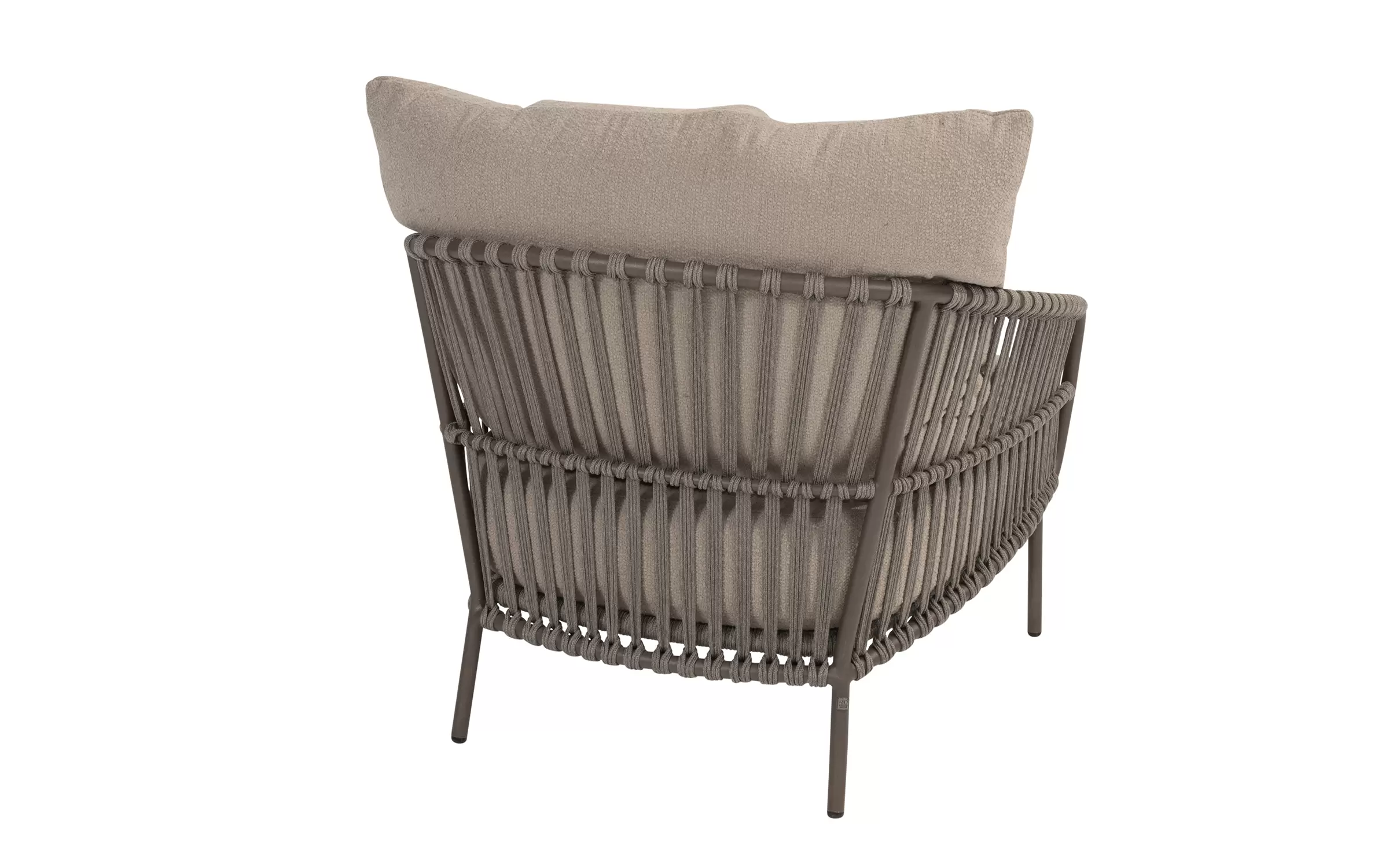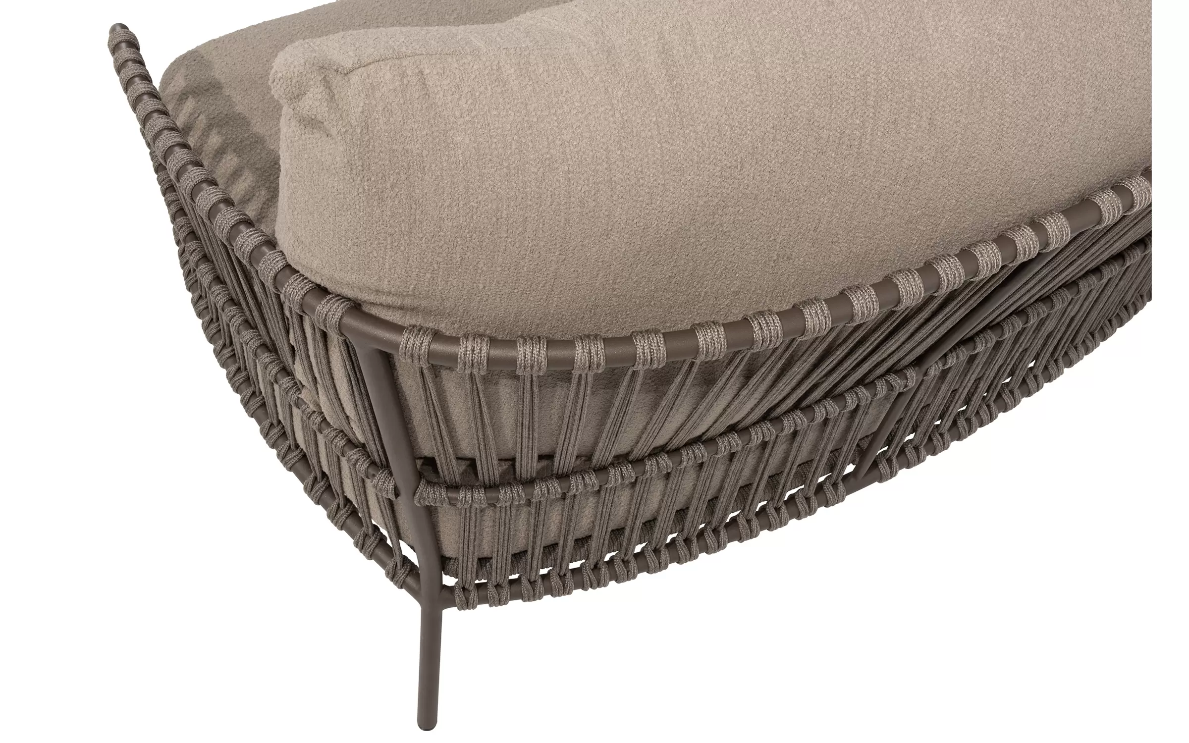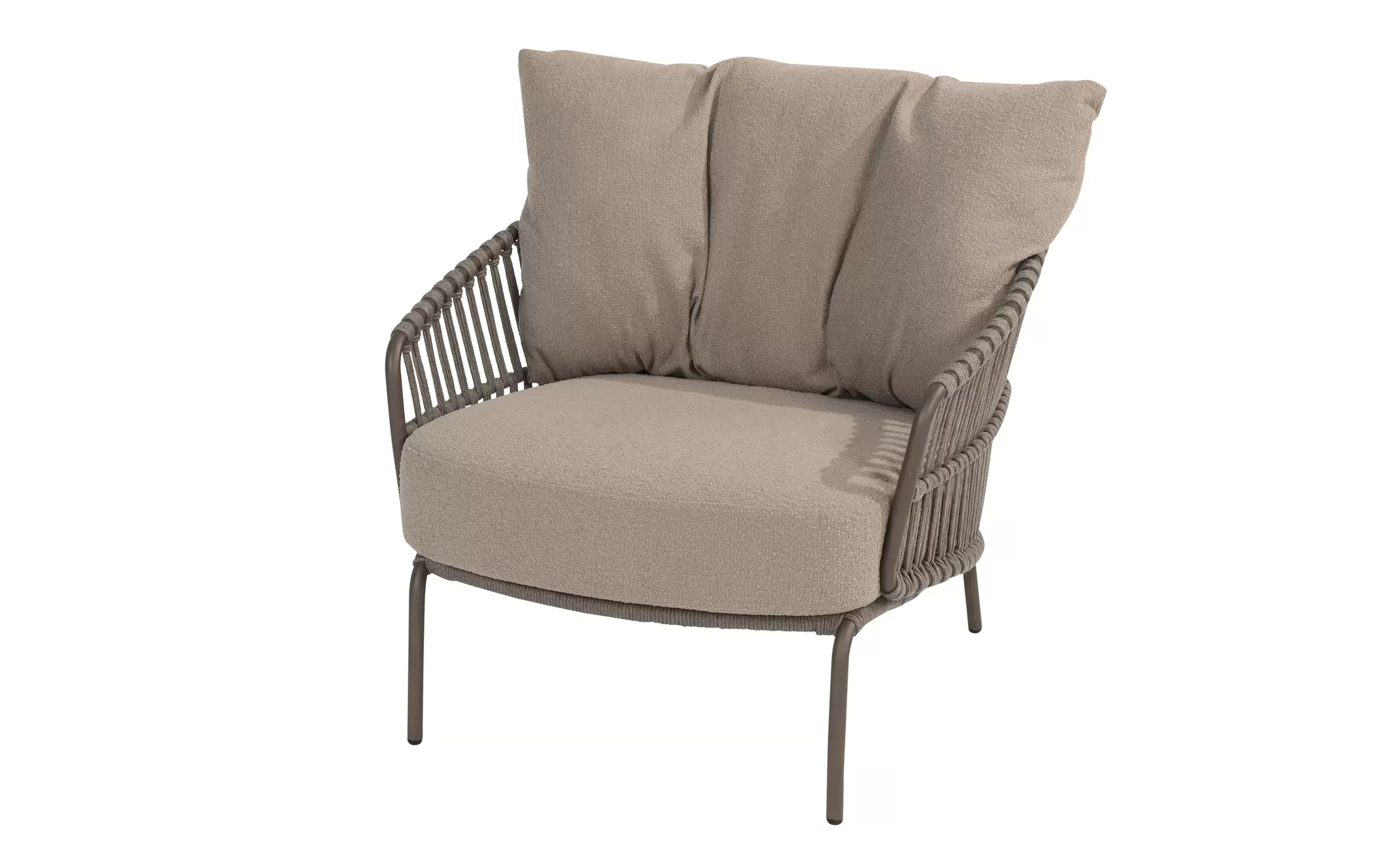 Komfort wypoczynku dzięki fotelowi wypoczynkowej z kolekcji 4SO Capalbio. Fotel został zaprojektowany tak, abyś mógł marzyć w wyjątkowo grubych poduszkach z miękkiej tkaniny bouclé. Nowoczesny design z eleganckimi krzywiznami i otwartymi wzorami lin dodaje stylowego akcentu każdemu ogrodowi.