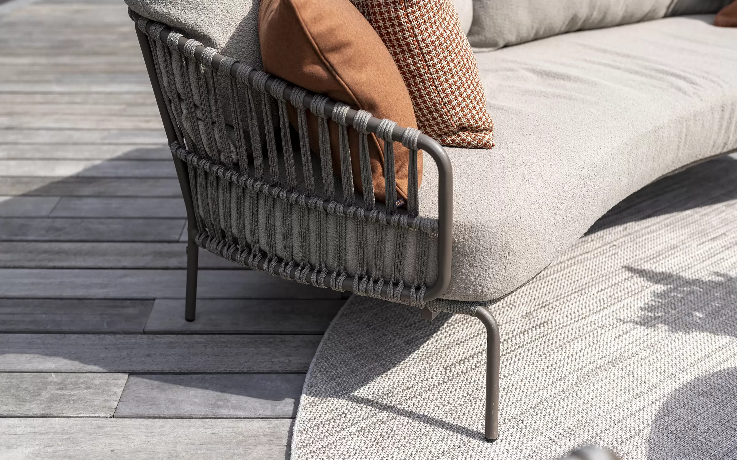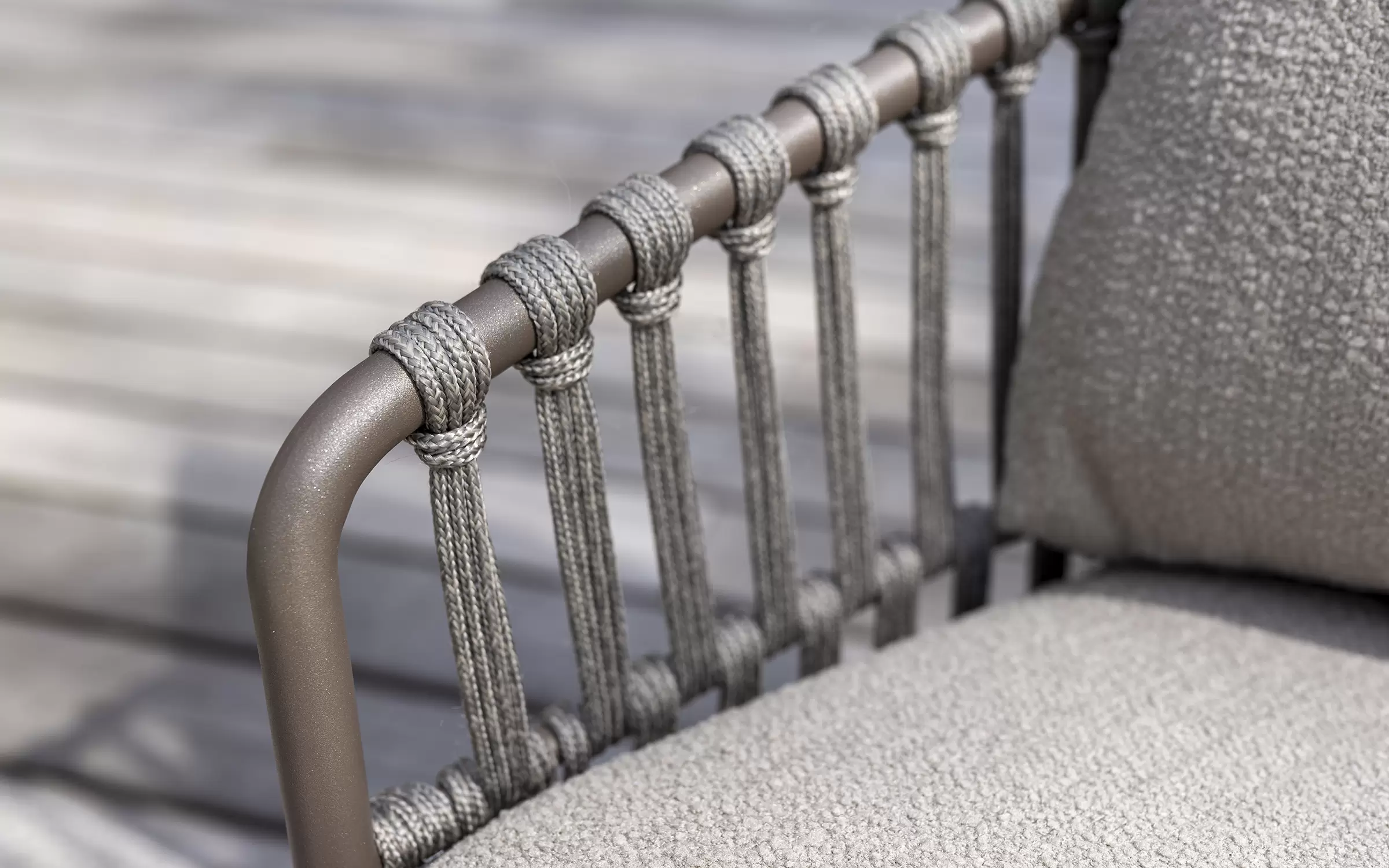 Zdejmowane poszewki obiciowe z materiału Boucle wyplecionego z odpornych na działanie UV i wody włókien polipropylenowych.