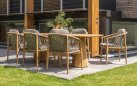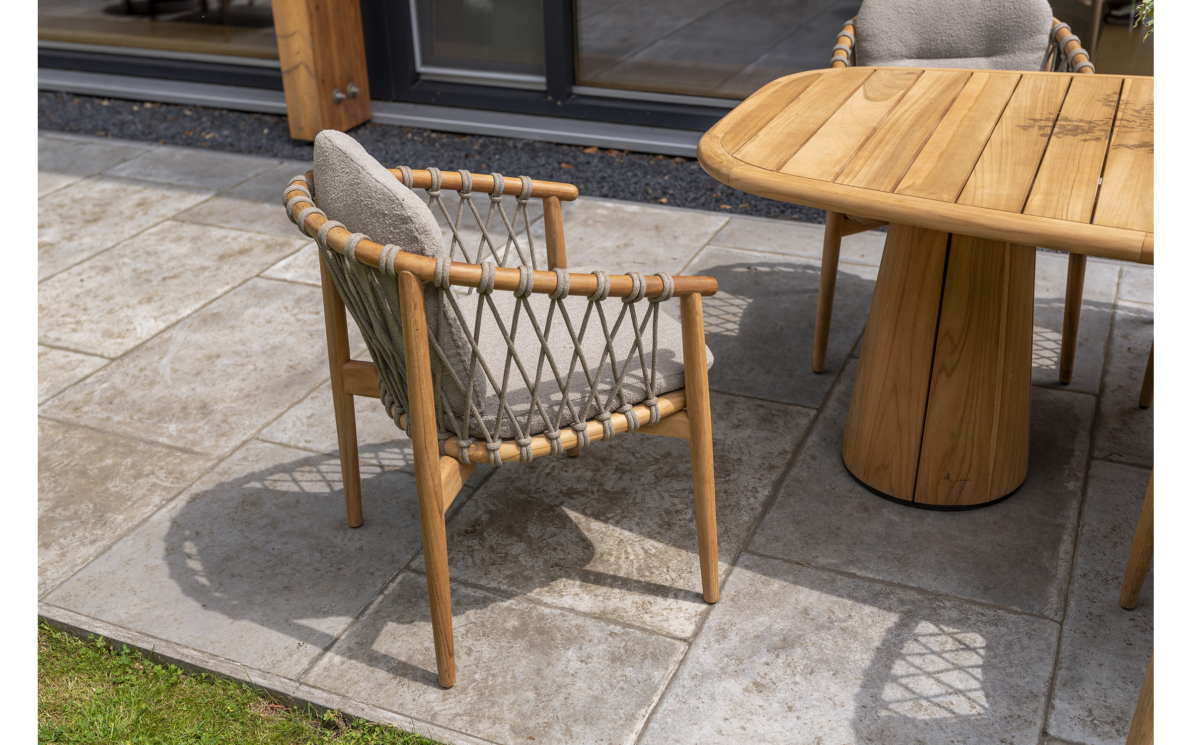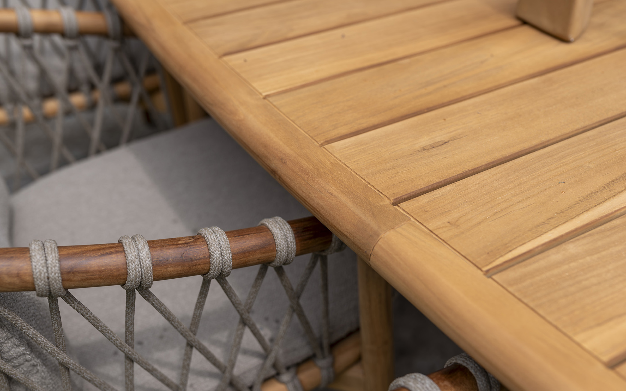 Dzięki wytrzymałemu drewnu tekowemu stół ogrodowy Capri wytrzyma wszystkie warunki pogodowe i można go pozostawić na zewnątrz przez cały rok. Ciepłe, rustykalne drewno nadaje Twojemu ogrodowi lub tarasowi naturalną i zachęcającą atmosferę.