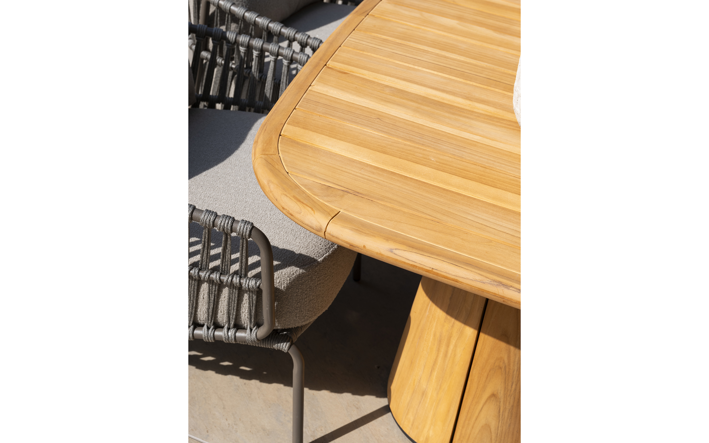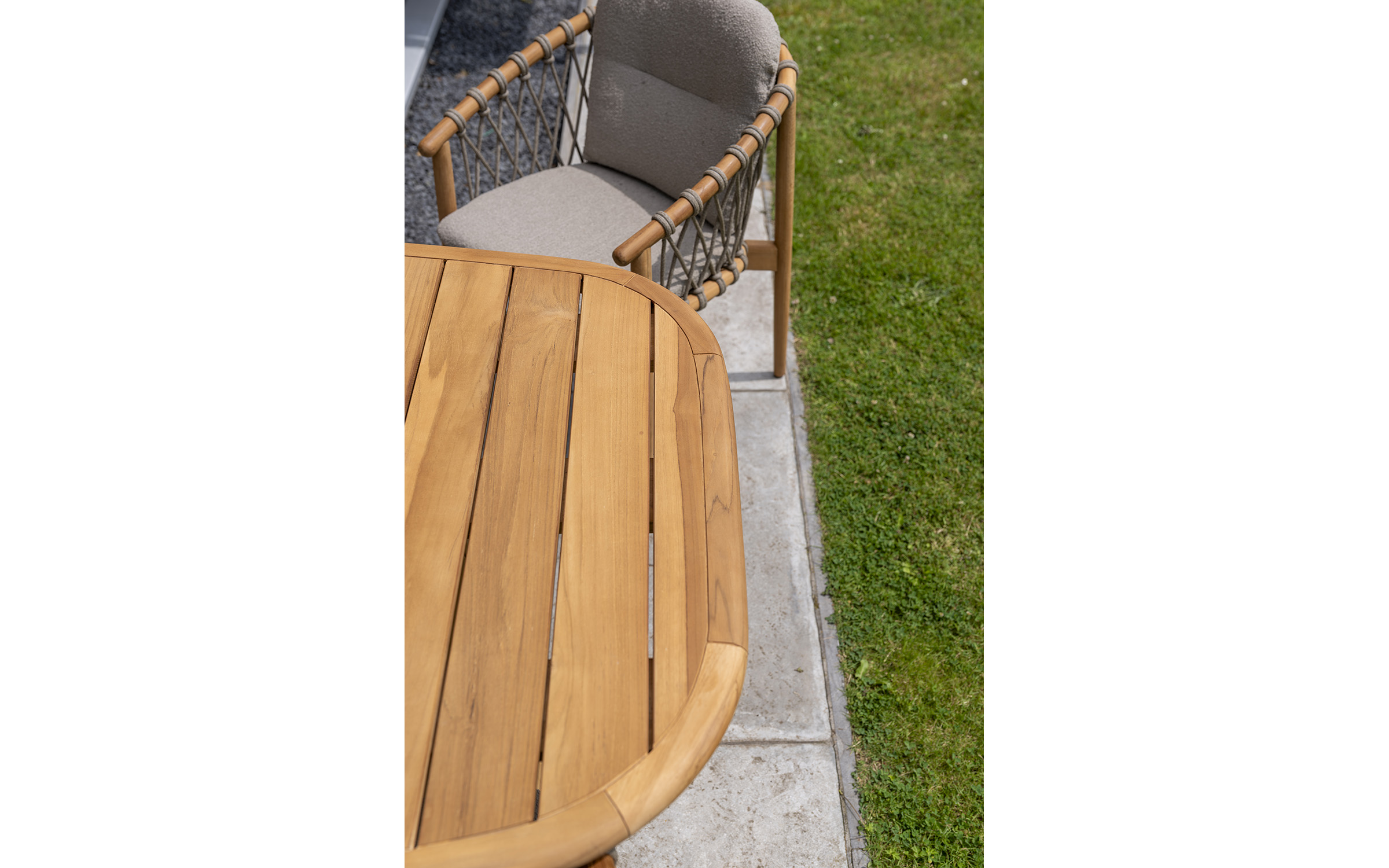 Stół ogrodowy Capri od Taste by 4 Seasons wnosi i trwałość do Twojego ogrodu lub tarasu. Solidny stół ogrodowy wykonany jest w całości z wysokiej jakości drewna tekowego, znanego ze swojego naturalnego wyglądu i odporności na warunki atmosferyczne.