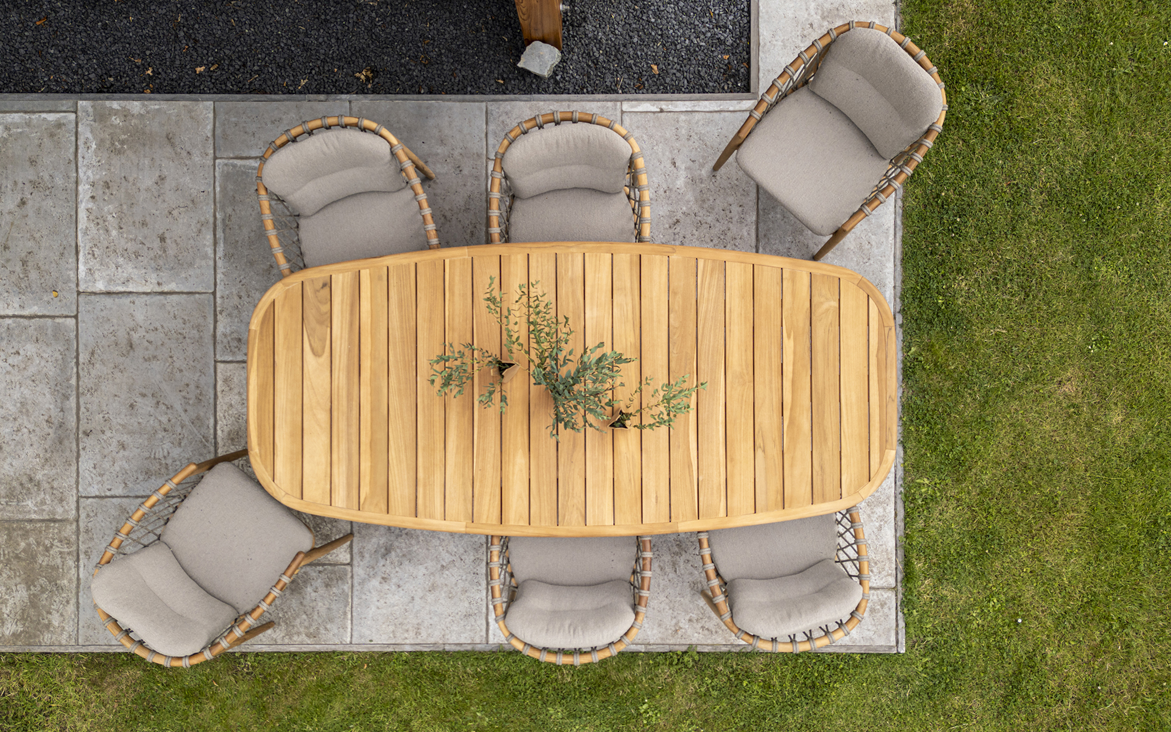 Beczkowaty blat o wymiarach 240 x 110 cm i wysokości 75 cm stół oferuje dużo miejsca na przytulne posiłki na świeżym powietrzu. Nowoczesny design podkreślają nogi stołu w kształcie odwróconego stozka, dzięki czemu stół ogrodowy Capri przyciąga wzrok.