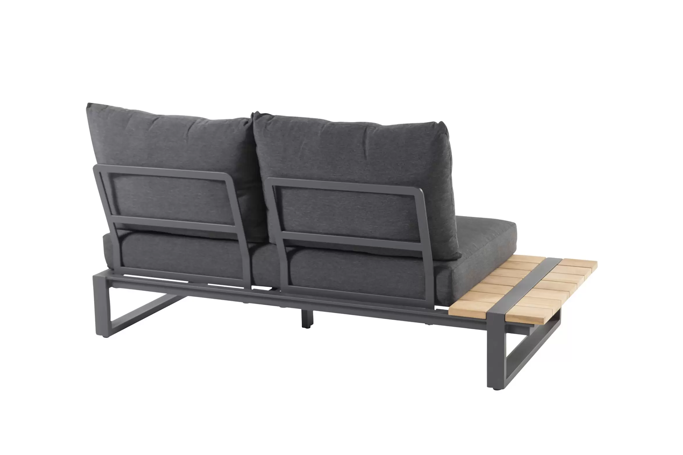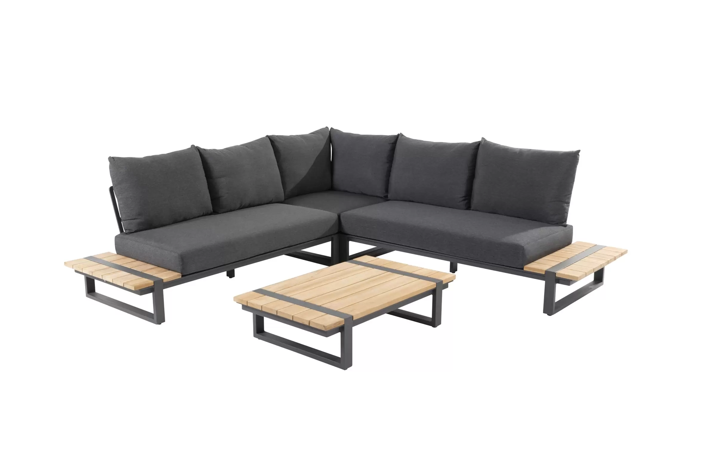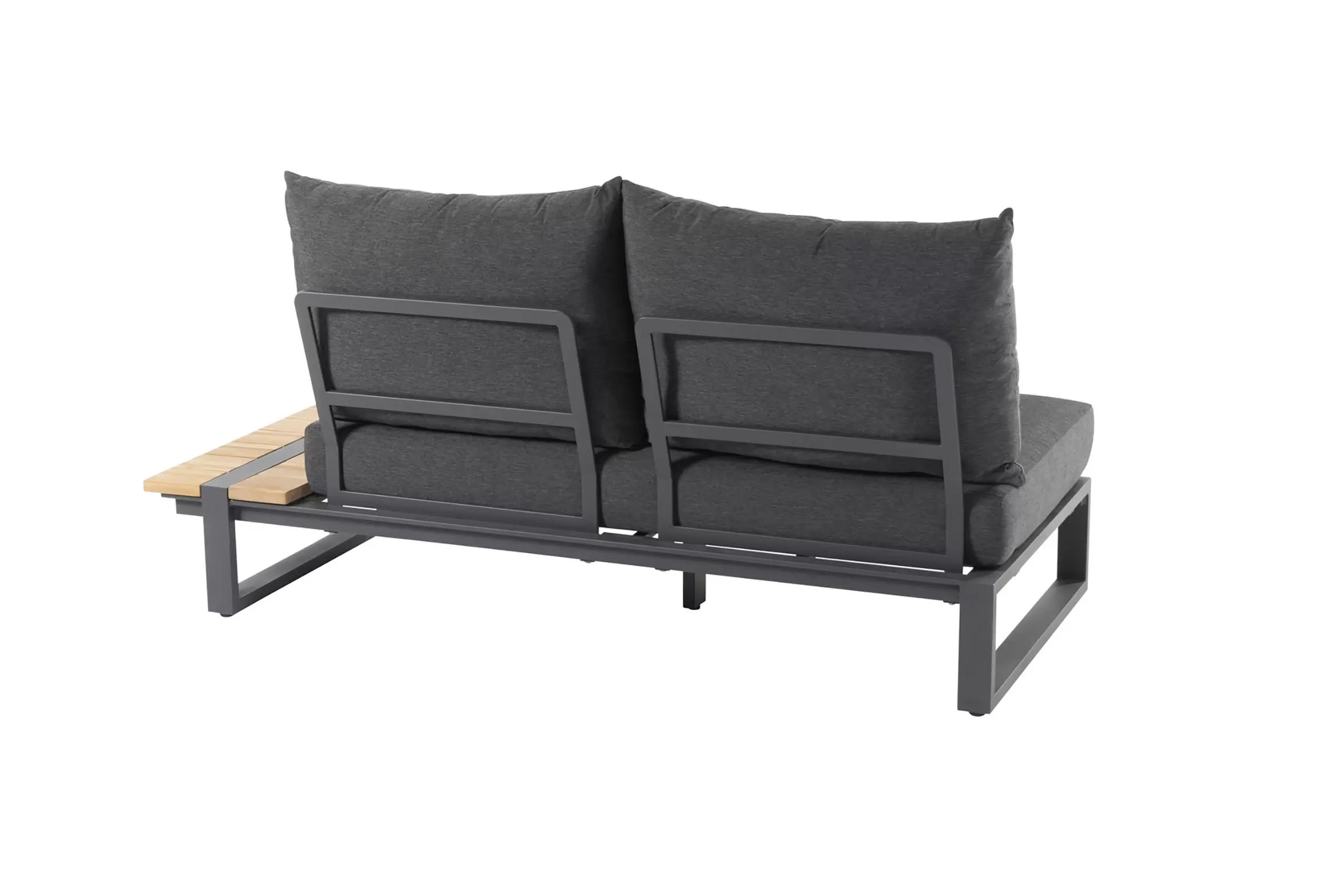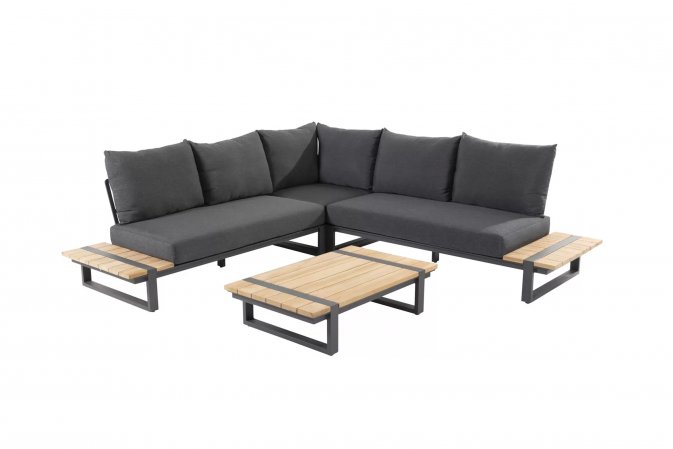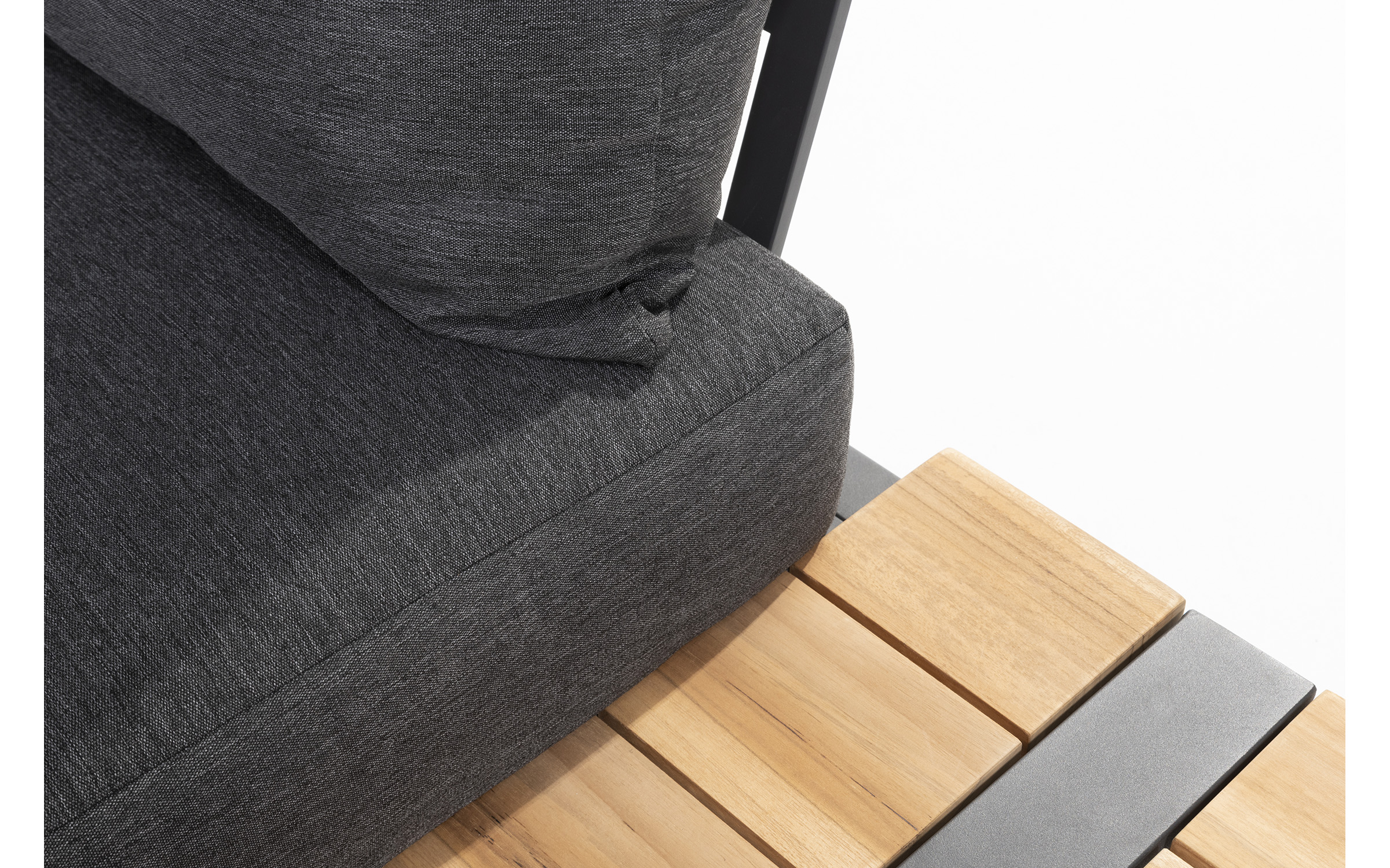 Konstrukcja aluminiowa malowana proszkowo z blatami z deseczek z drewna teakowego.