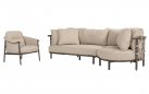 Subtelne wyplatanie ze sznurka jest w finezyjny sposób splecione z aluminiową ramą pokrytą powłoką proszkową w kolorze Terre (ciemnoszarobrazową), co nadaje tej dużej kanapie luksusowy wygląd. Bogato tapicerowane poduszki są niezwykle miękkie i oferują fantastyczny komfort siedzenia i leżenia.