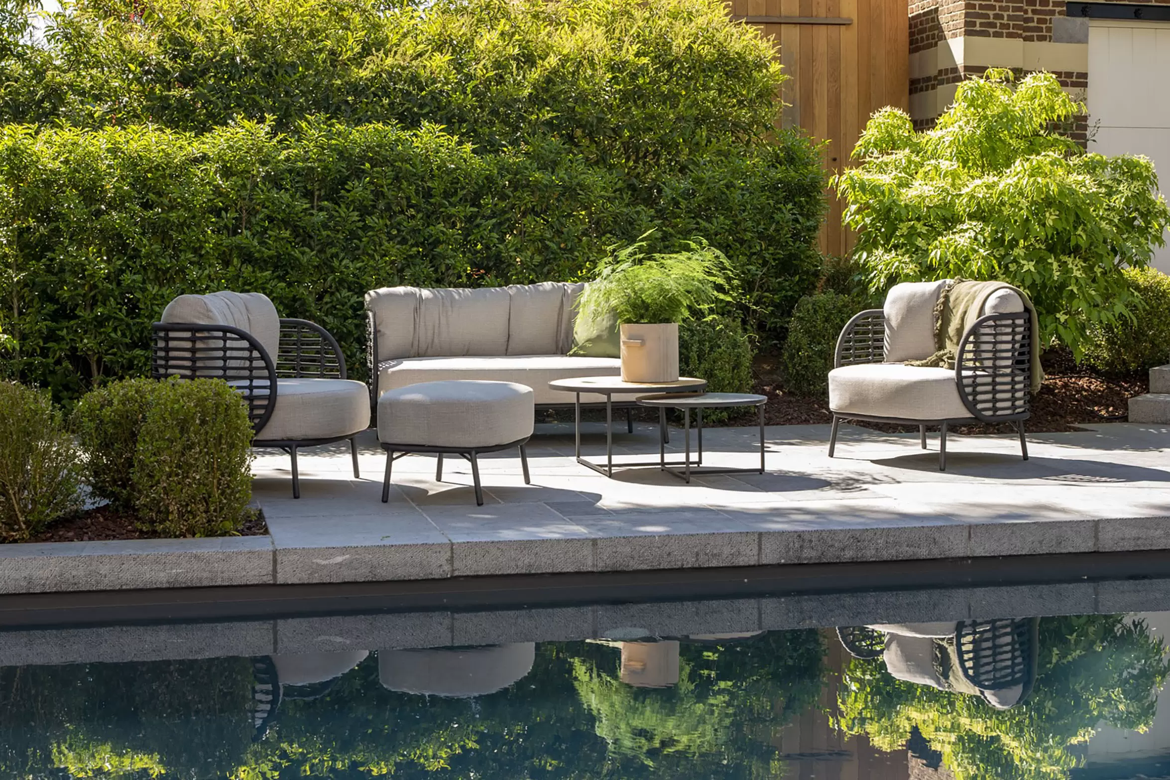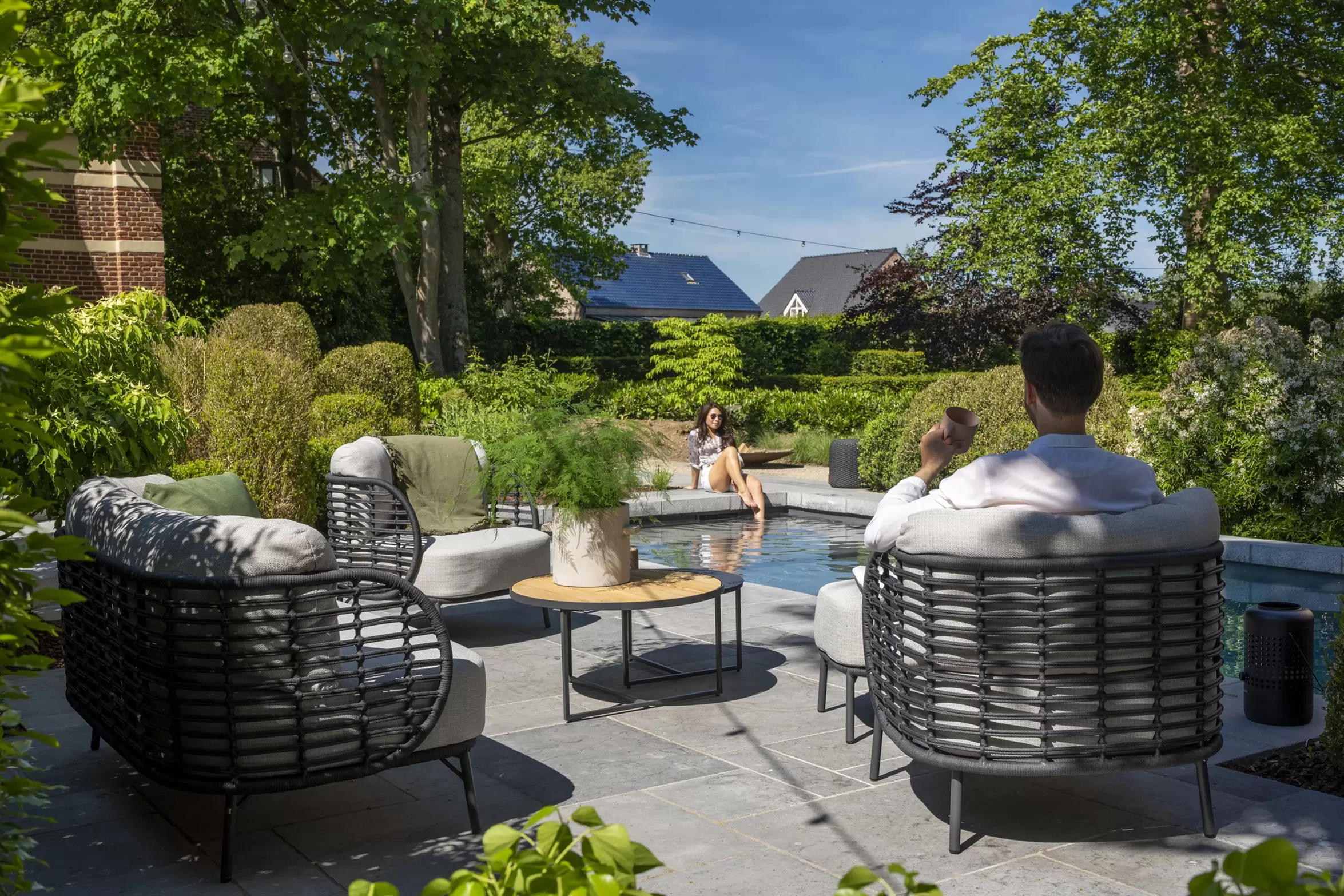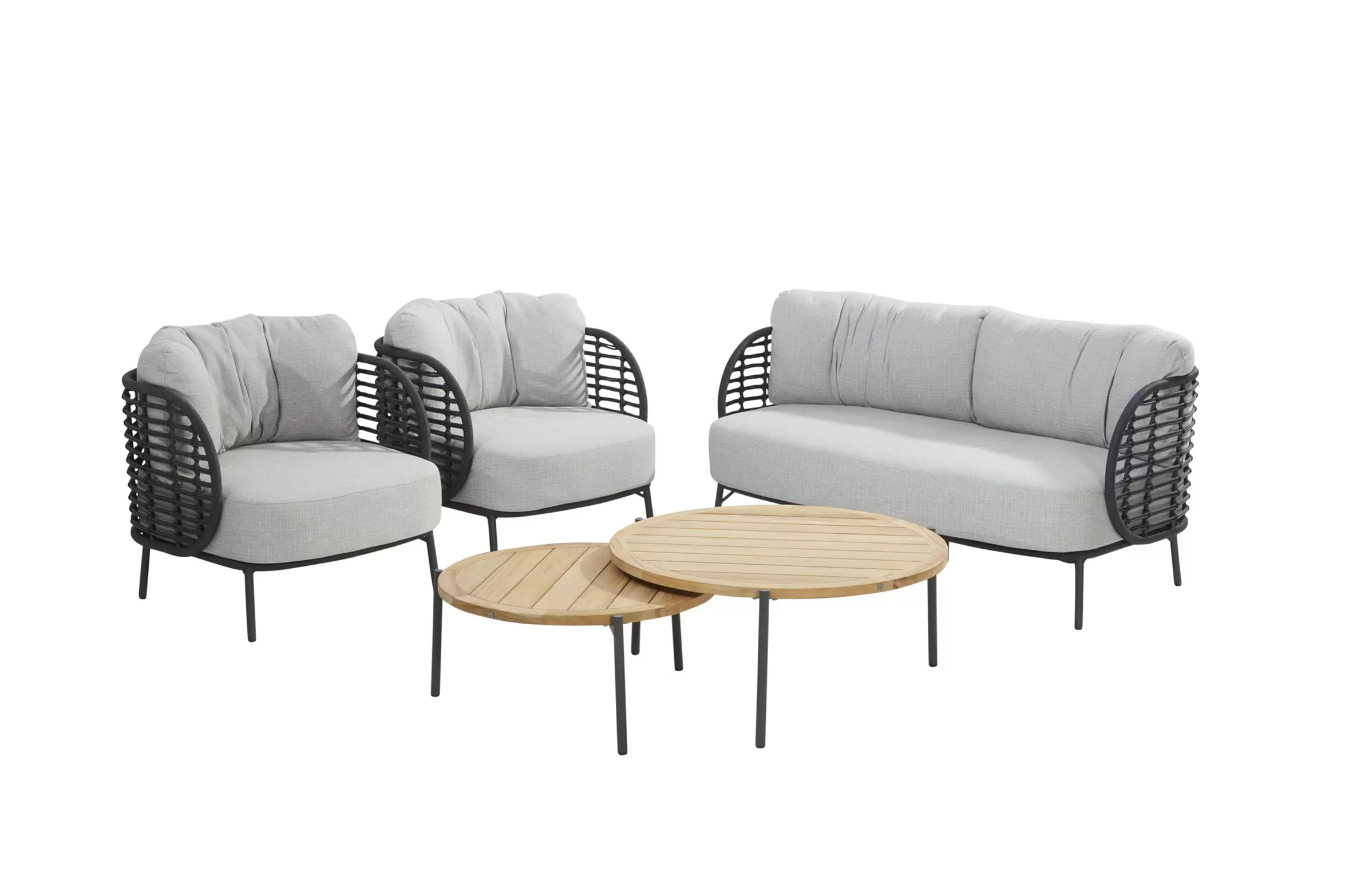 Zestaw wypoczynkowy Fabrice od 4 Seasons Outdoor idealnie wpisuje się w nową kolekcję 4SO 2022. Wygodny zestaw ma oryginalny design i oferuje niespotykany dotąd komfort siedzenia. Sofa jest wyposażona w 3 obszernie wypełnione poduszki, a fotele są wyposażone w 2 poduszki. Poduszki oparcia biegną po łuku zgodnie z zakrzywionymi oparciami, zapewniając podparcie.