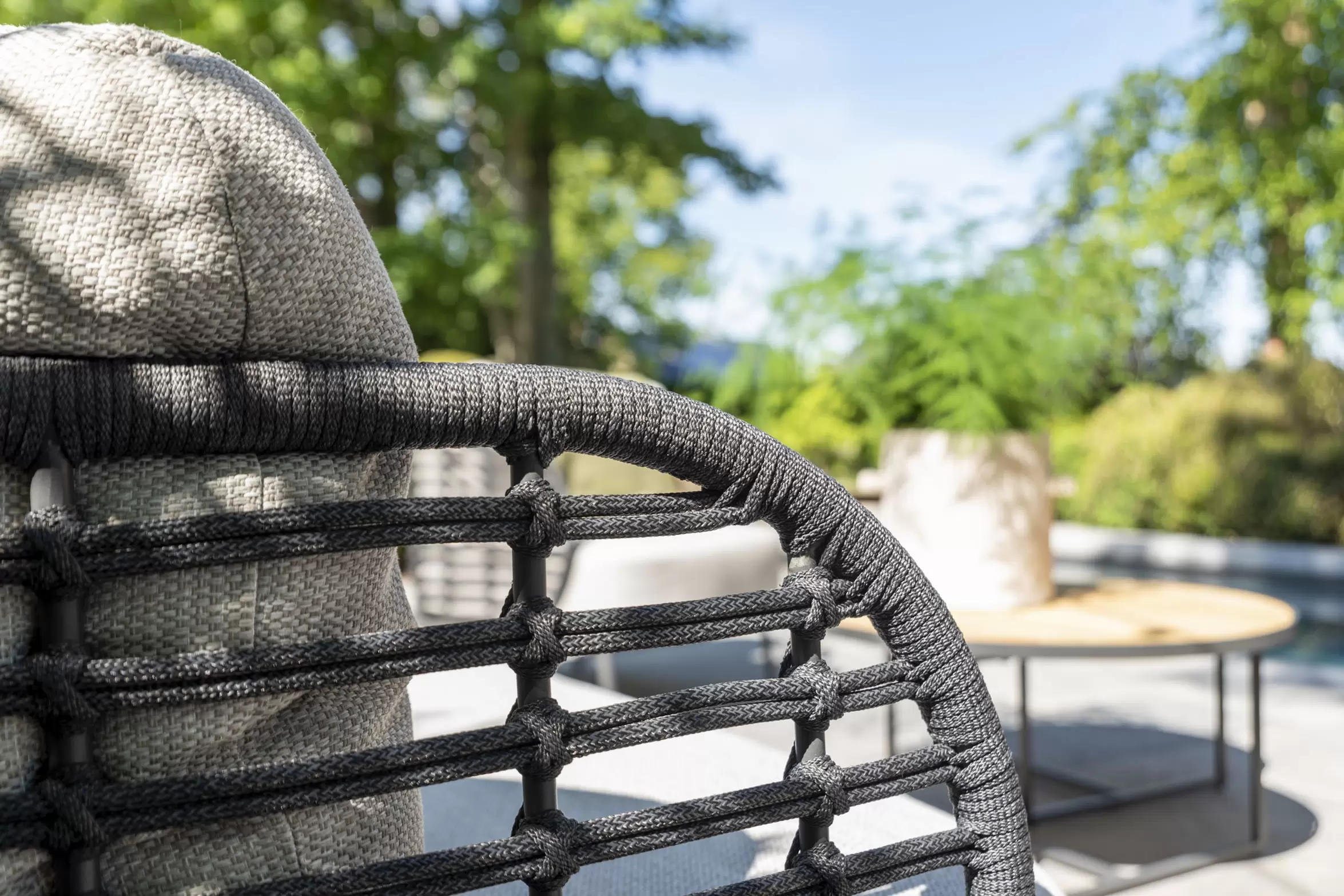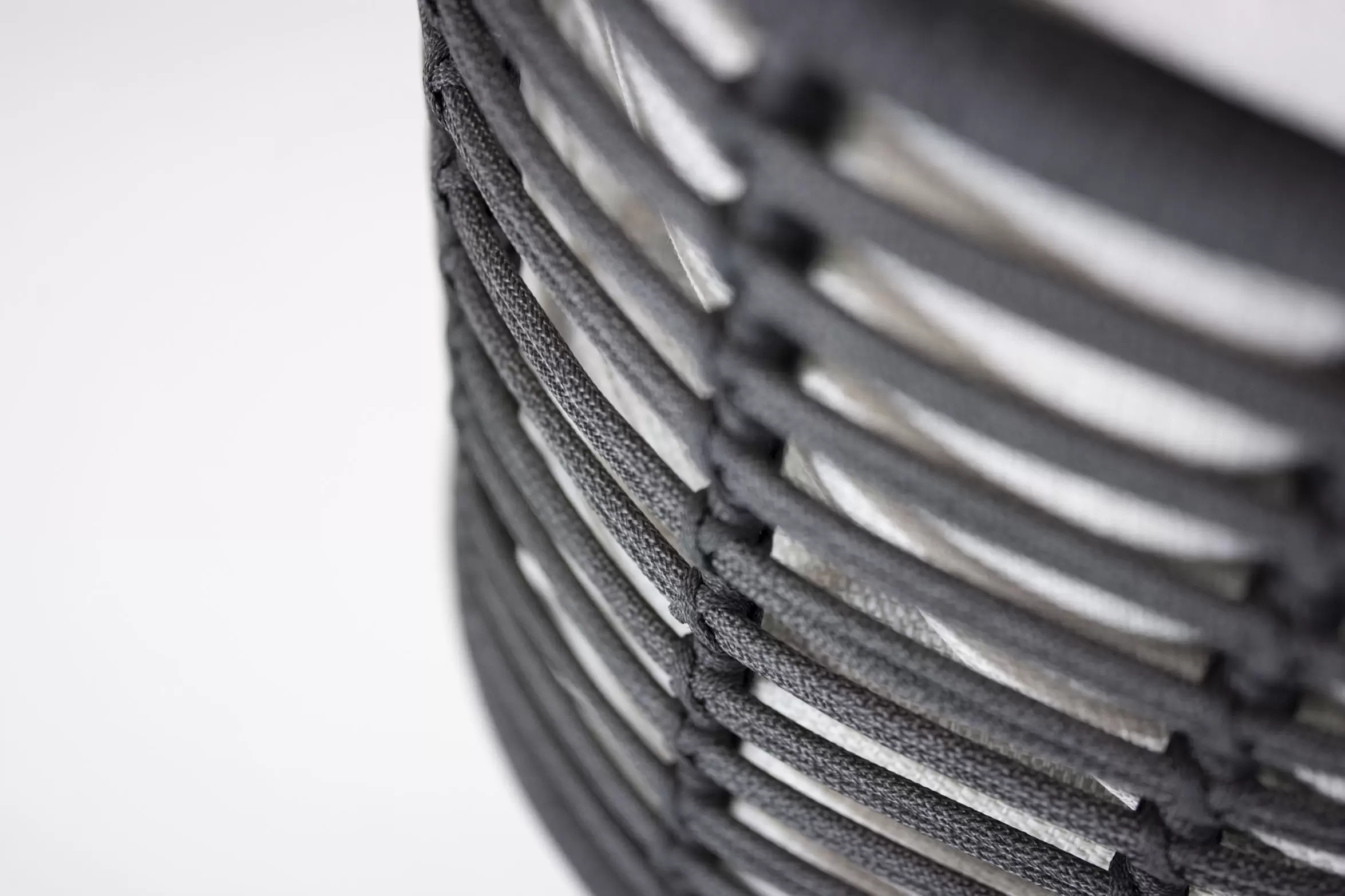 Sofa i fotel zestawu wypoczynkowego Fabrice są pięknie wykończone liną polipropylenową. W przeciwieństwie do zwykłej liny, lina ma bardzo mocny rdzeń poliestrowy. Brud i wilgoć nie wnikają. Zewnętrzna powierzchnia ma również warstwę odporną na zabrudzenia, dzięki czemu splot pozostaje piękny na lata. Ponadto materiał jest odporny na promieniowanie UV (światło słoneczne), dzięki czemu lina wolniej się odbarwia pod wpływem światła słonecznego.