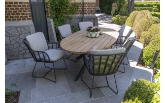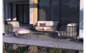 Zestaw domyślnie sprzedawany bez stolika. Do zestawy można dobrać dowolne stoliki z kolekcji 4so. Tekowe blaty stołów Yoga są trwałe, wytrzymałe i odporne na warunki atmosferyczne.