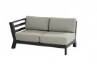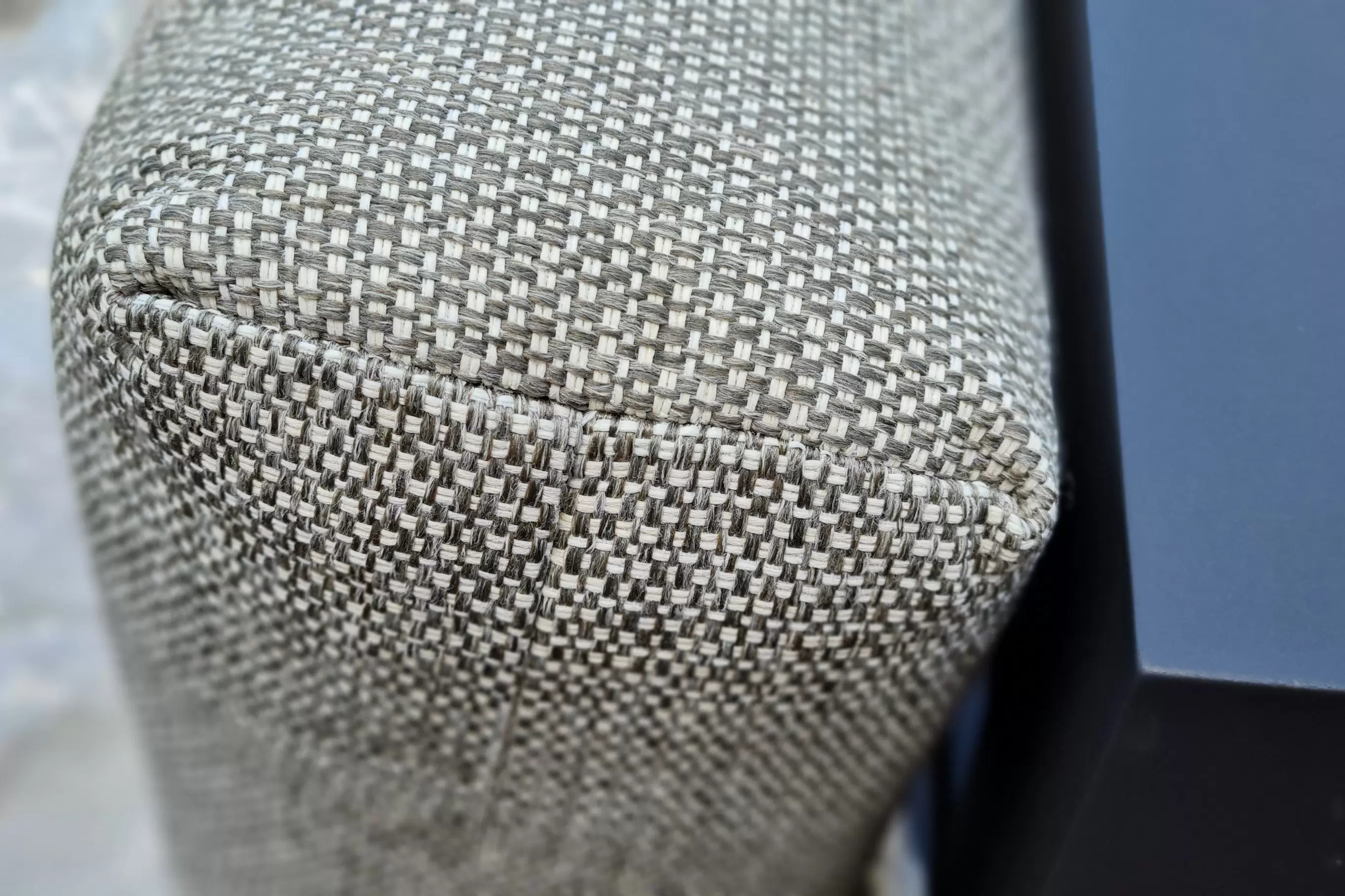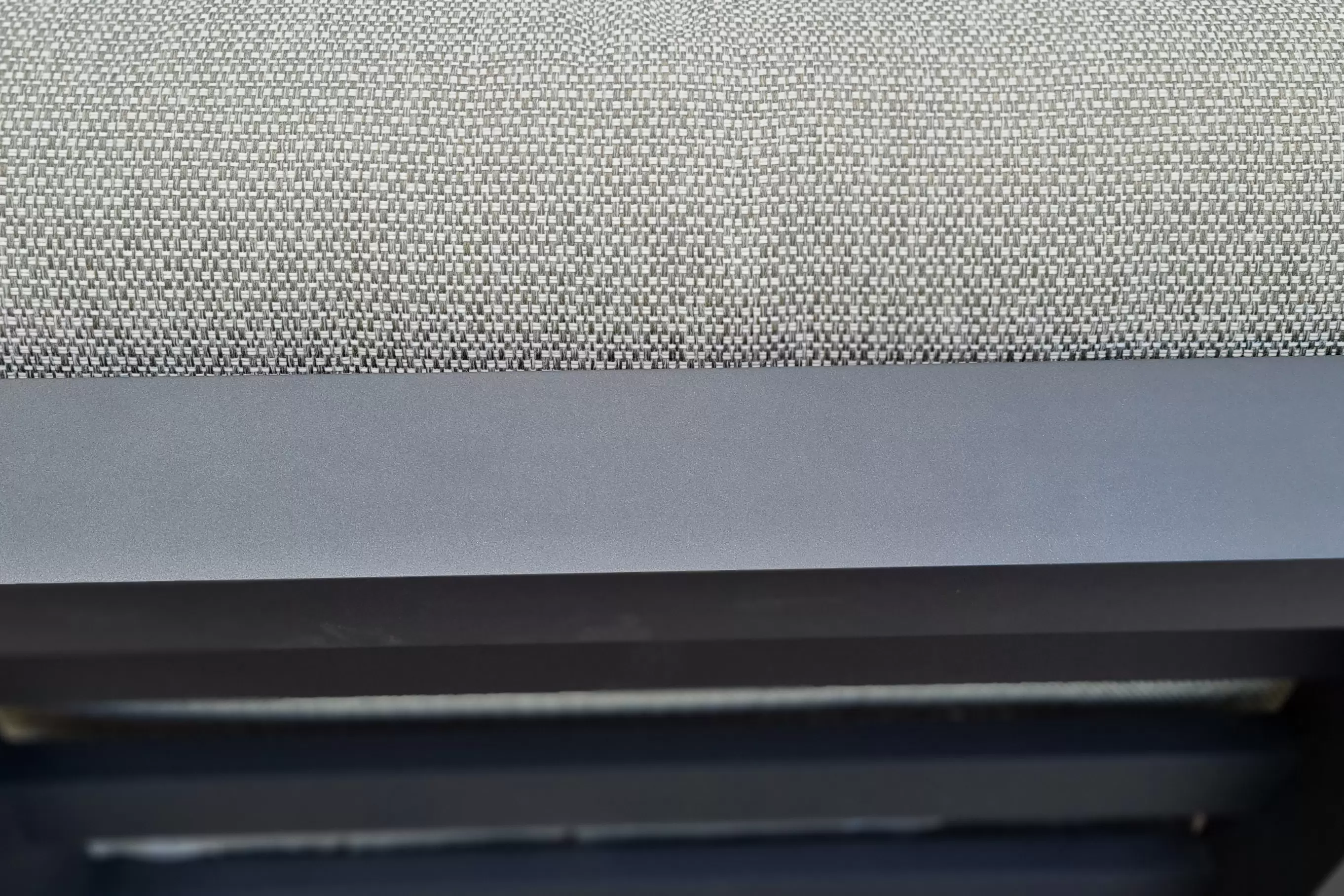 Konstrukcja z grubych profili aluminiowych malowanych proszkowo na kolor antracyt matowy. Konstrukcja pod poduszkami także z profili aluminiowych.