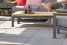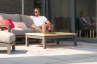 Do zestawu można dobierać rożne stoliki. Idealnie pasuje stolik od kolekcji CAPITOL aluminiowy z blatem teakowym.
