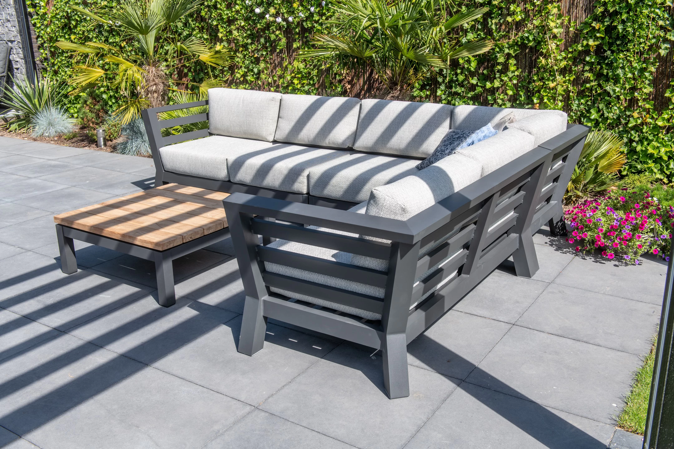 Modułowy zestaw wypoczynkowy METORO z masywnych profili aluminium i grubych wygodnych poduszek. Meble METEORO to wysoka jakość i odporność na warunki atmosferyczne - poduszki zawierają szybkoschnącą piankę, nie pleśnieją i nie odbarwiają się. W zestawie znajdują się ładne dekoracyjne poduszki, które sprawiają, że całość nabiera przytulności. Potwierdzeniem jakości jest 5-letnia gwarancja 4SeasonOutdoor na elementy konstrukcji i 2-letnia na poduszki.