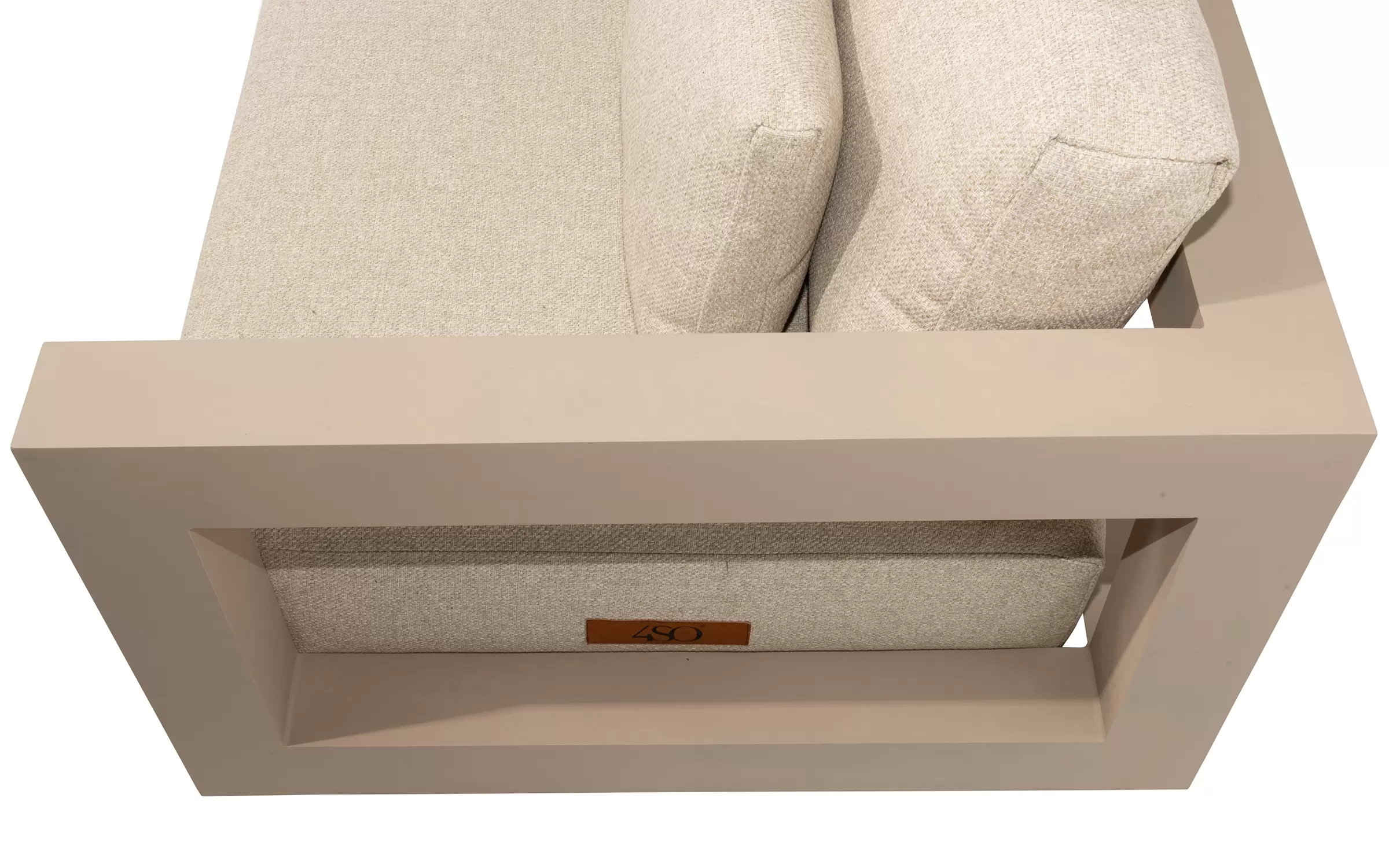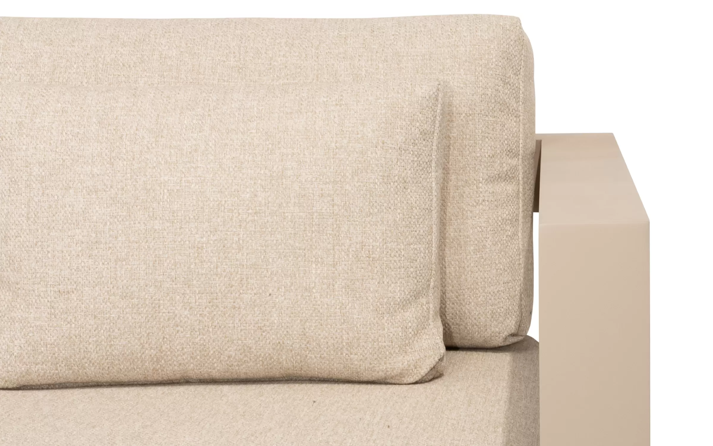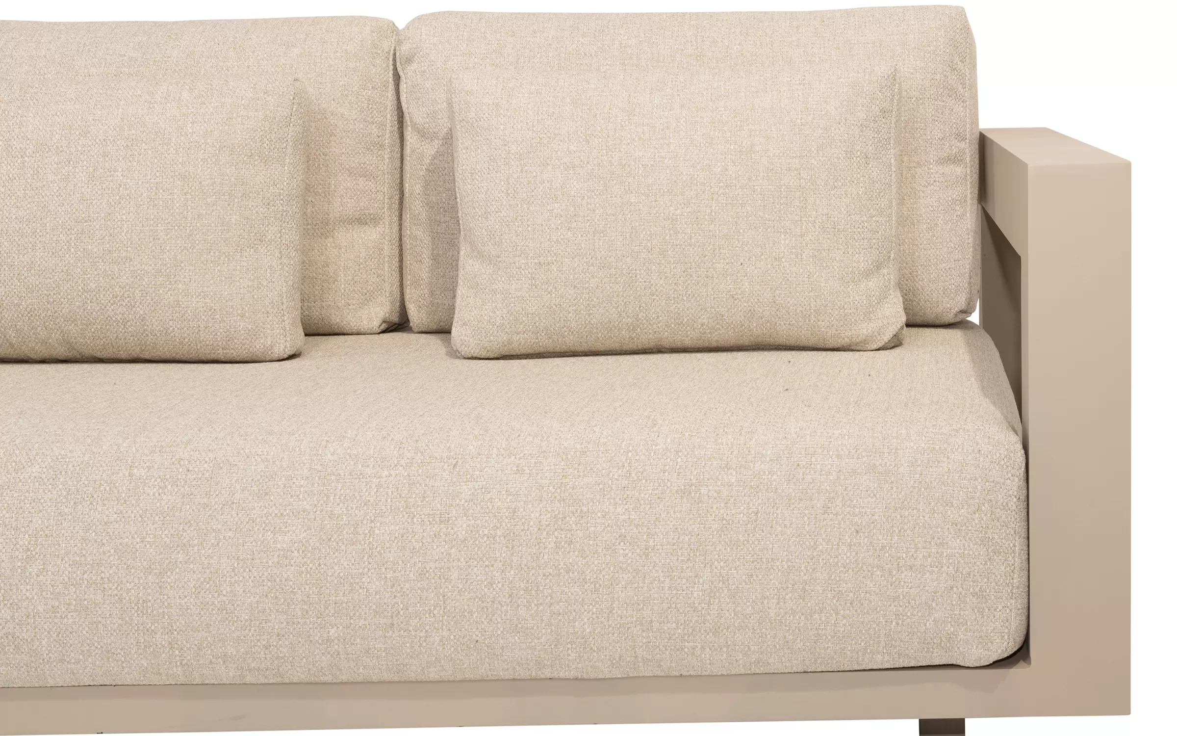 Sofa wypoczynkowa Metropolitan ma solidną i lekką aluminiową ramę, która jest wykończona trwałą powłoką proszkową latte, która zapewnia dodatkową wytrzymałość i nowoczesny wygląd.