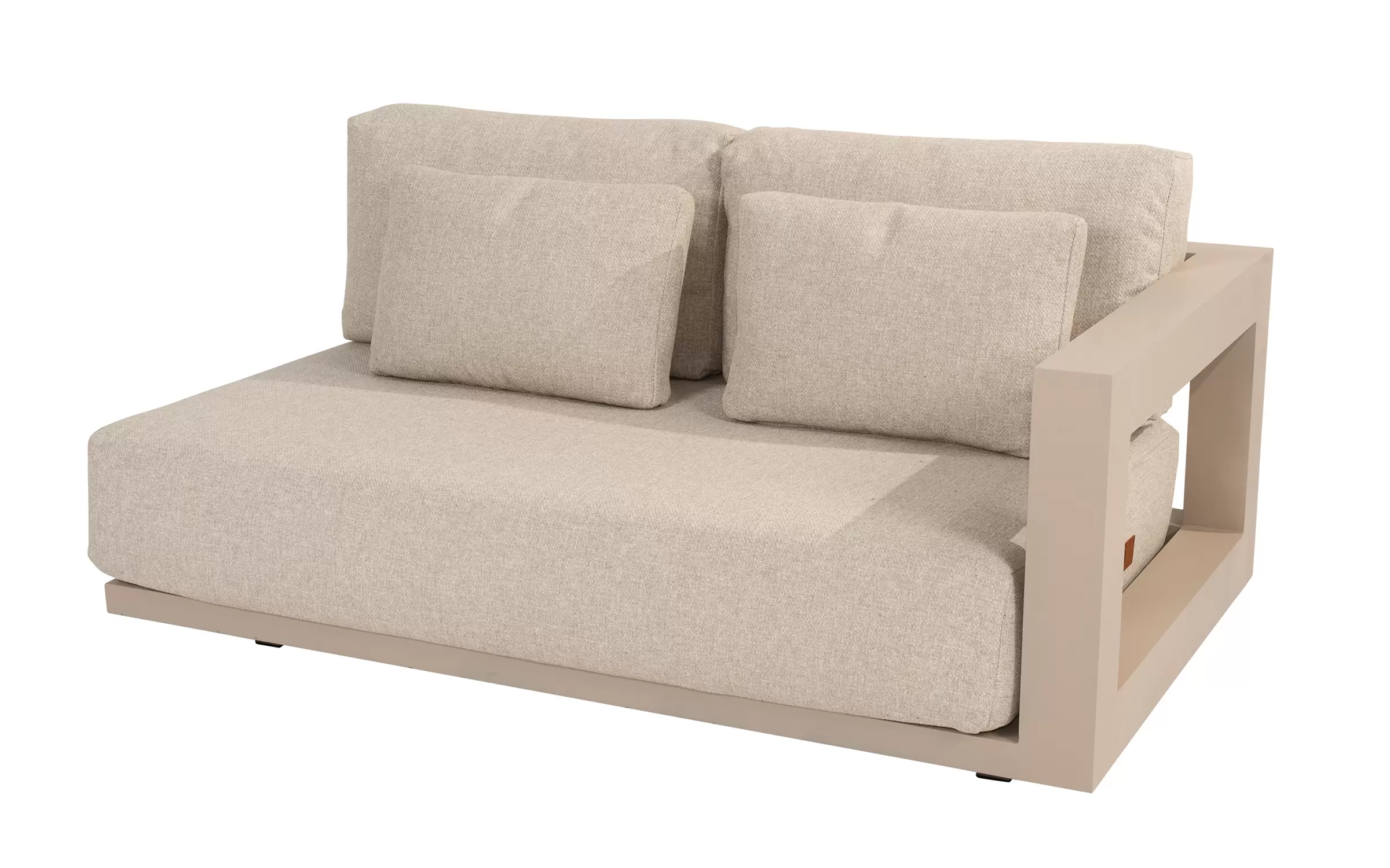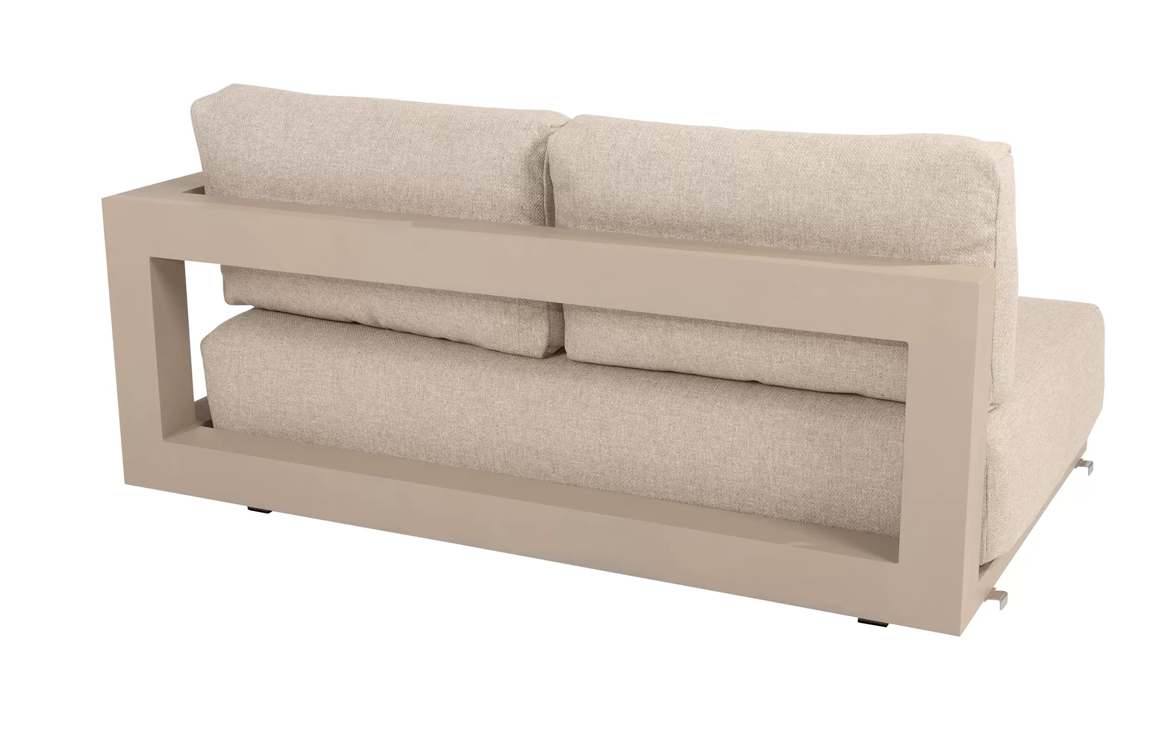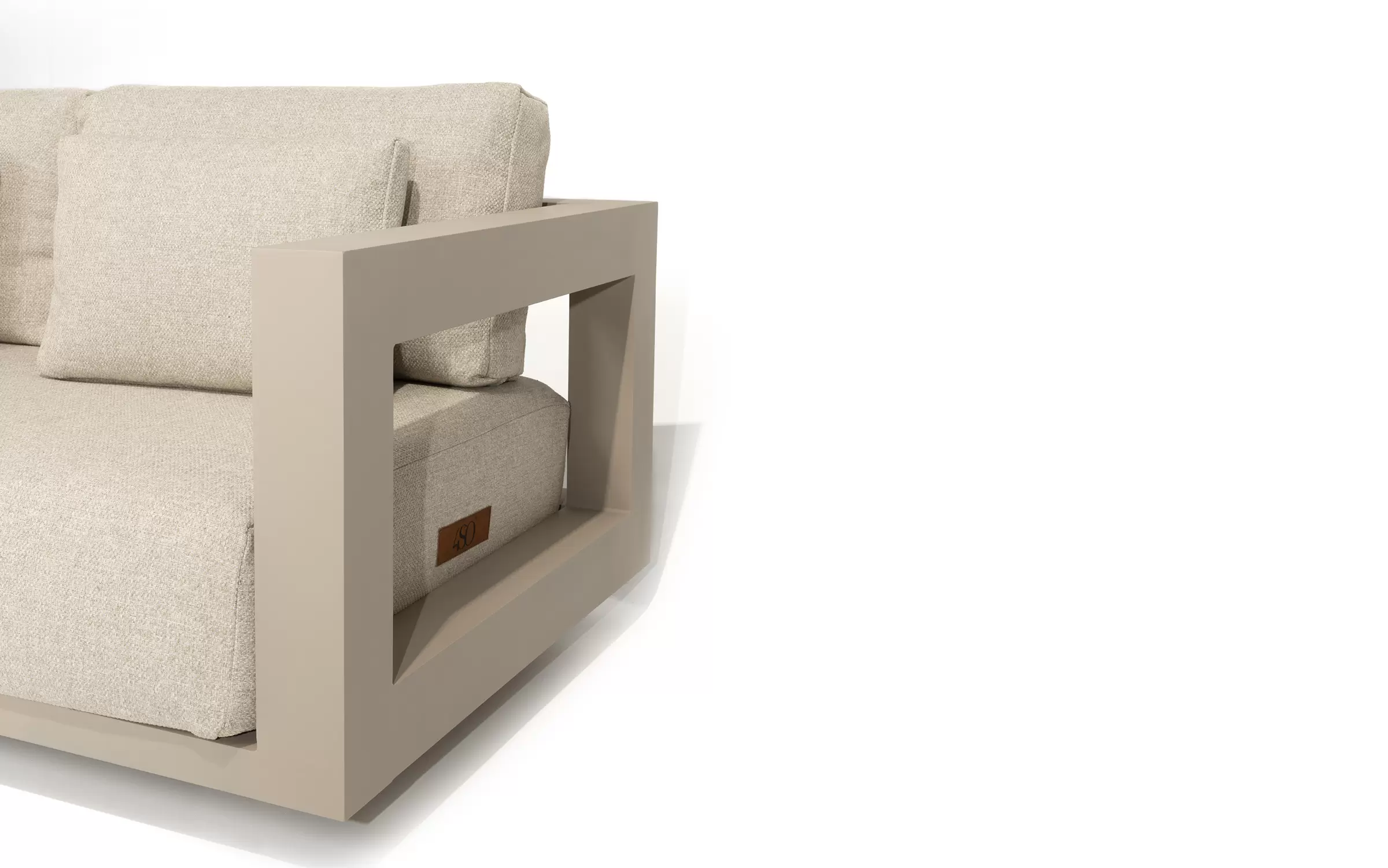 Sofa wypoczynkowa Metropolitan ma solidną i lekką aluminiową ramę, która jest wykończona trwałą powłoką proszkową latte, która zapewnia dodatkową wytrzymałość i nowoczesny wygląd.