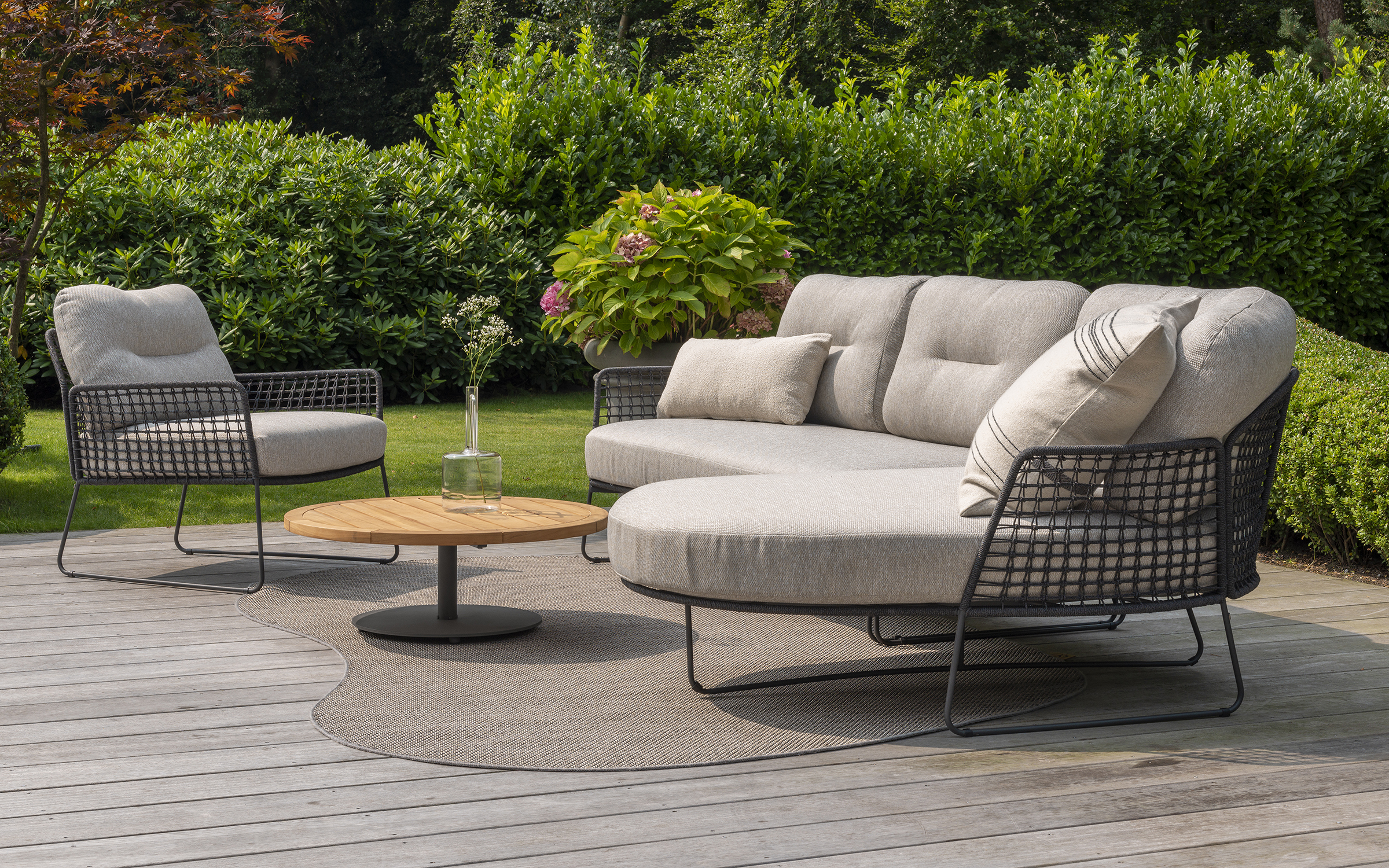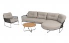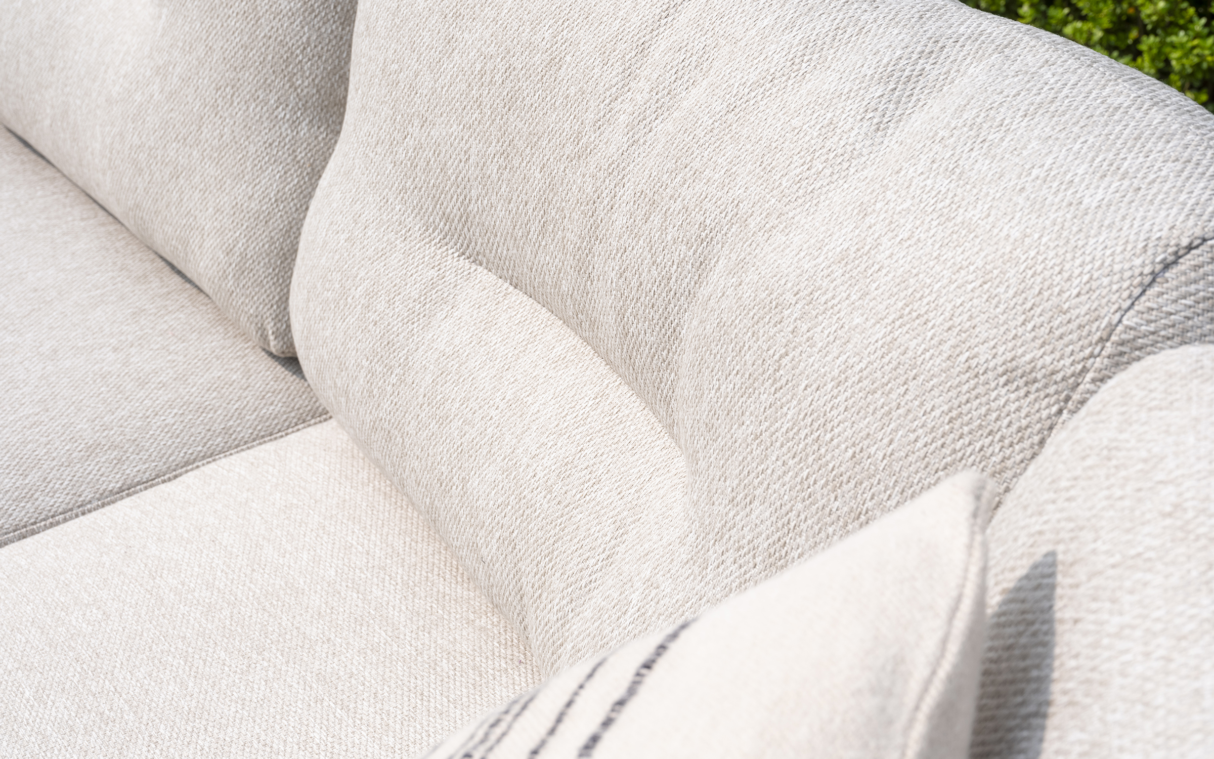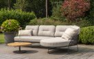 Szezlong Rhodes jest całkowicie odporny na warunki atmosferyczne i łatwy w utrzymaniu, idealny do długotrwałego użytkowania na zewnątrz. Zestaw składa się z 2-osobowej sofy Rhodes z prawym podłokietnikiem oraz szezlonga z lewym podłokietnikiem, obie wyposażone w wygodne poduszki.