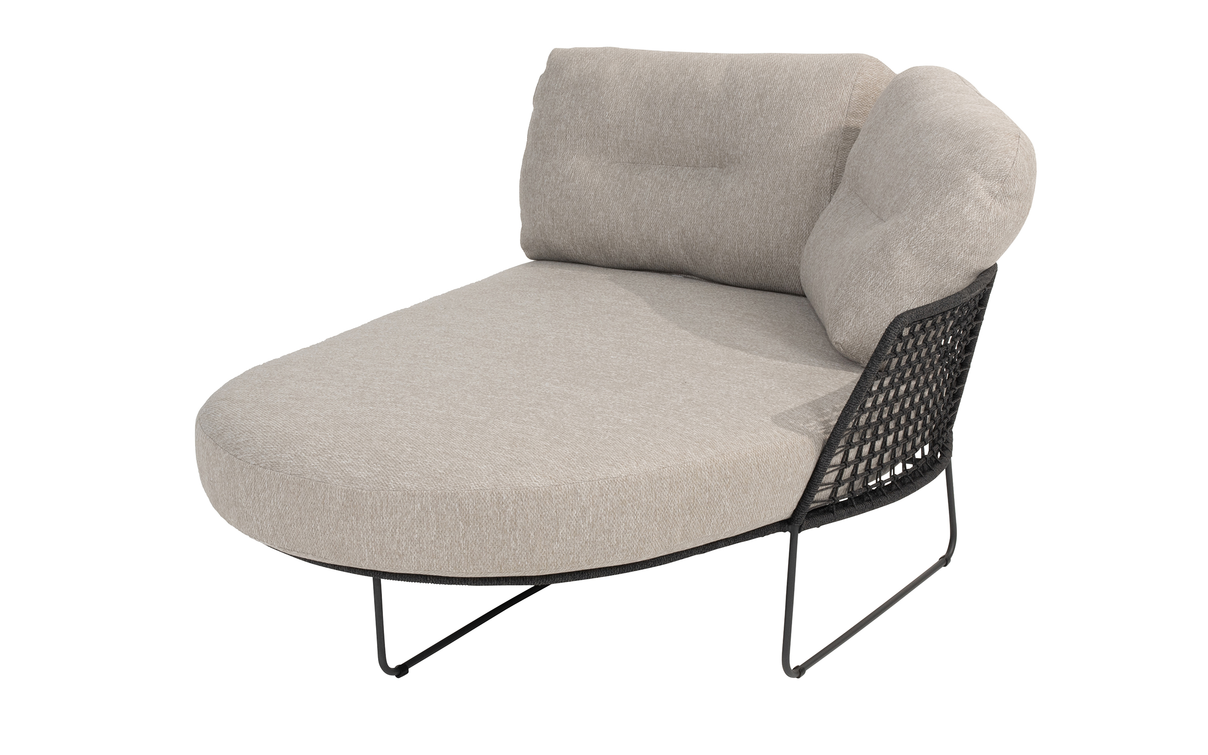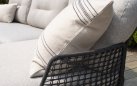 Szezlong Rhodes Taste by 4 Seasons oferuje najwyższy komfort wypoczynku i stylowy wygląd. Luksusowa sofa wypoczynkowa do użytku na na świeżym powietrzu ma pięknie zaprojektowaną ramę ze stali nierdzewnej i jest wykończona trwałym oplotem z liny w kolorze antracytowym. Grube poduszki siedziska i oparcia oraz ergonomiczna konstrukcja pozwalają wygodnie siedzieć przez wiele godzin.