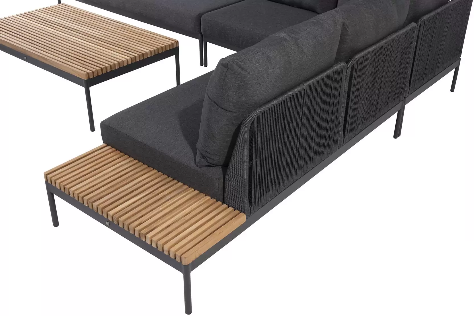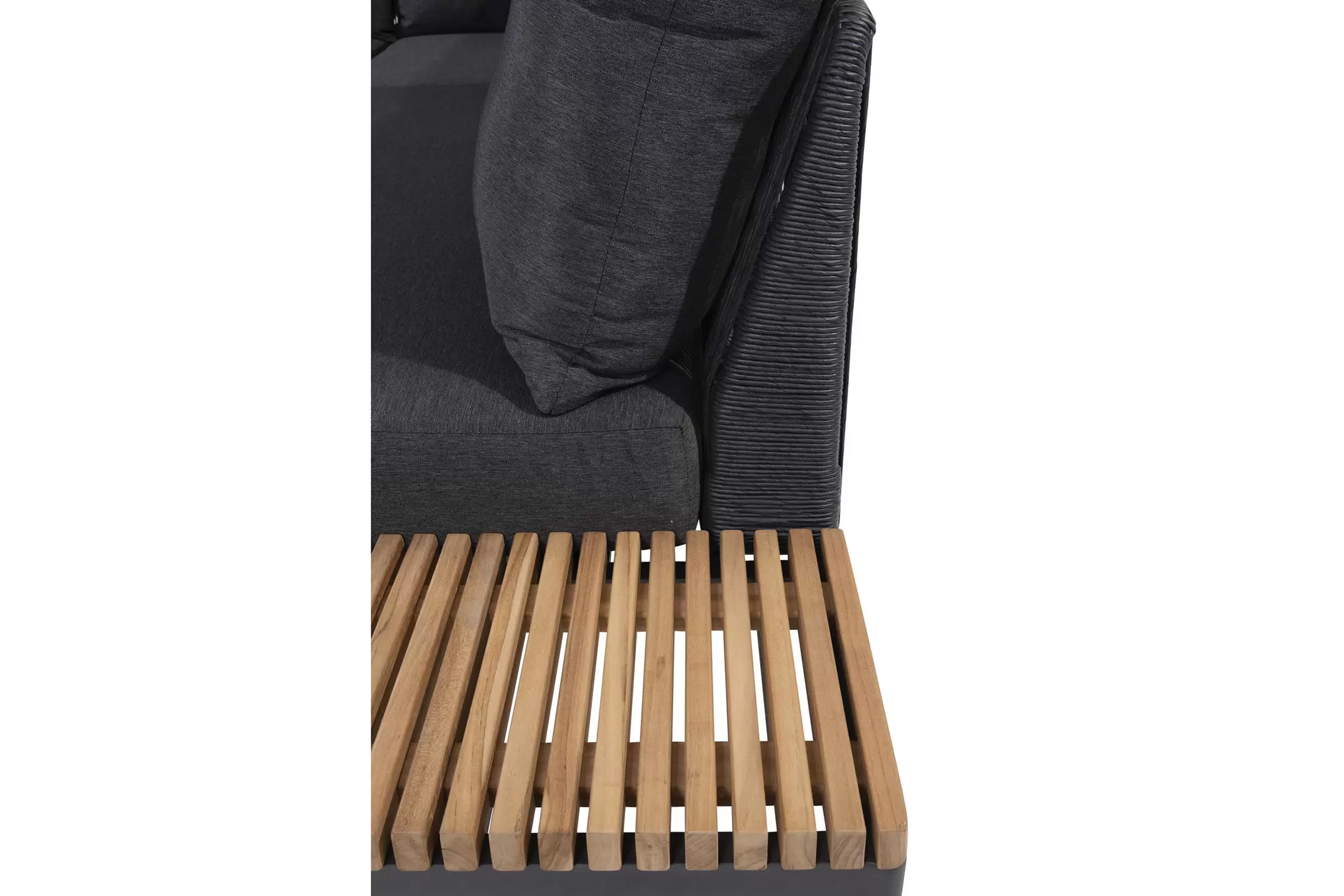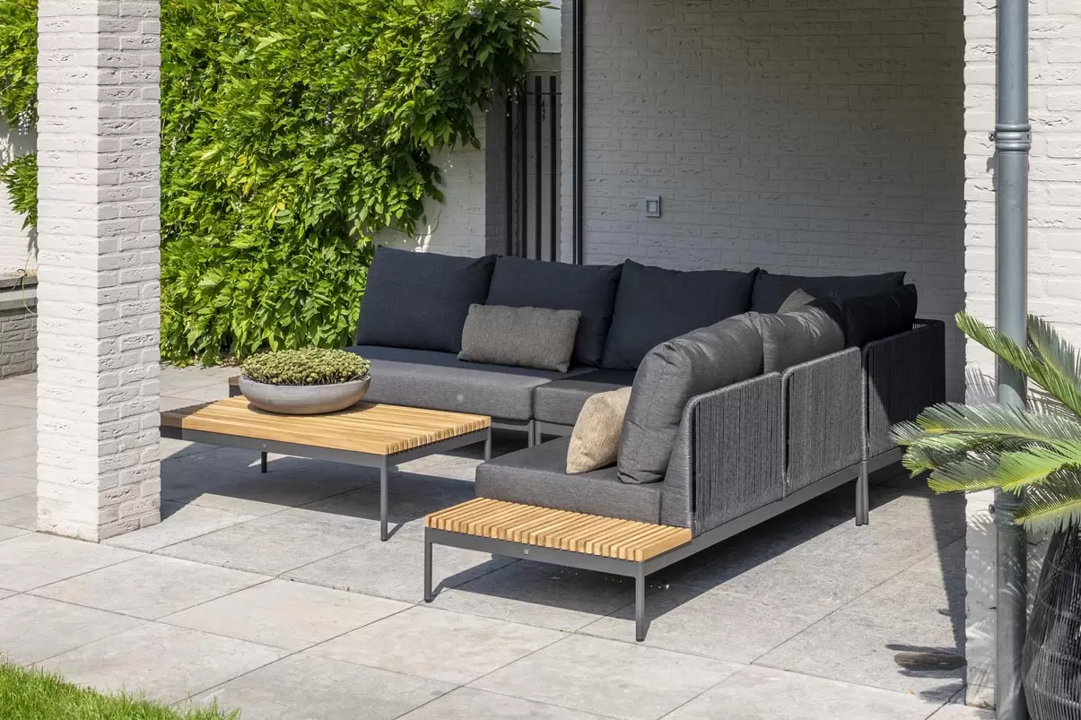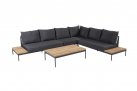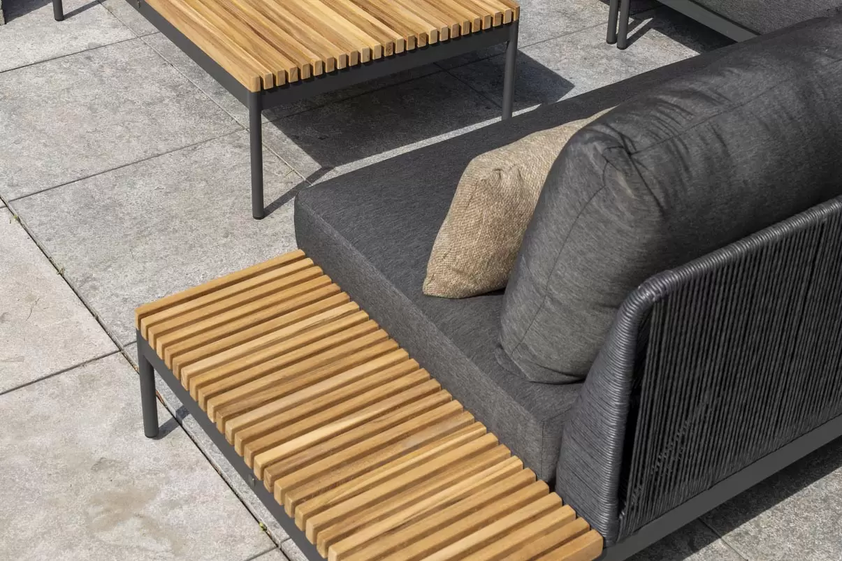 Zestaw wypoczynkowy Sakura ma oryginalny design - w konstrukcji zastosowano idealną mieszankę materiałów. Ciepły teak pięknie kontrastuje z ciemnymi odcieniami aluminiowej podstawy i poduszek AllWeather. Oparcia oplecione plecionką technorattanową.