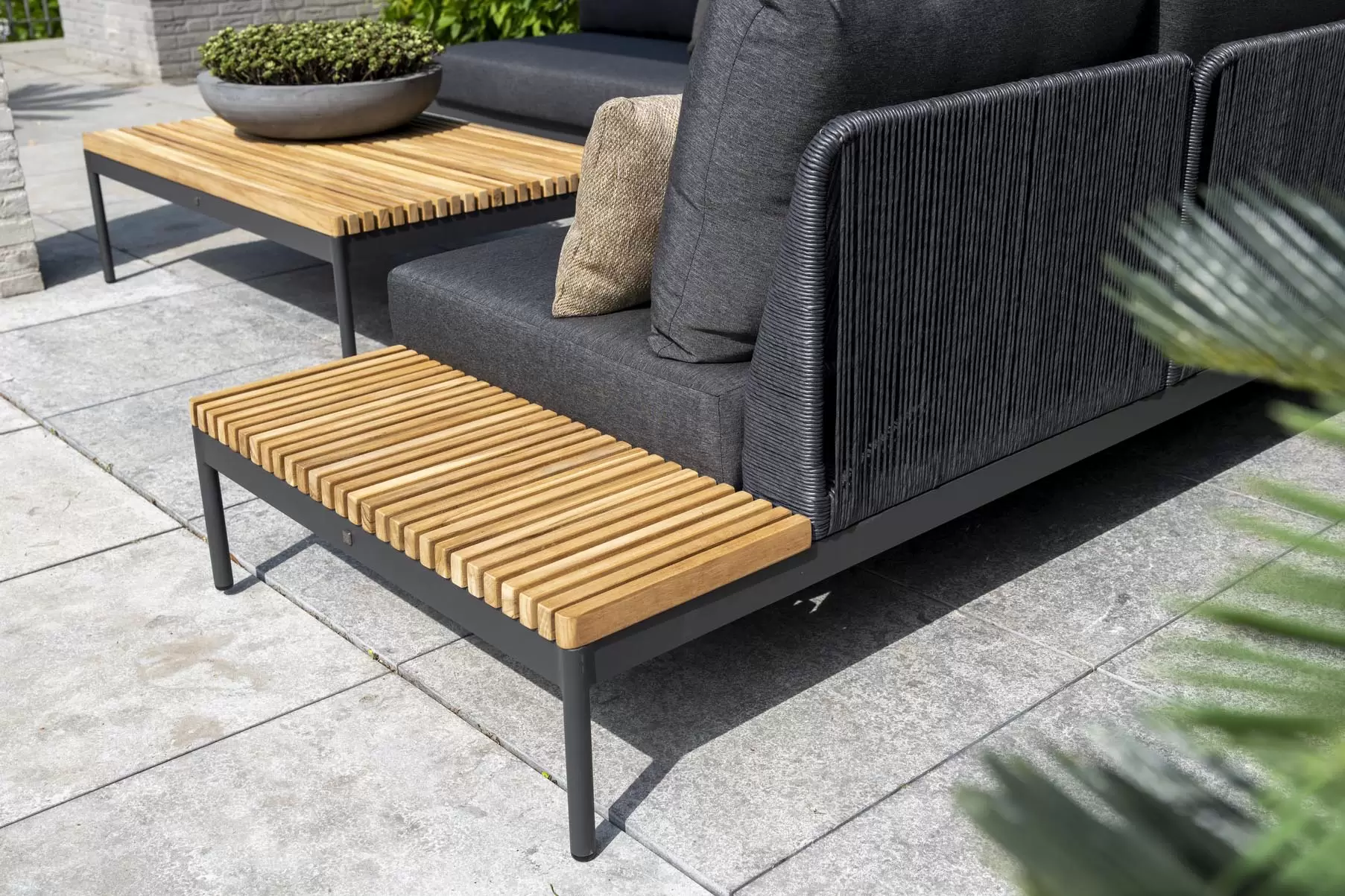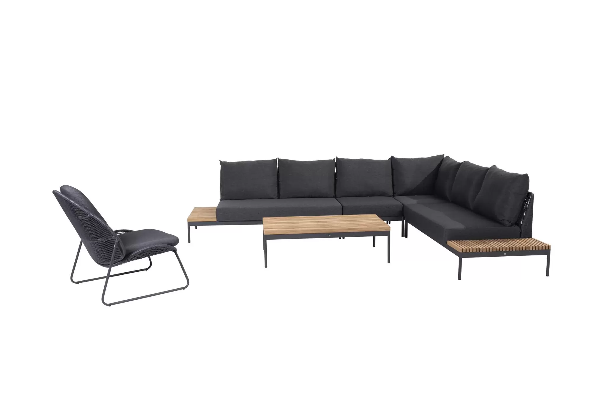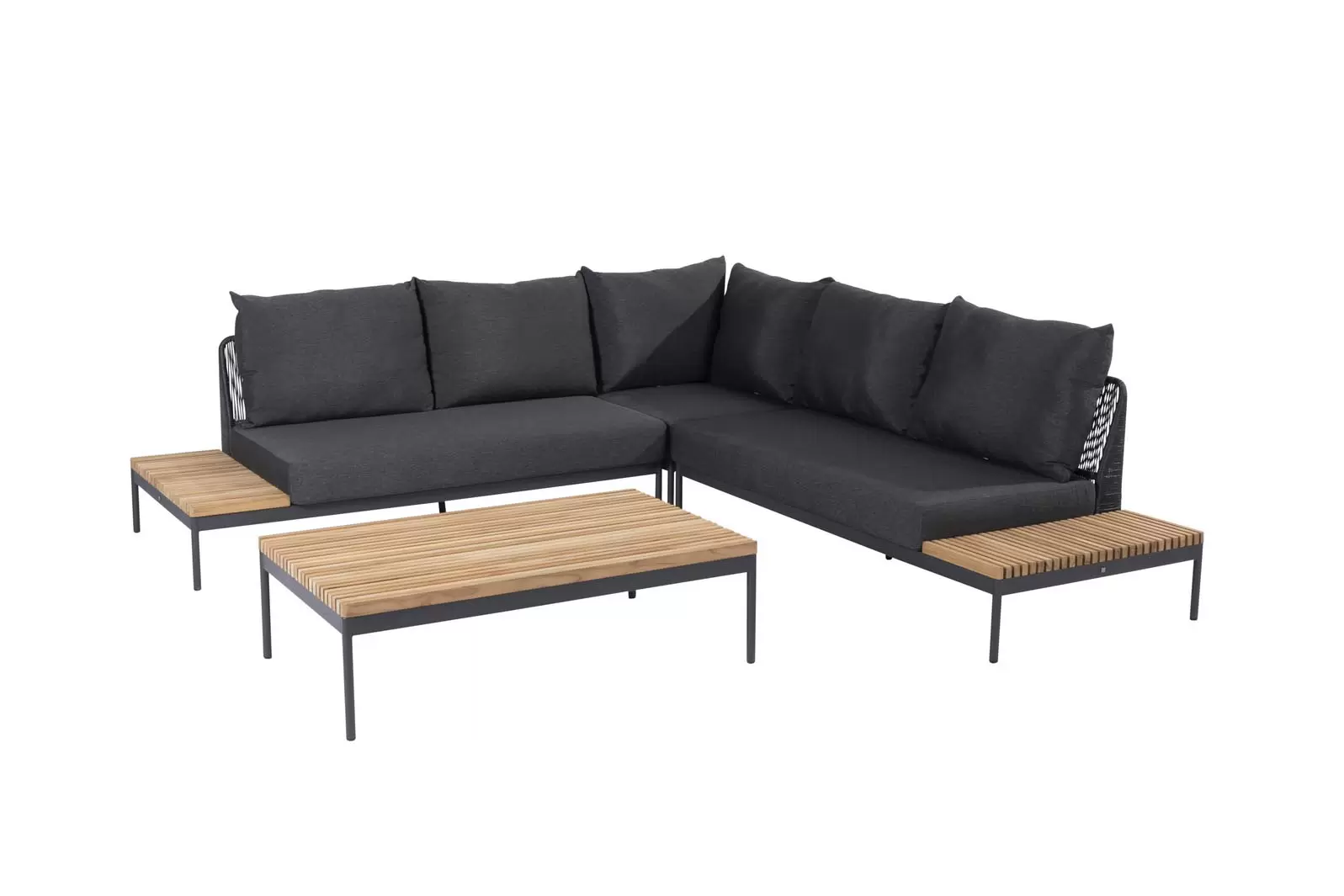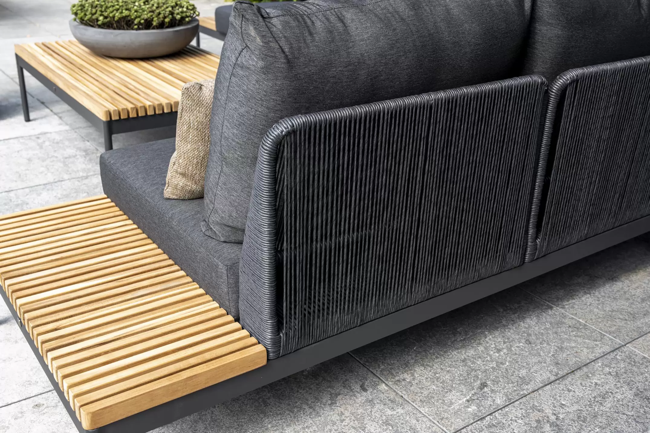 Zestaw wypoczynkowy Sakura ma oryginalny design - w konstrukcji zastosowano idealną mieszankę materiałów. Ciepły teak pięknie kontrastuje z ciemnymi odcieniami aluminiowej podstawy i poduszek AllWeather. Oparcia oplecione plecionką technorattanową.
