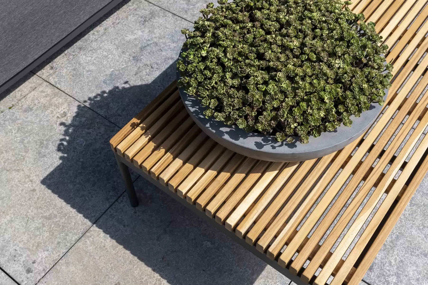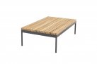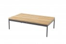 Platforma oraz blat stolika z deseczek teakowych.