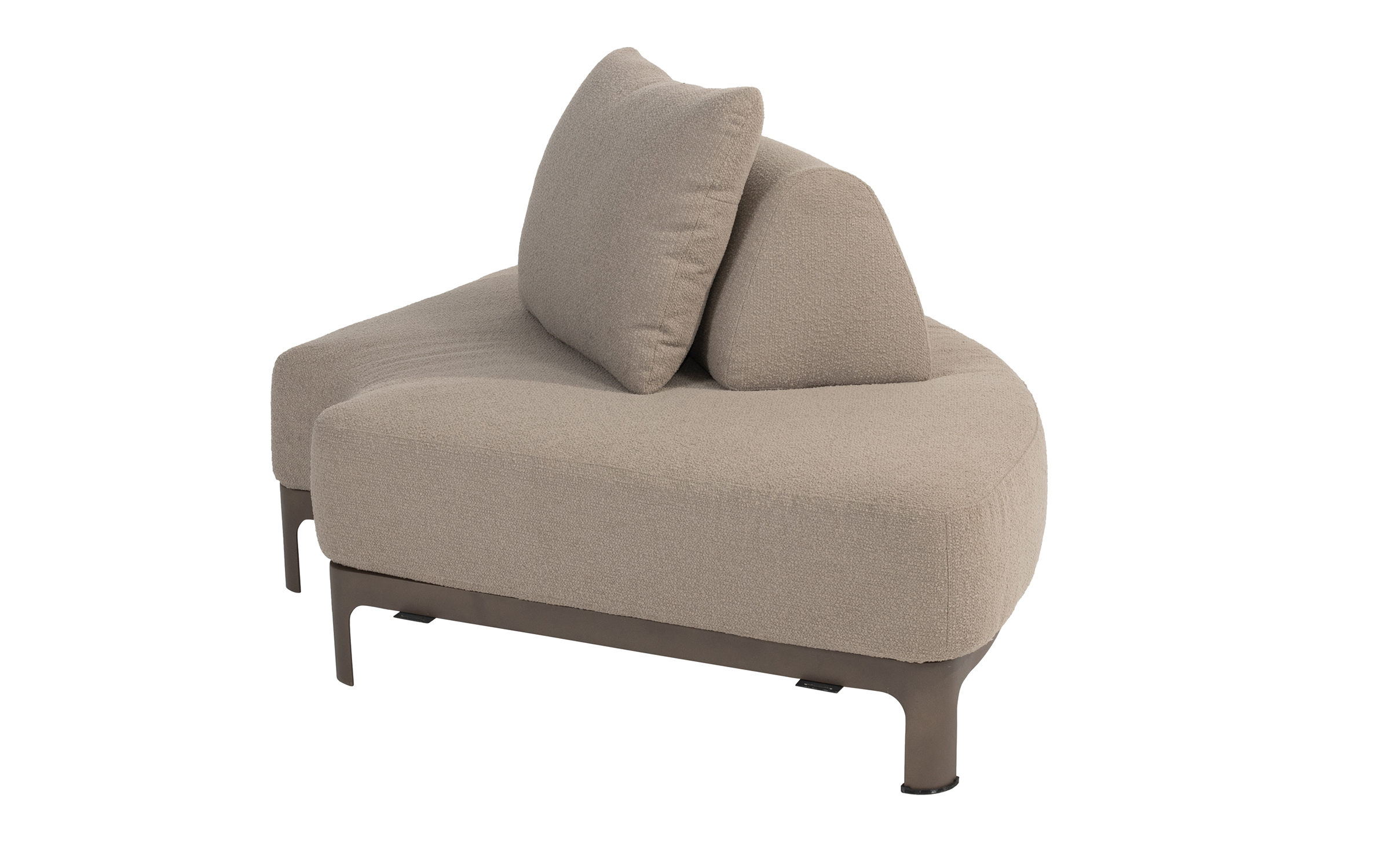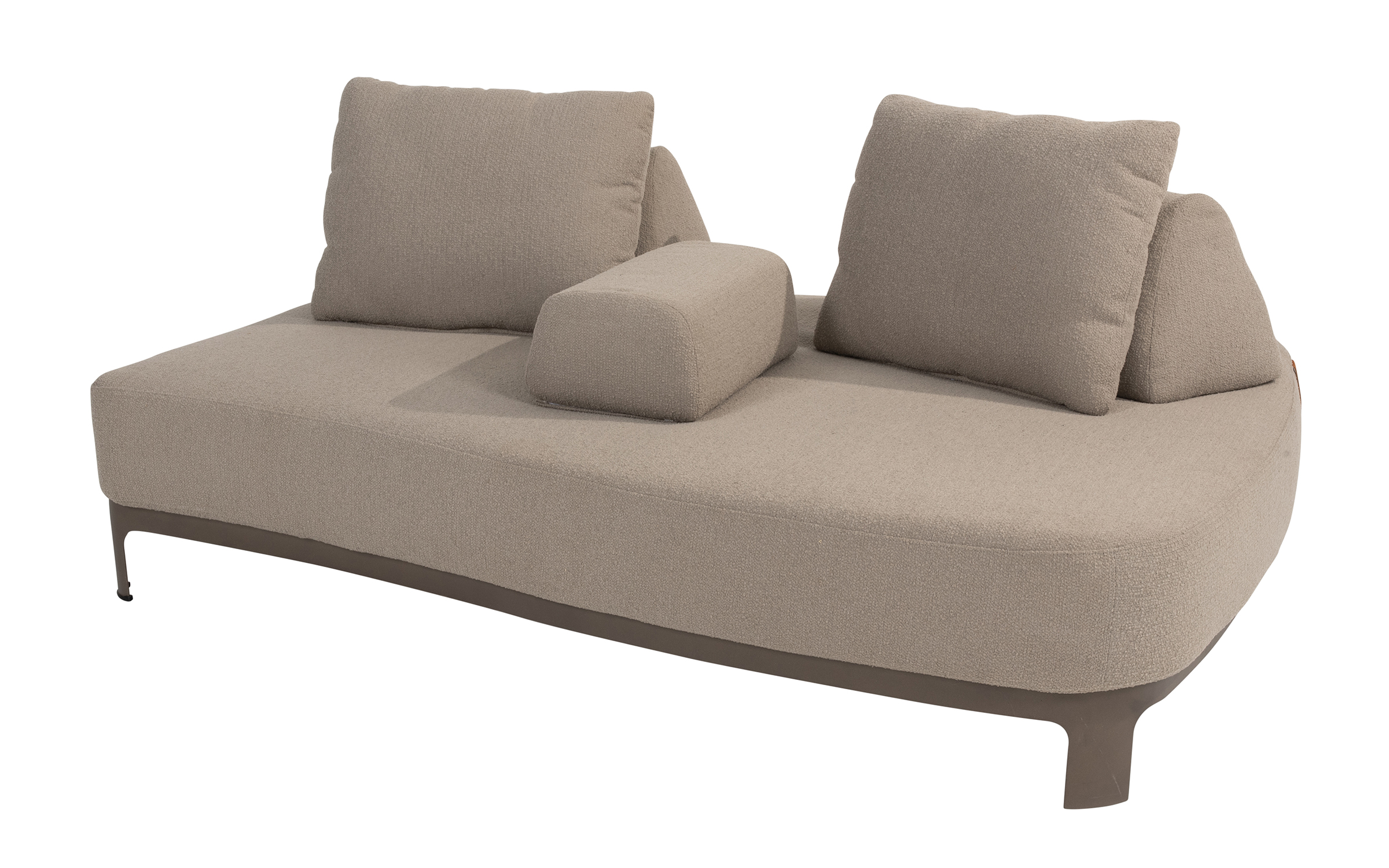Sofa wypoczynkowa Santorini od 4 Seasons Outdoor. Duże wymiary i luksusowa tkanina poduszkowa Bouclé w delikatnym, stylowym kolorze szarobeżowym.