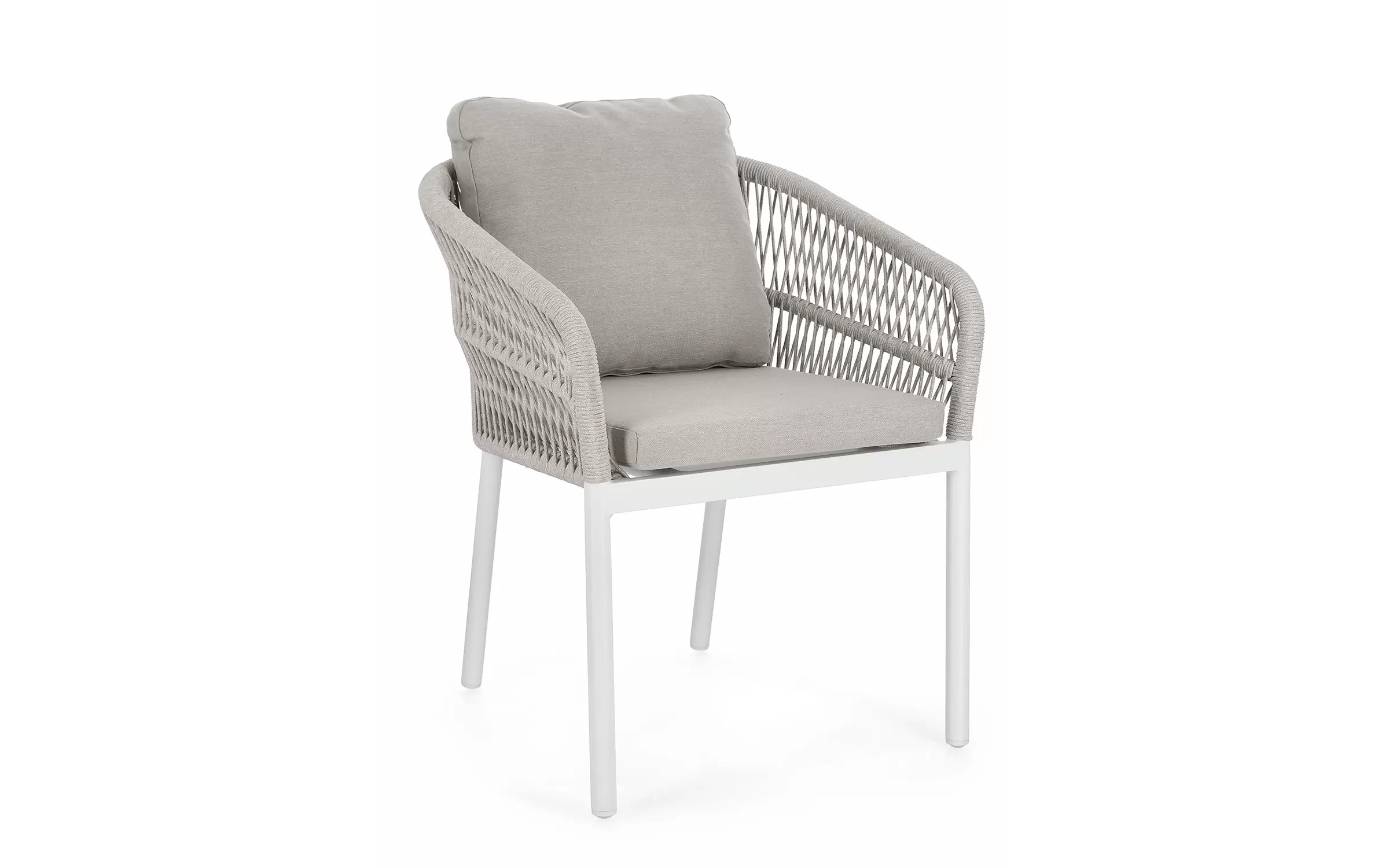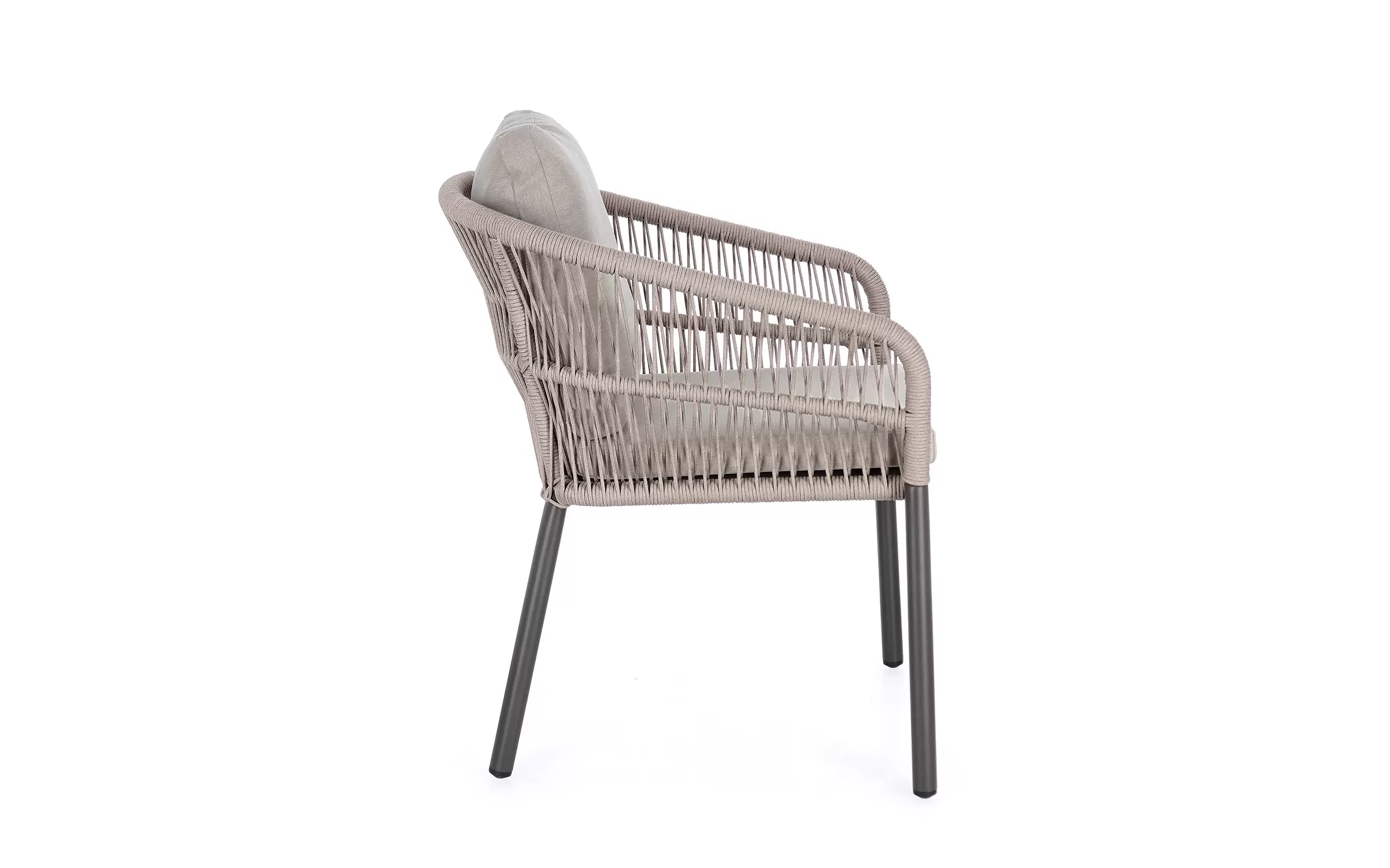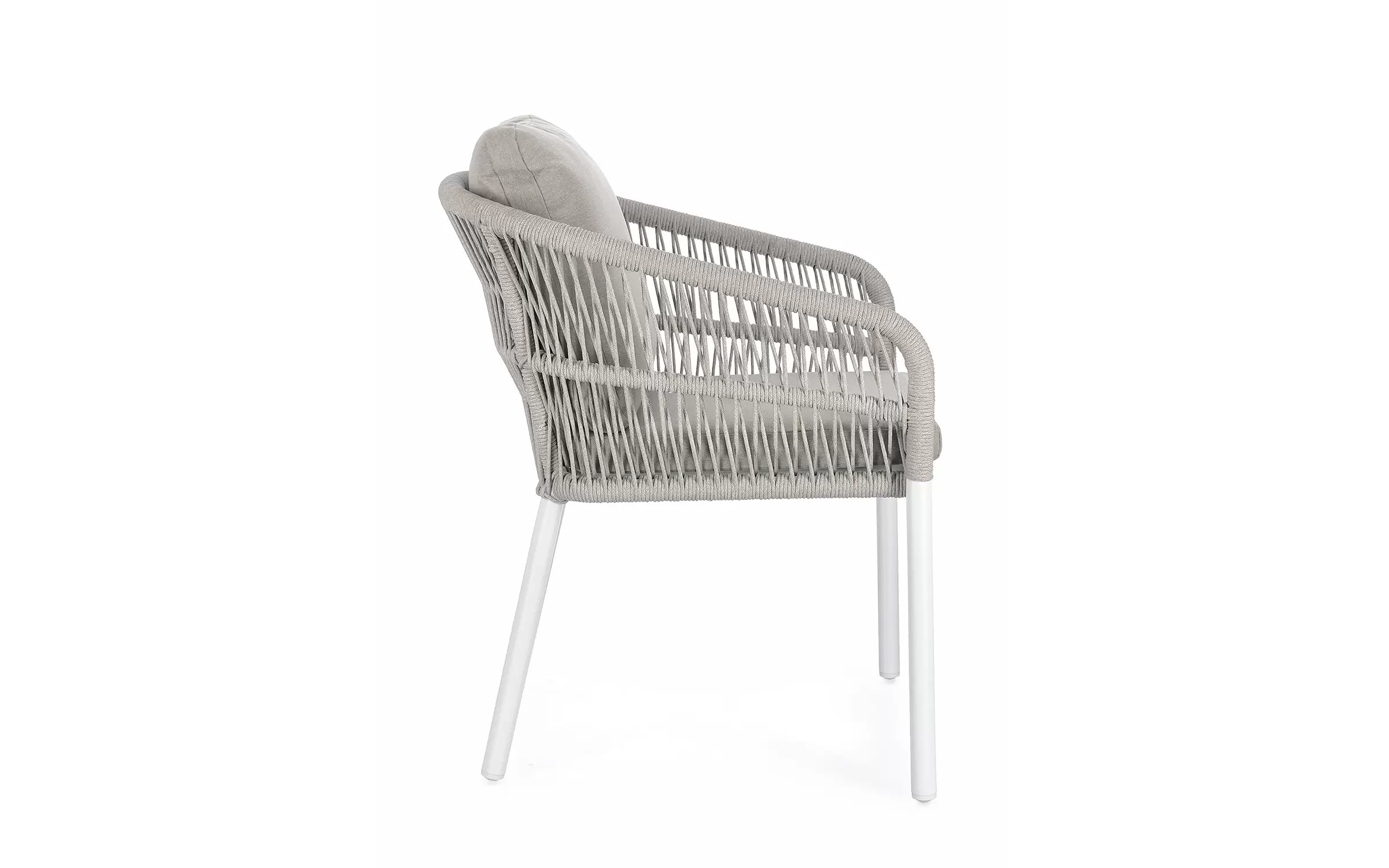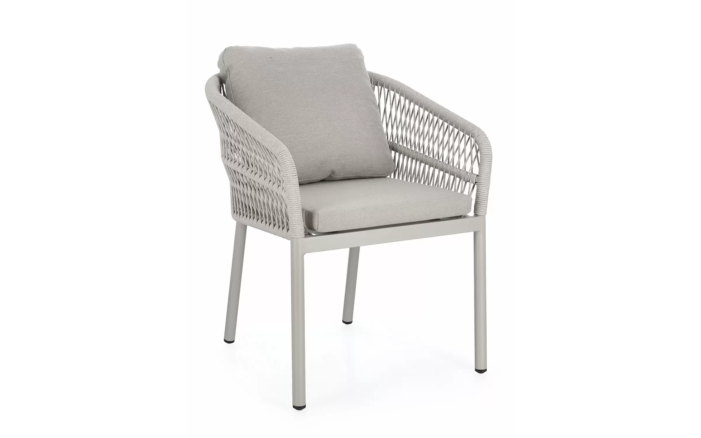 Aluminiowe krzesło ogrodowe o stabilnej konstrukcji z aluminium. Opływowe oparcie siedziska z wodoodpornej i odpornej na uv liny poliestrowej.