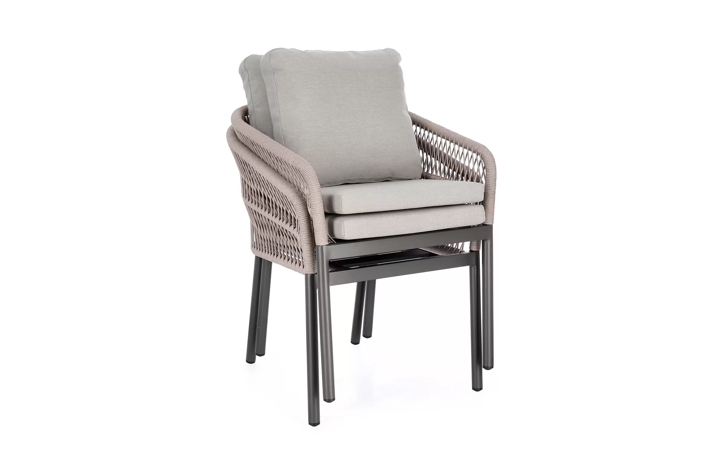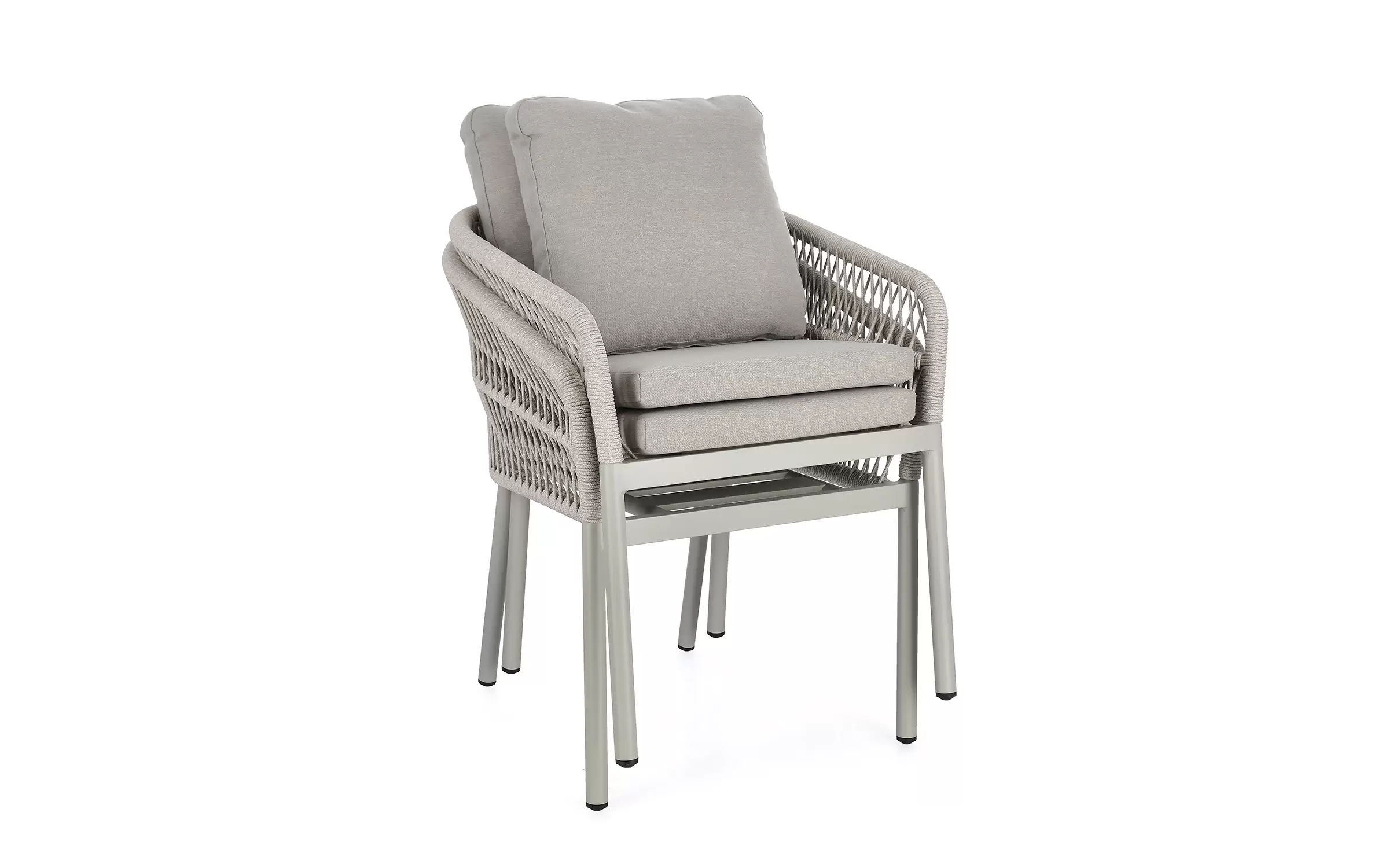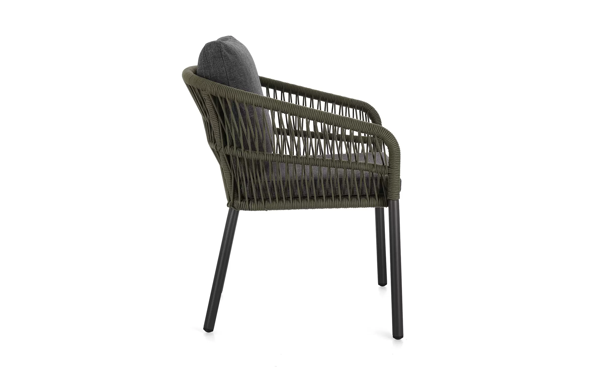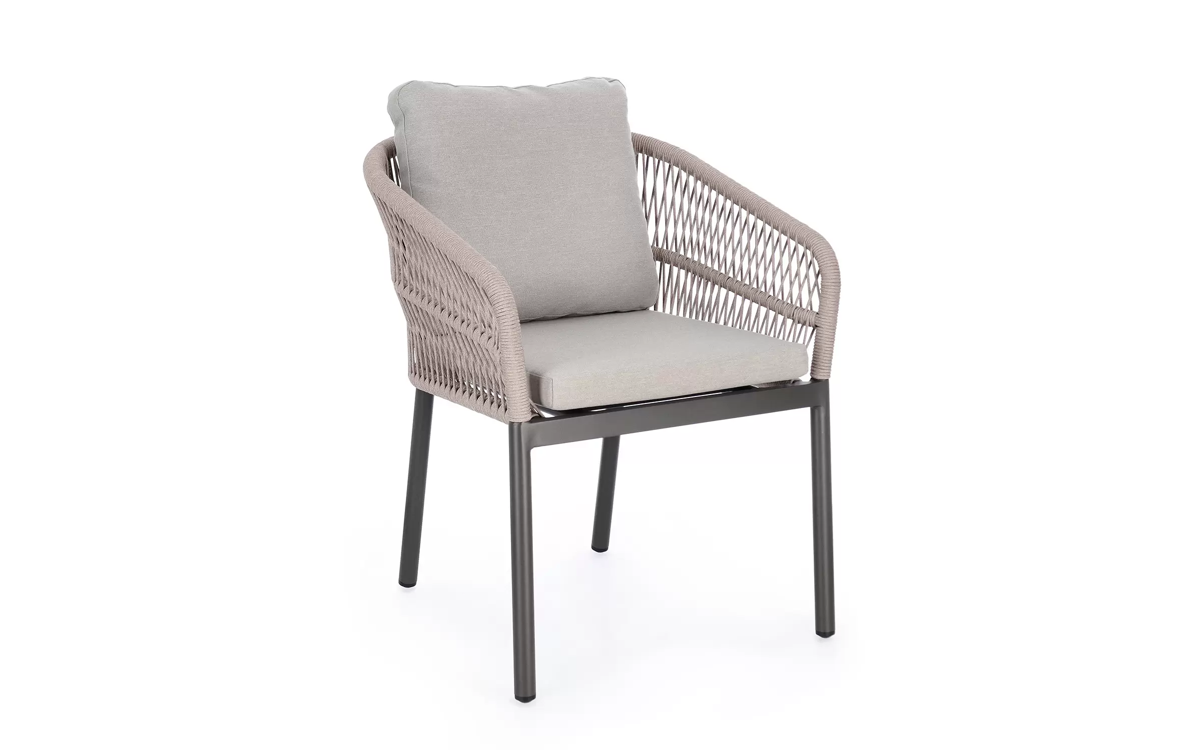 Aluminiowe krzesło ogrodowe o stabilnej konstrukcji z aluminium. Opływowe oparcie siedziska z wodoodpornej i odpornej na uv liny poliestrowej.