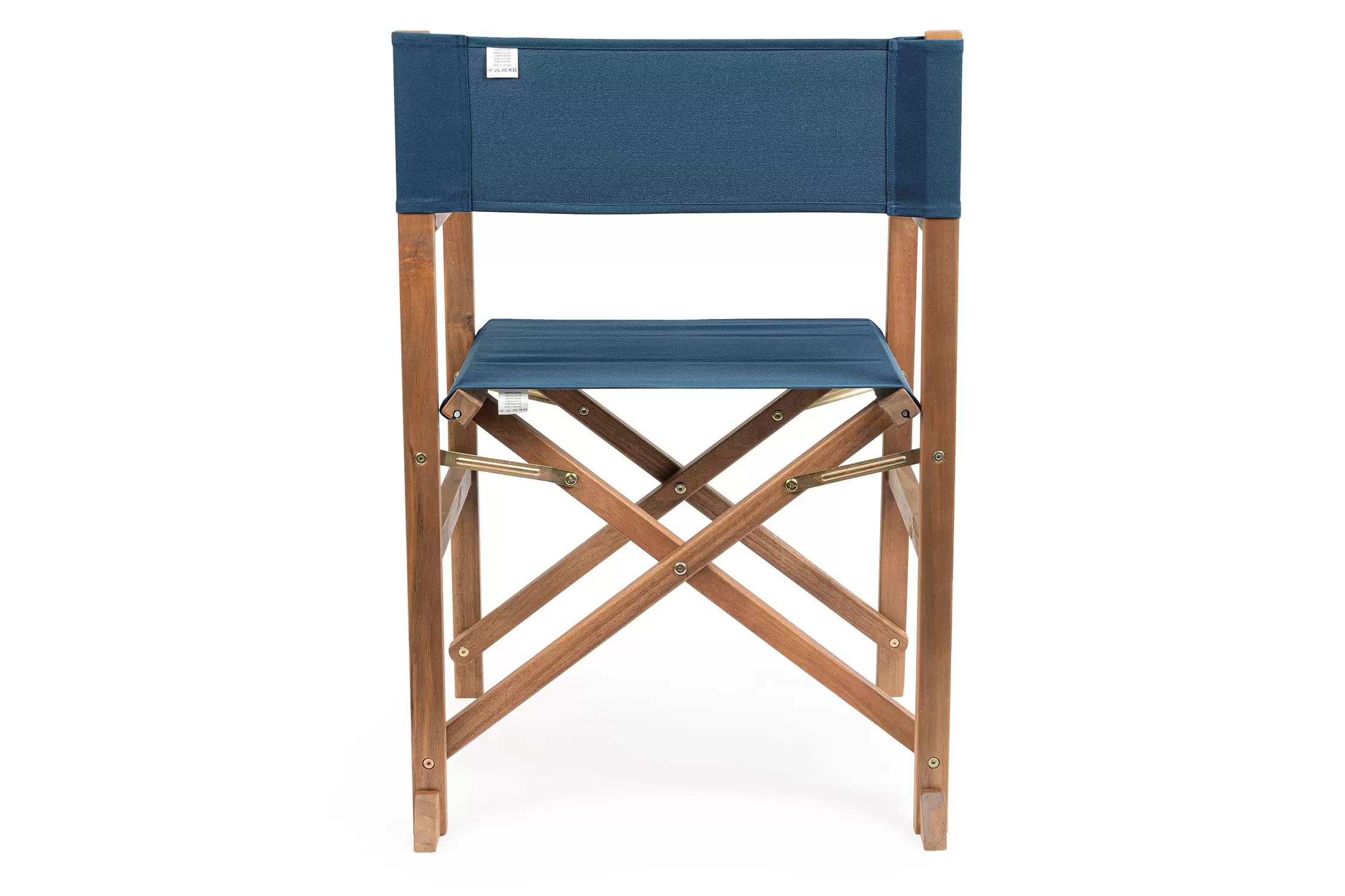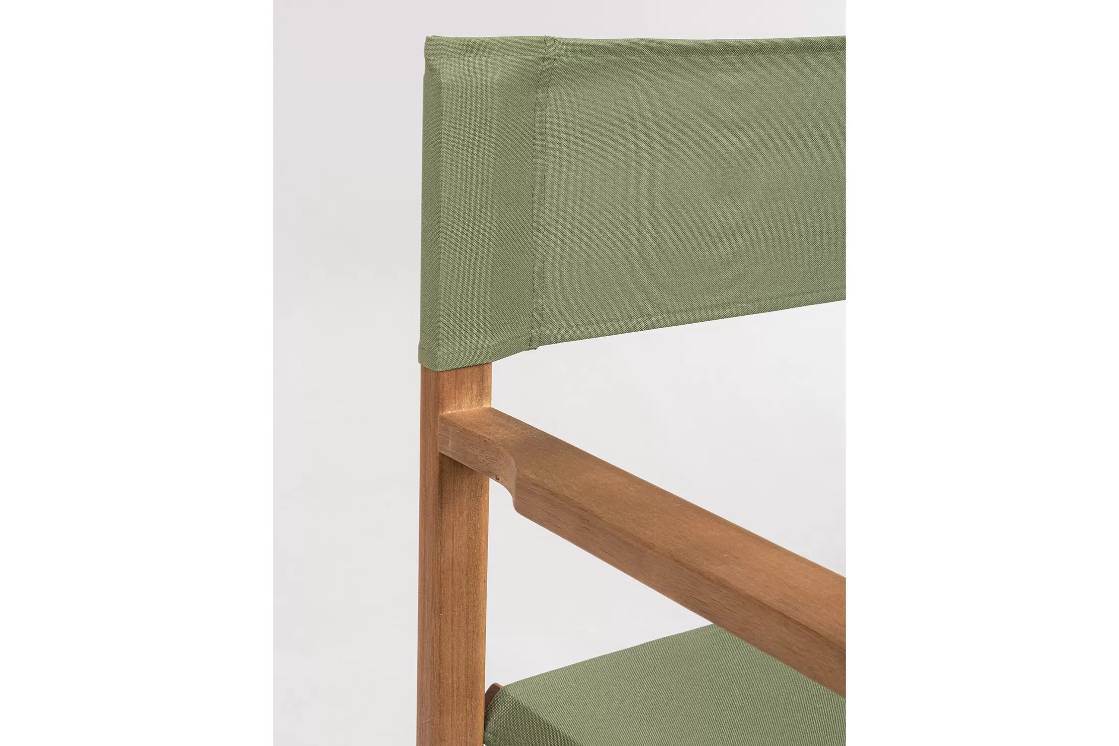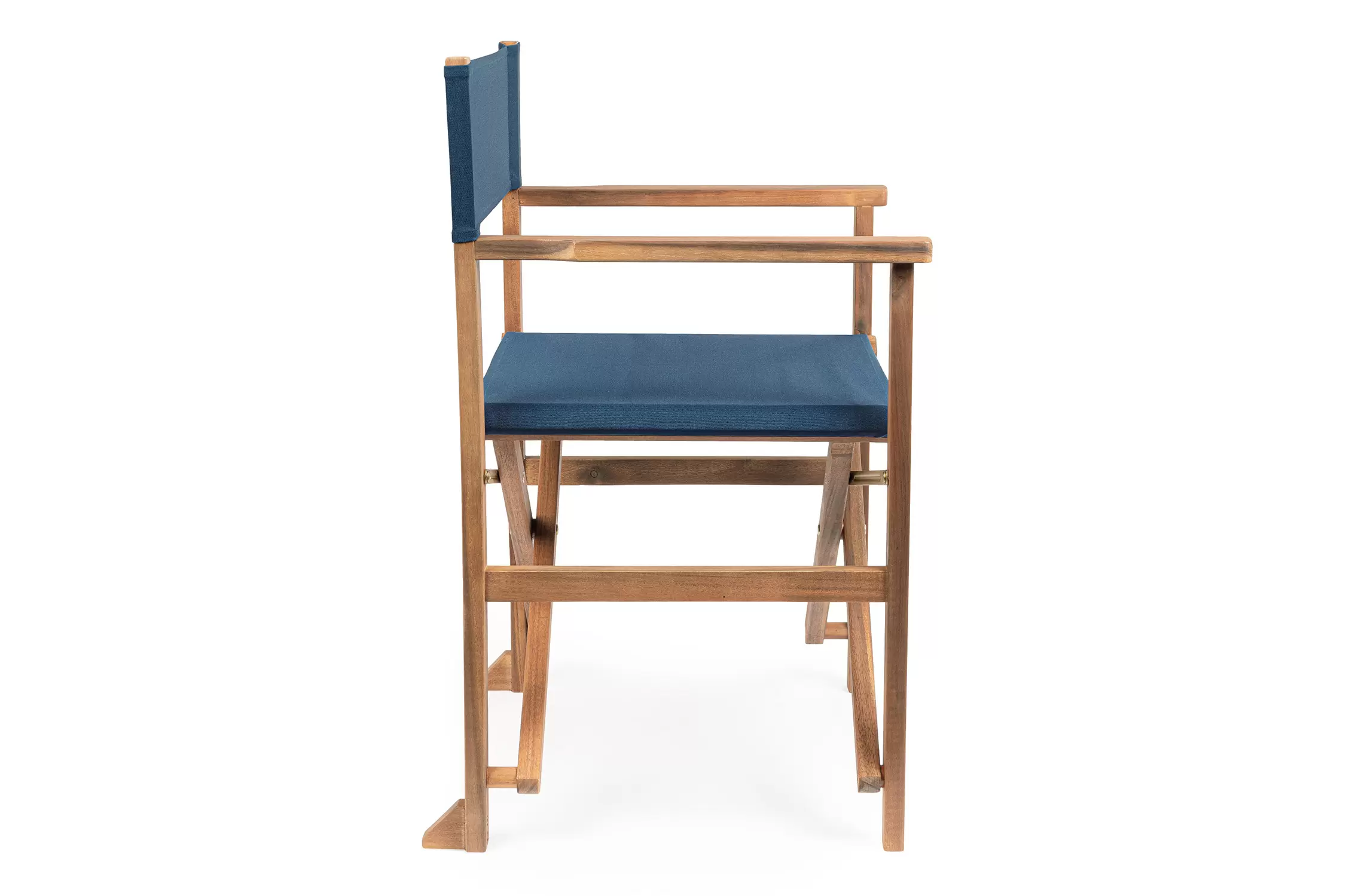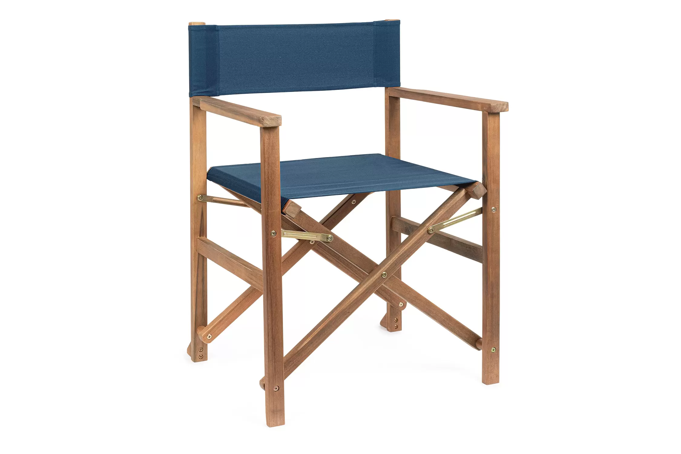 Składany fotel reżyserski z drewna akacji z oparciem i siedziskiem z materiału poliestrowgo. Producent zaleca stosowanie na zadaszonych tarasach lub do wnętrz.