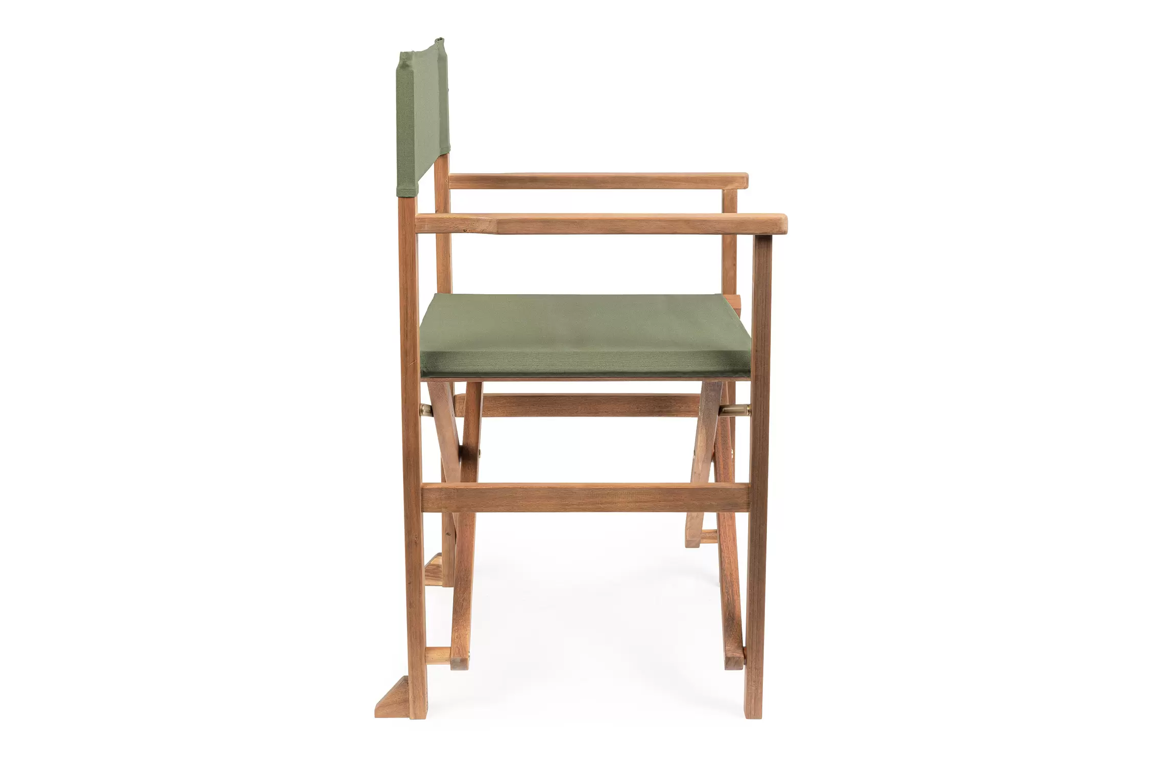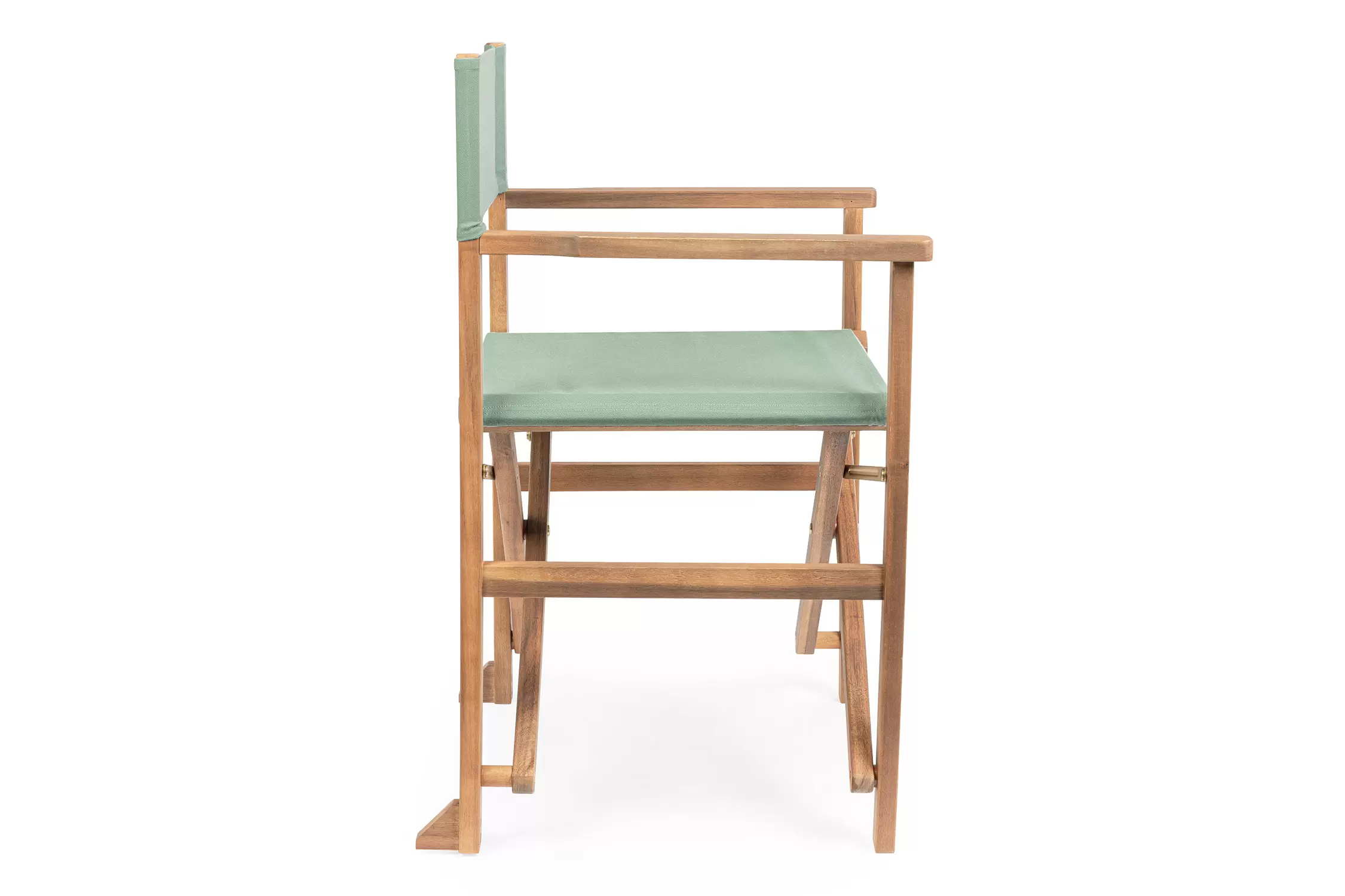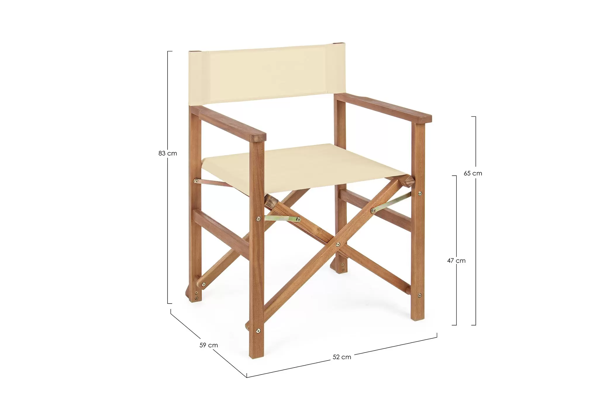 Składany fotel reżyserski z drewna akacji z oparciem i siedziskiem z materiału poliestrowgo. Producent zaleca stosowanie na zadaszonych tarasach lub do wnętrz.