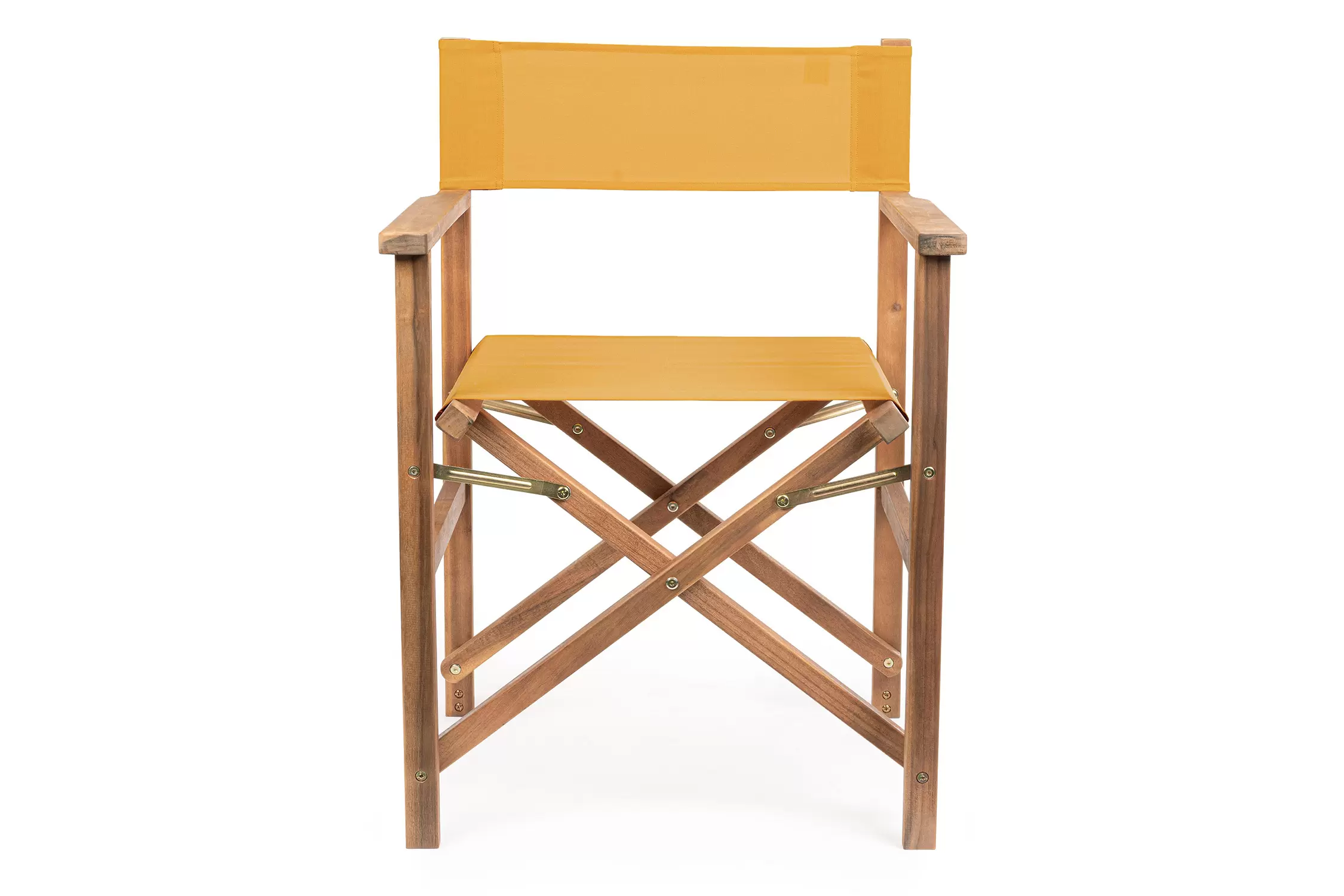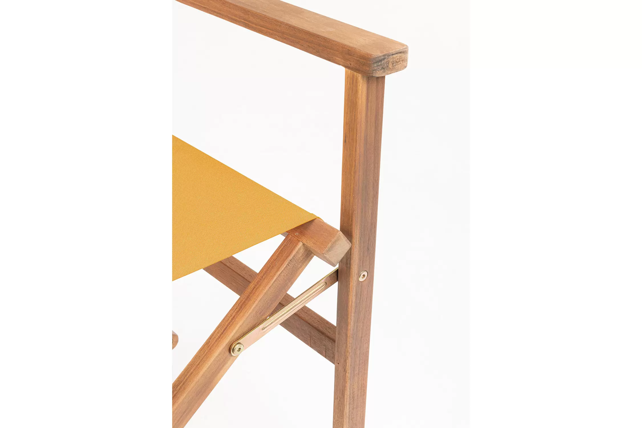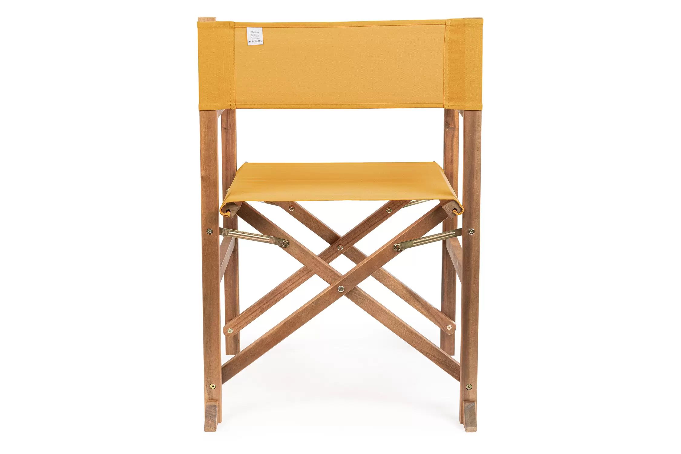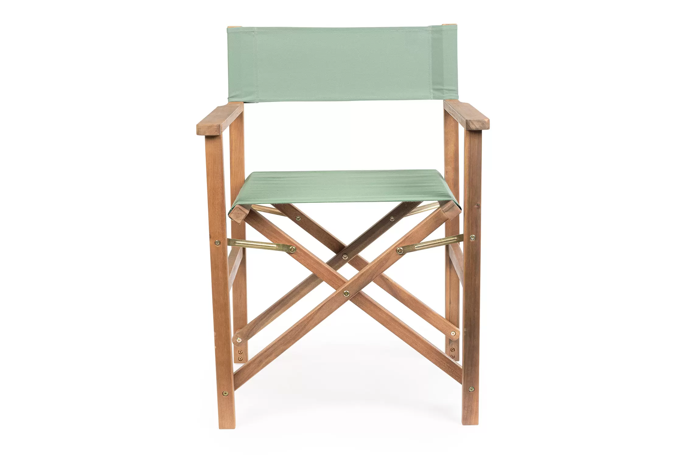Składany fotel reżyserski z drewna akacji z oparciem i siedziskiem z materiału poliestrowgo. Producent zaleca stosowanie na zadaszonych tarasach lub do wnętrz.