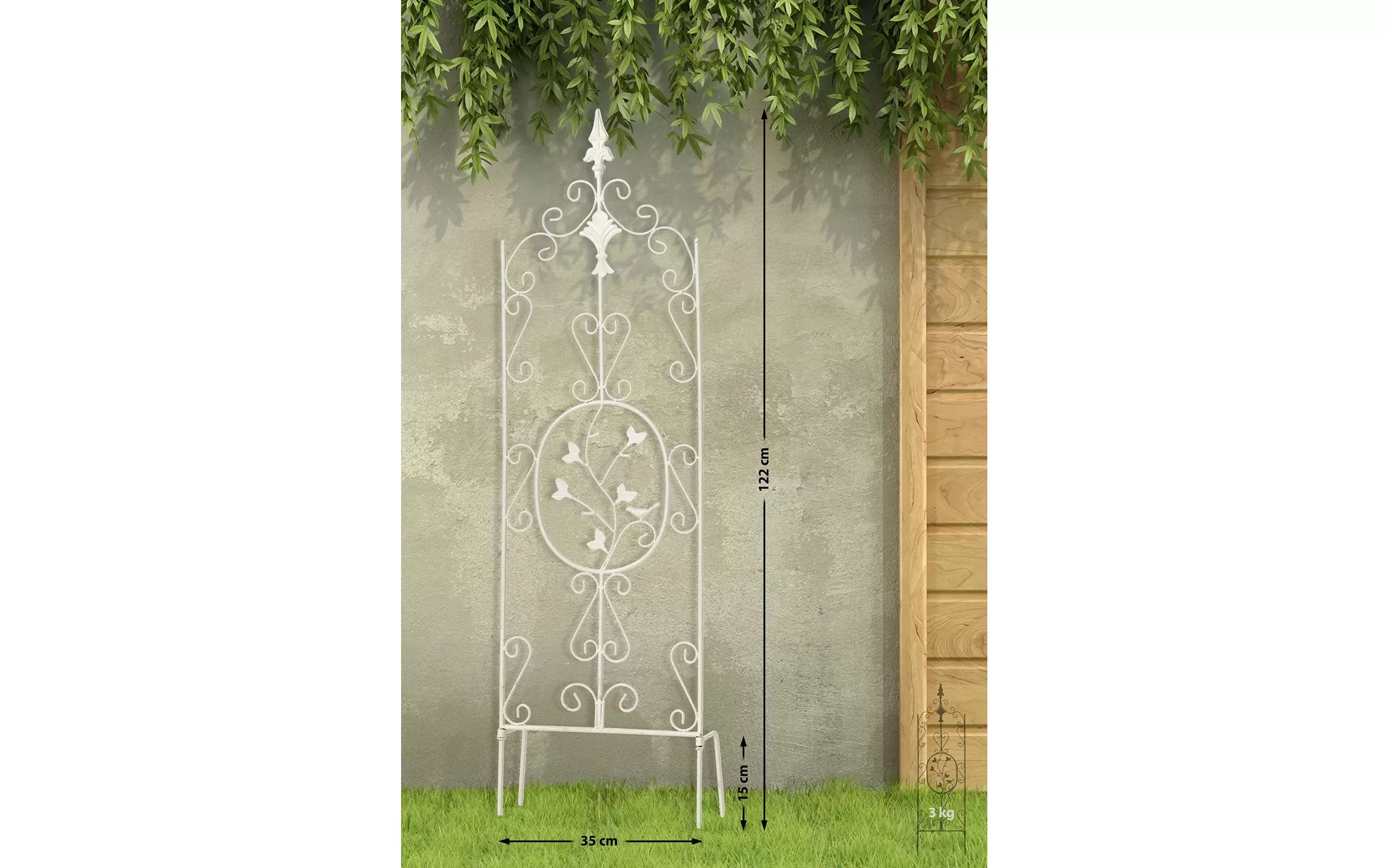 Trelisa ma elegancki wygląd i jest idealną pomocą przy wspinaczce dla wszystkich pnączy, takich jak róże czy bluszcz. Posiada nóżki, które można dowolnie obracać, aby mocno zakotwiczyć w ziemi.