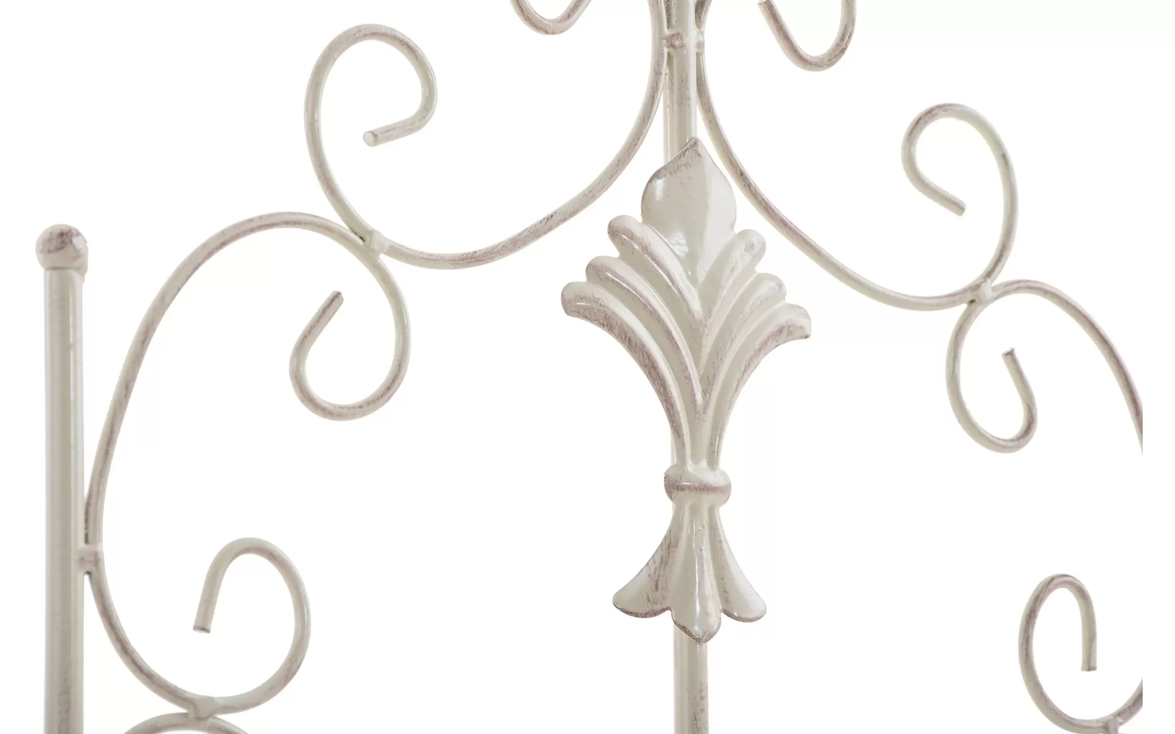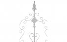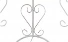 Konstrukcja stalowa - rurki z grubymi ściankami o średnicy 1 cm oraz metalowe tłoczone ornamenty.