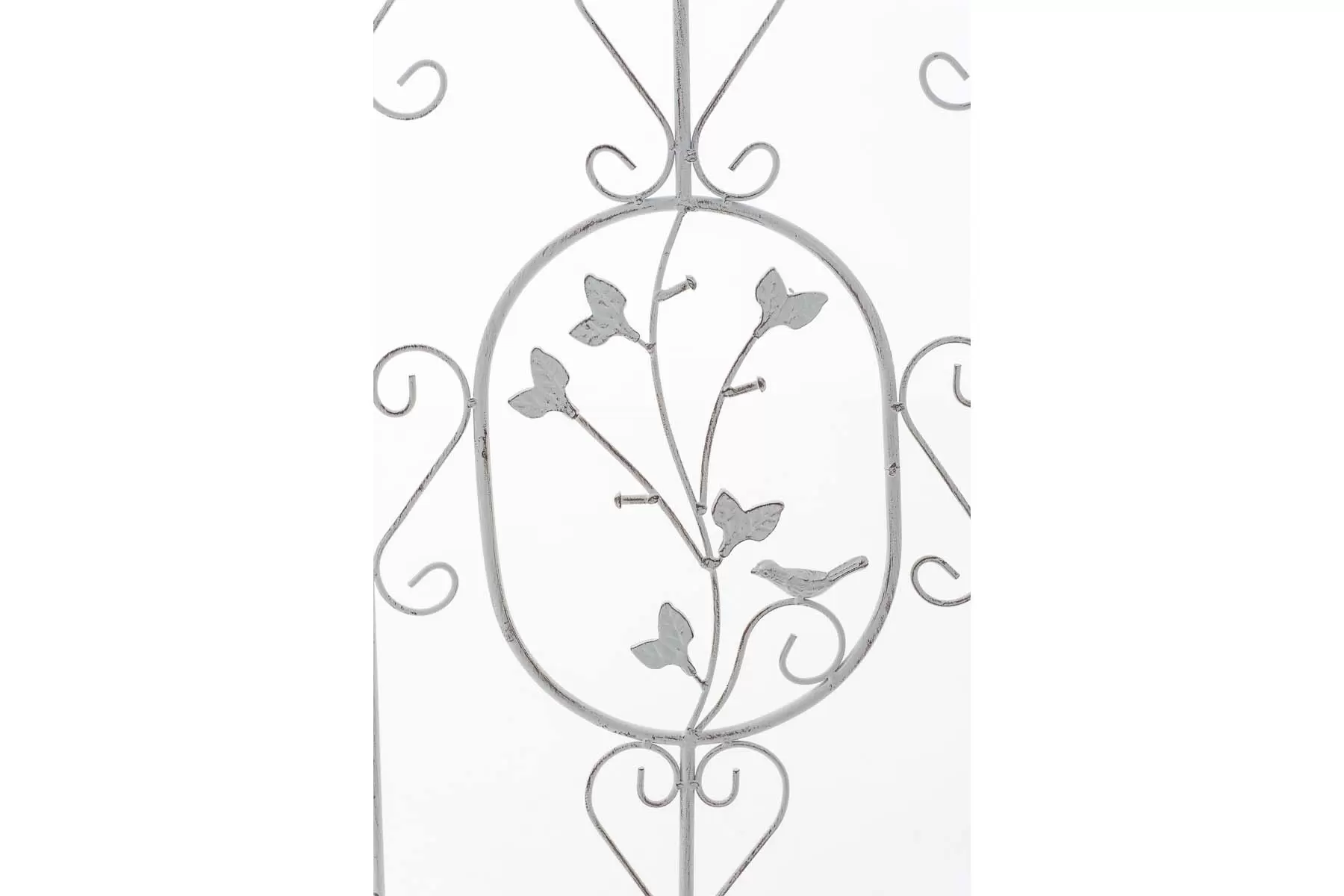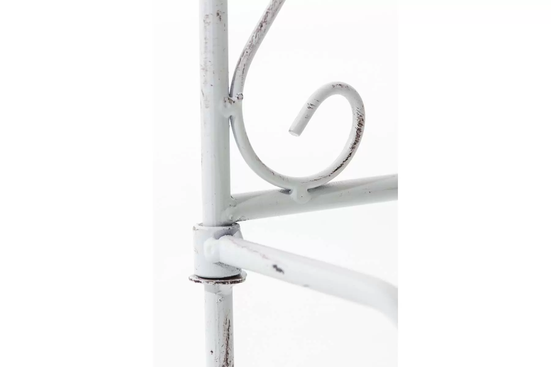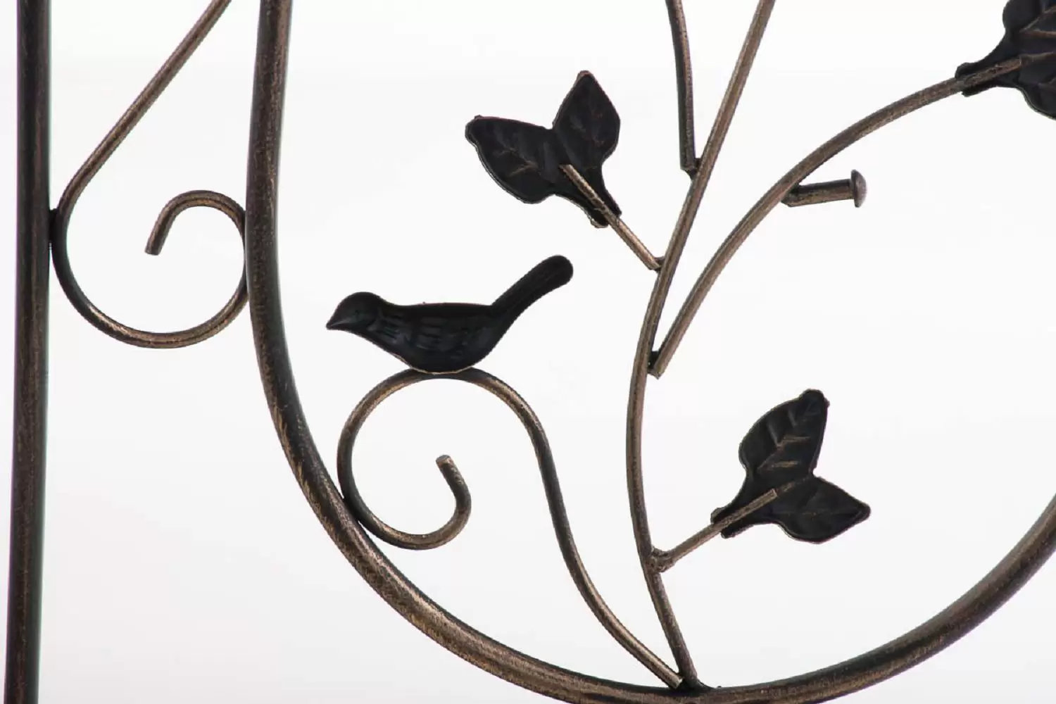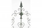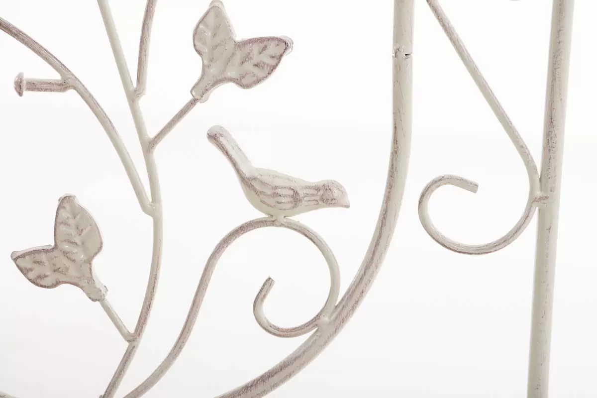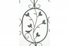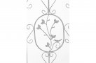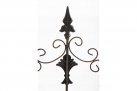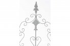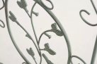 Konstrukcja stalowa - rurki z grubymi ściankami o średnicy 1 cm oraz metalowe tłoczone ornamenty.