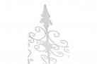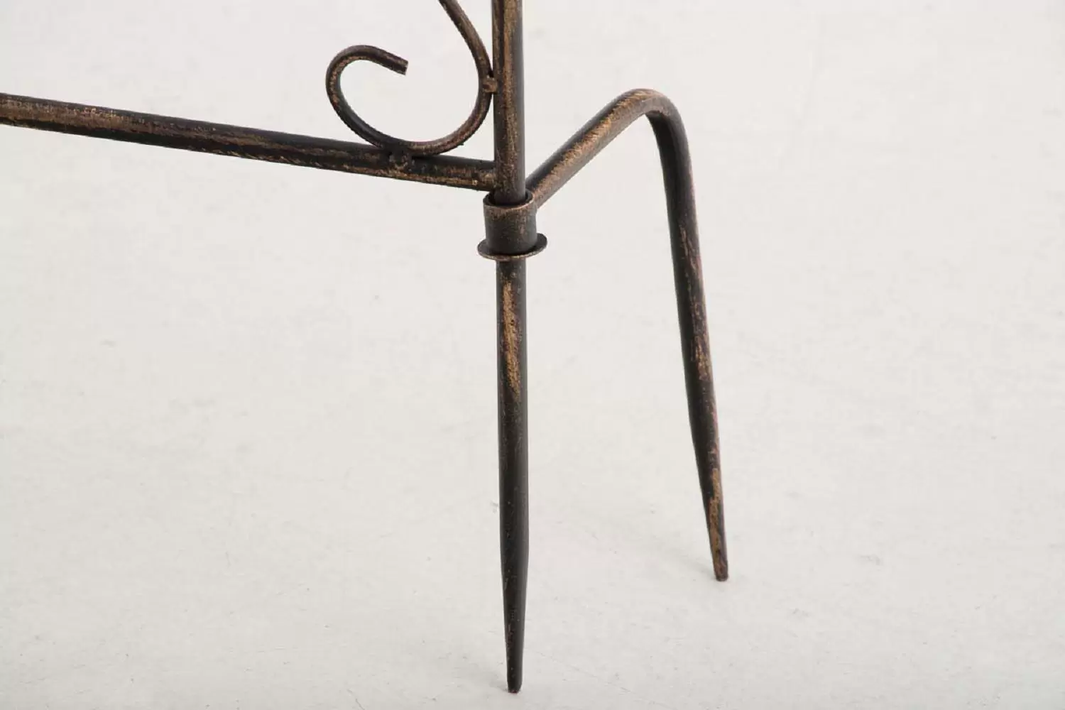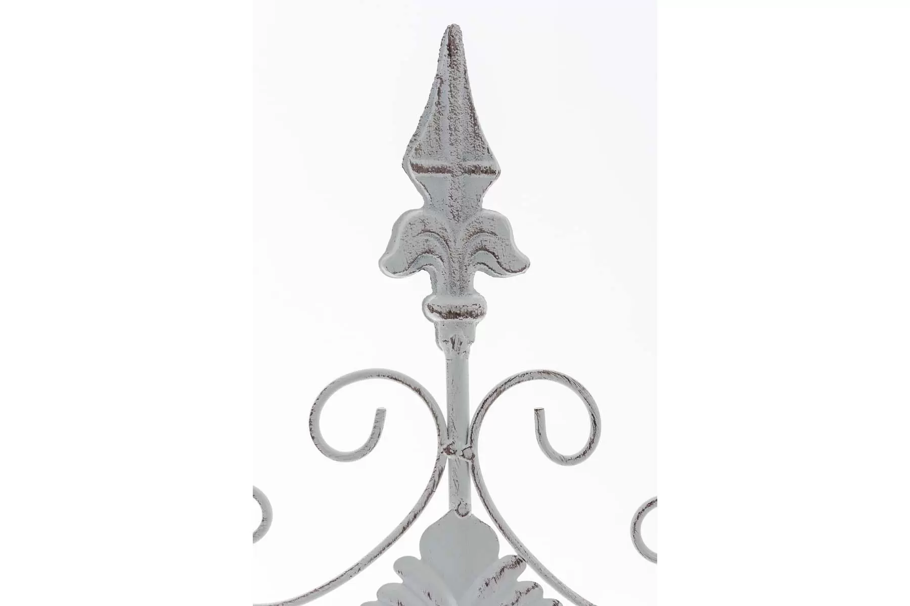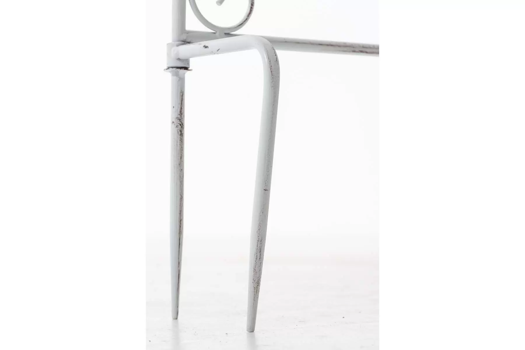 Konstrukcja stalowa - rurki z grubymi ściankami o średnicy 1 cm oraz metalowe tłoczone ornamenty.