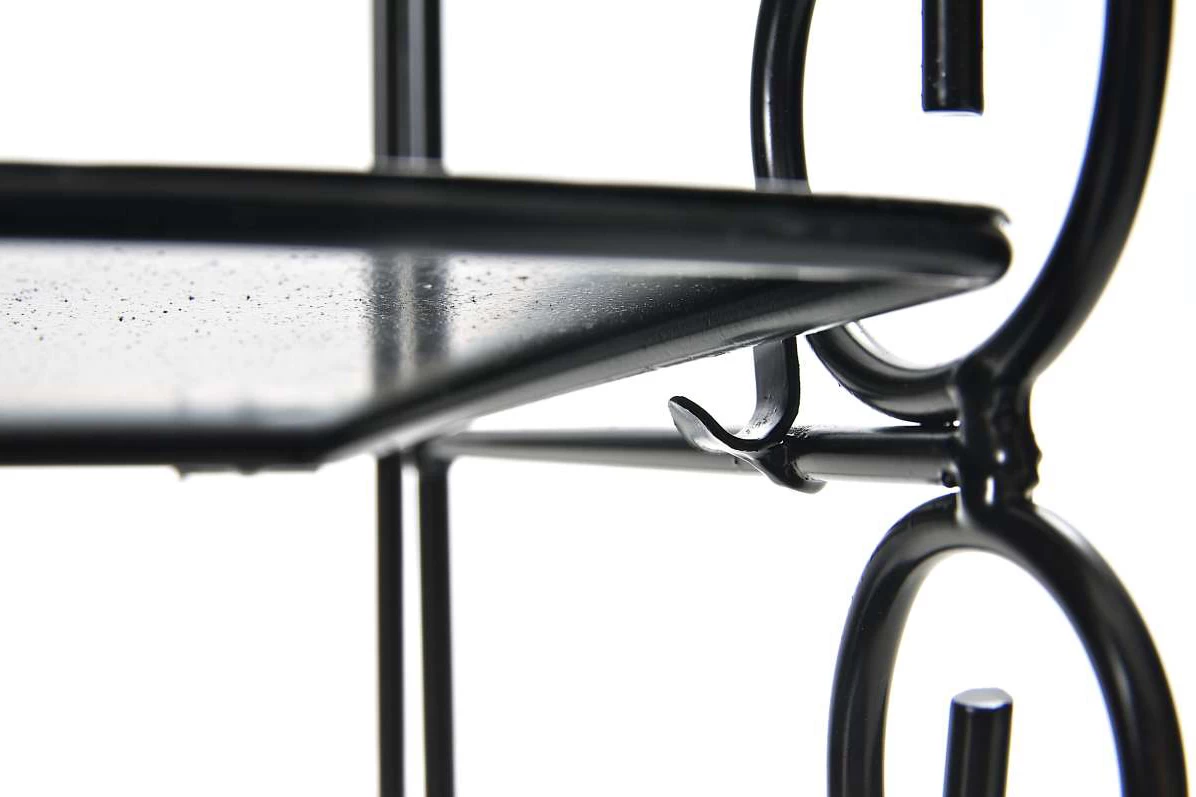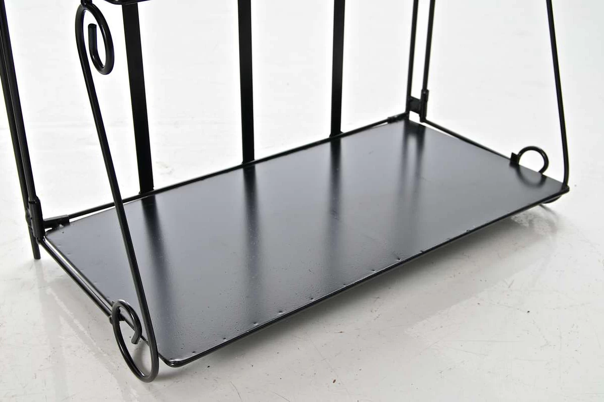 Półka wisząca nie jest wykonana z cienkościennej blachy, ale z grubej żelaznej rury. Jakość jest bardzo dobra. Malowanie proszkowe umożliwia użytkowanie na zewnątrz.