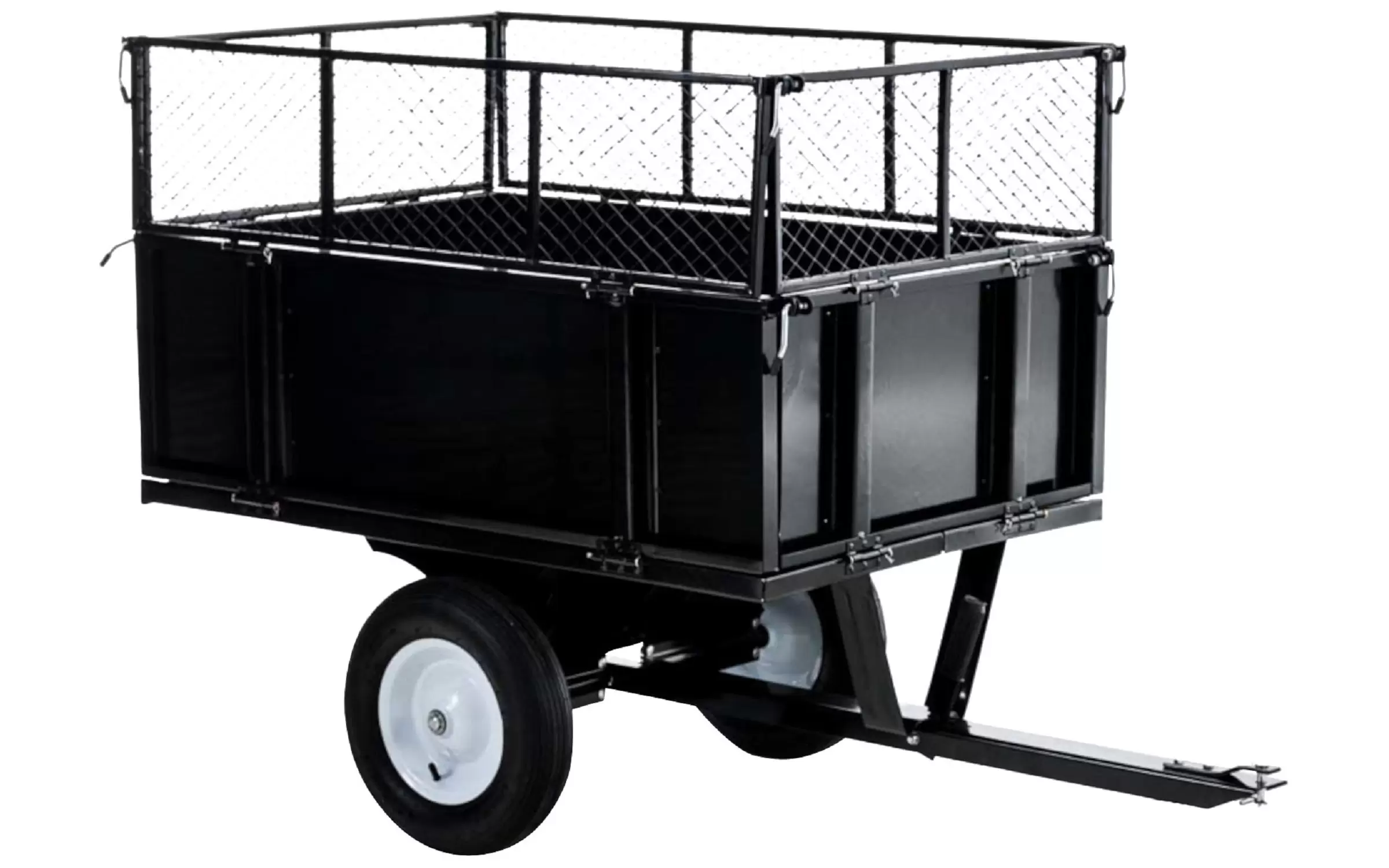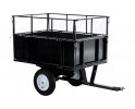 Idealny do traktorków ogrodowych, quadów, małych ciągników do transportu różnych materiałów. Przyczepa jednoosiowa, przeznaczona do podłączenia do wszystkich popularnych traktorków ogrodowych, jest solidną przyczepą uniwersalną do transportu trawy, liści, nawozu lub kompostu.