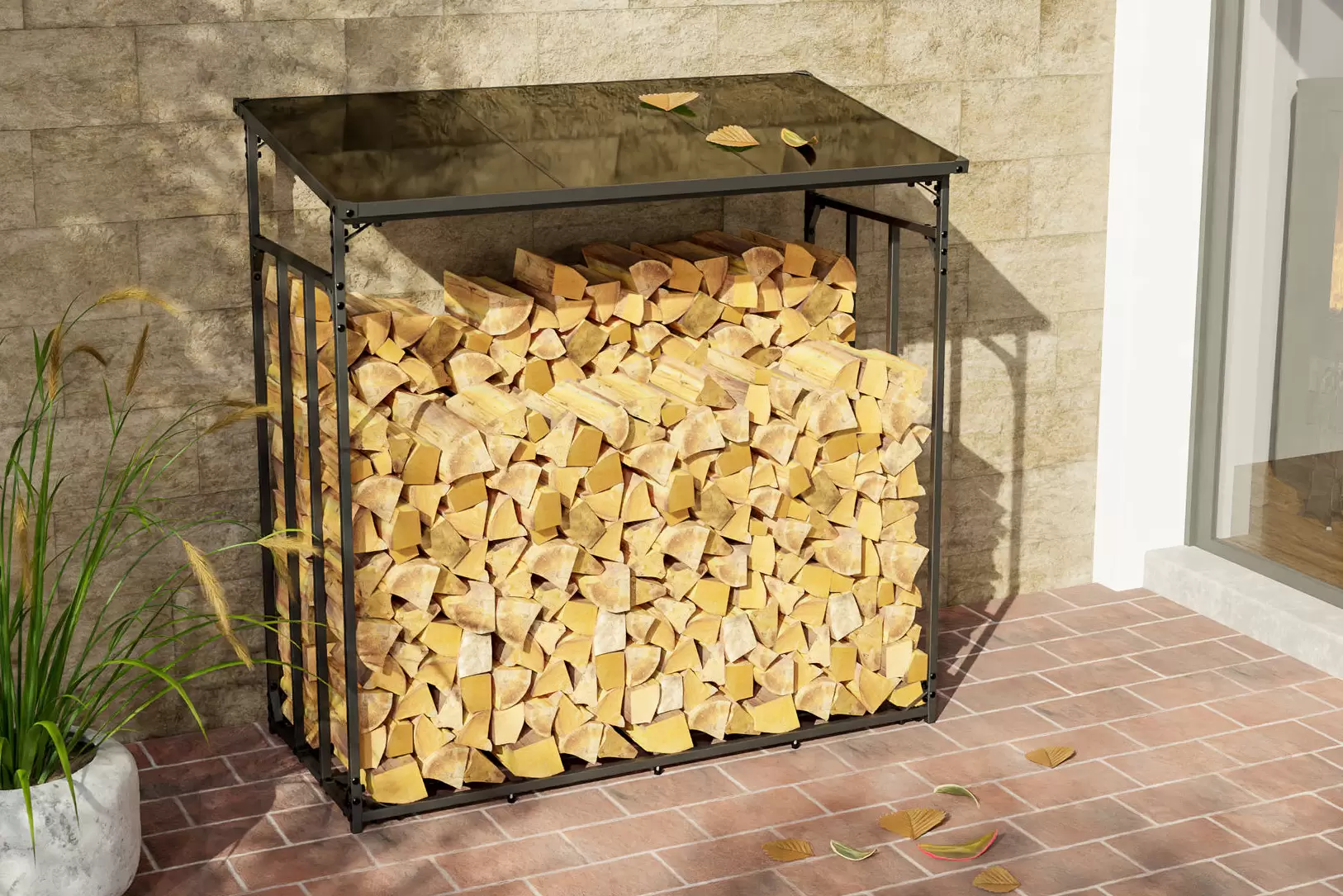 Solidne zadaszenie na drewno opałowe jest idealnym rozwiązaniem dla posiadaczy kominków. Przemyślana konstrukcja gwarantuje odpowiednie przechowywanie. W ten sposób drewno można bezpiecznie układać w stosy i przechowywać aż do wyschnięcia. Konstrukcja z solidnych profili kwadratowych z aluminium malowana proszkowo. Dzięki zastosowanym materiałom zadaszenie jest łatwe w montażu i trwałe. Jest łatwy w montażu. Spadzista powierzchnia poliwęglanowego dachu chroni również drewno przed wilgocią z góry.