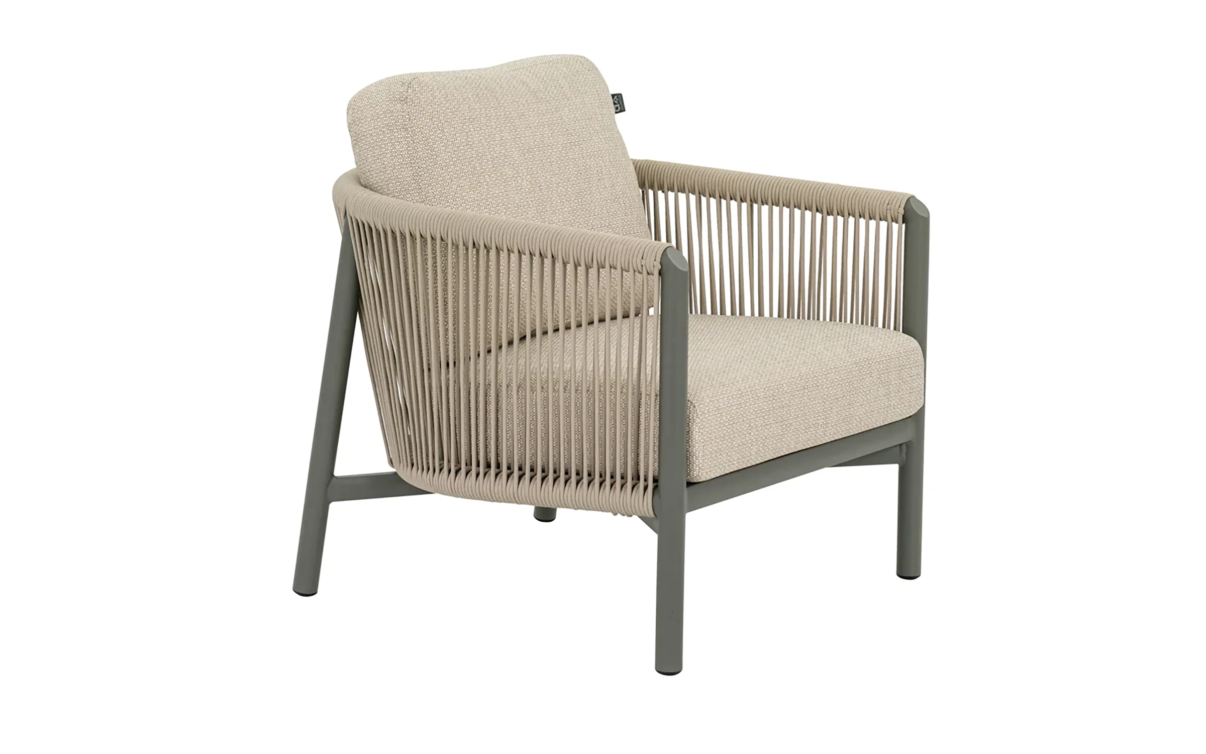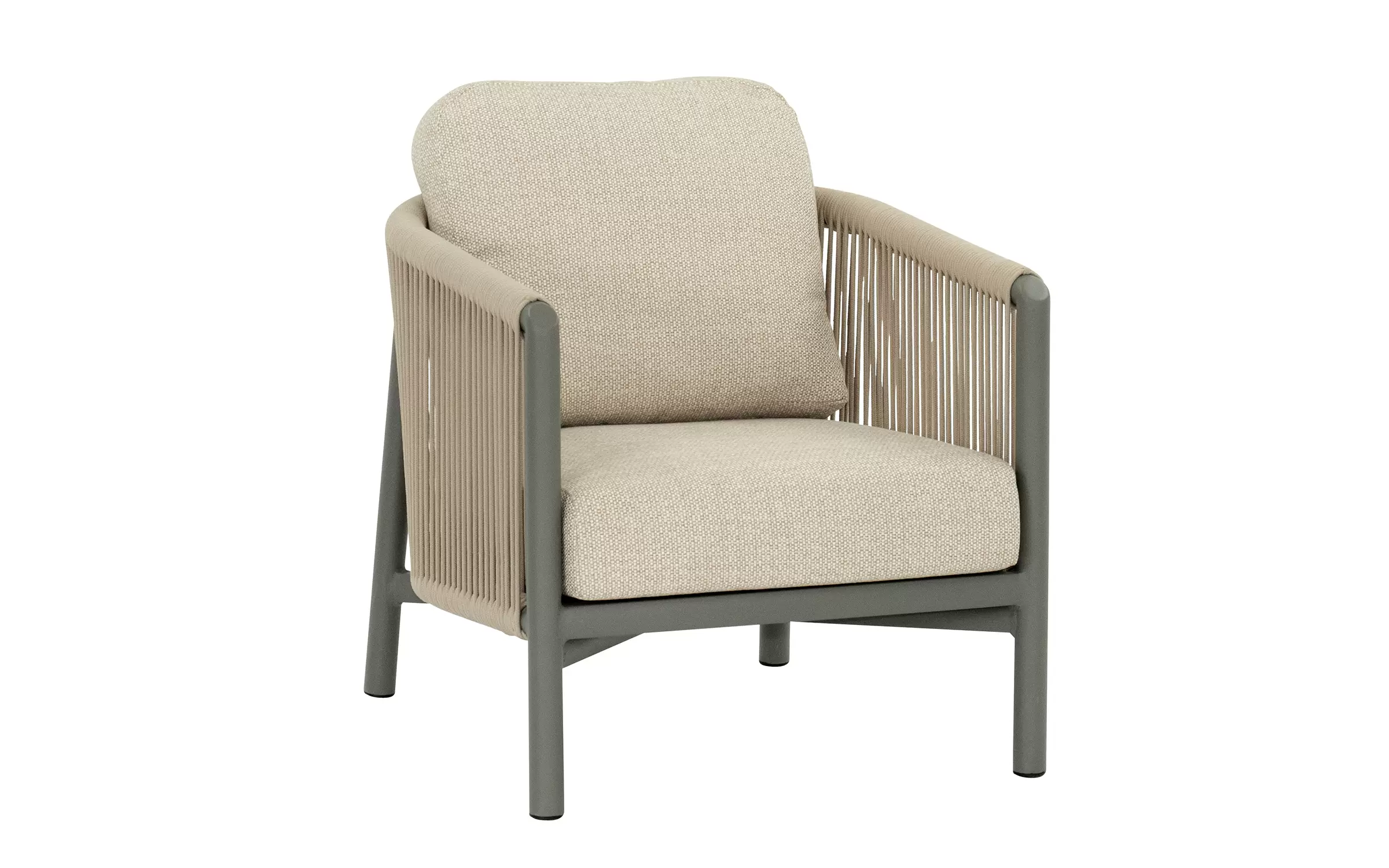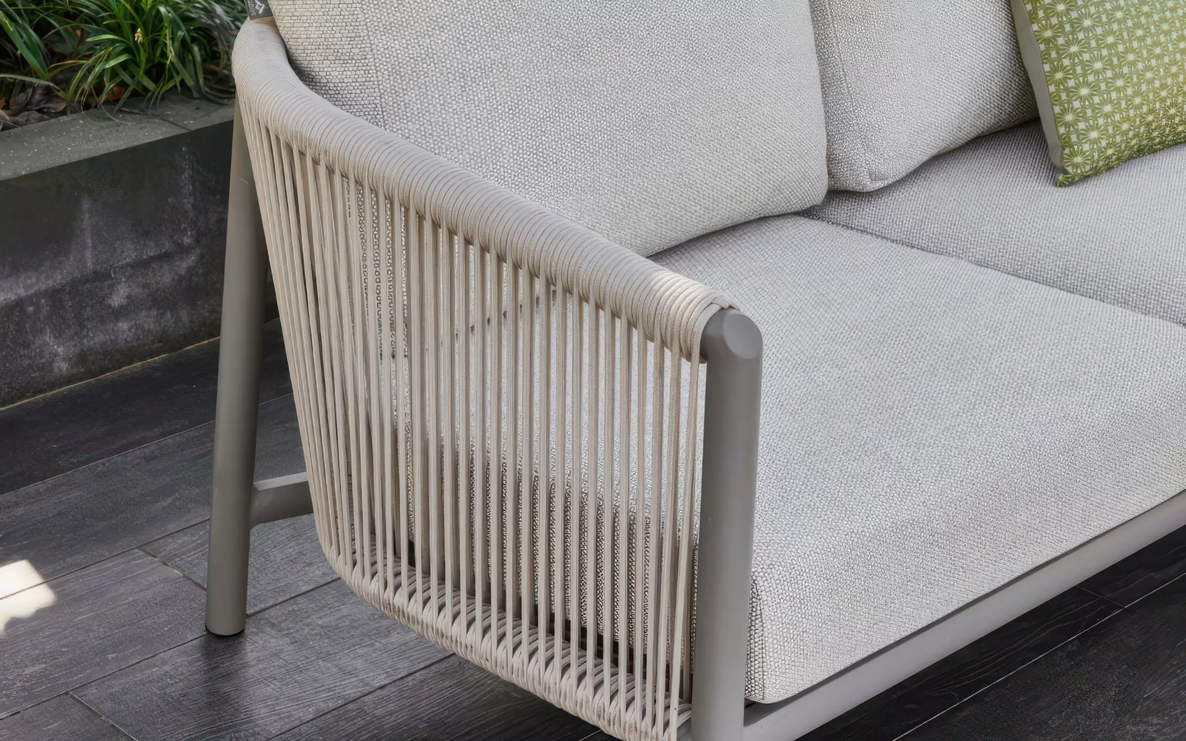 Konstrukcja z malowanego proszkowo aluminium – lekka, trwała i odporna na korozję. Oparcia z liny polipropylenowej – elastycznej, odpornej na wilgoć i promieniowanie UV. Poduszki z wypełnieniem Bee Wett – szybkoschnąca pianka o otwartej strukturze, która nie zatrzymuje wilgoci. Poszewki z tkaniny Olefin – odporne na zabrudzenia, pleśń i blaknięcie, łatwe w czyszczeniu. Wszystkie materiały przystosowane do użytku zewnętrznego przez cały sezon.