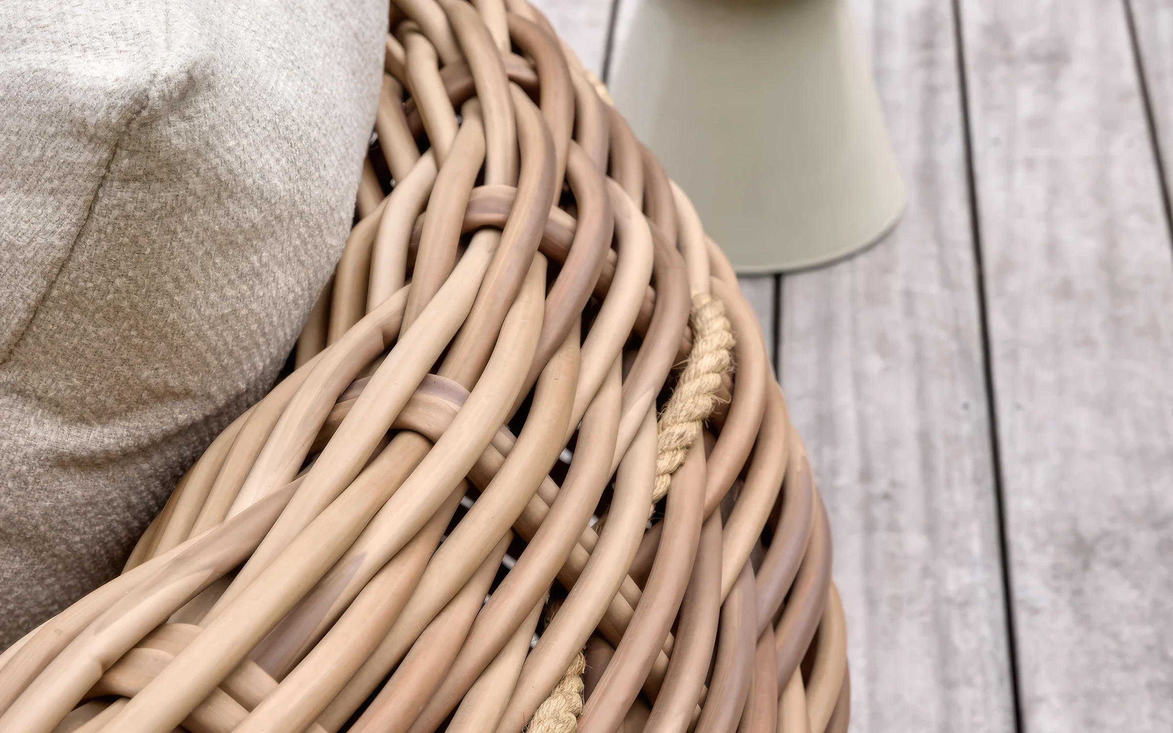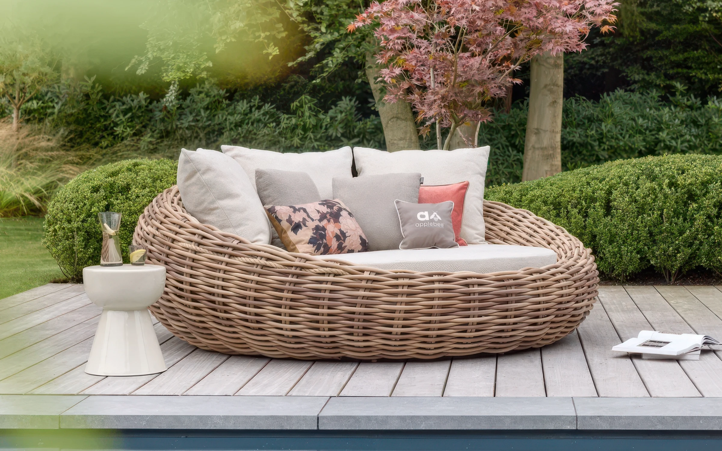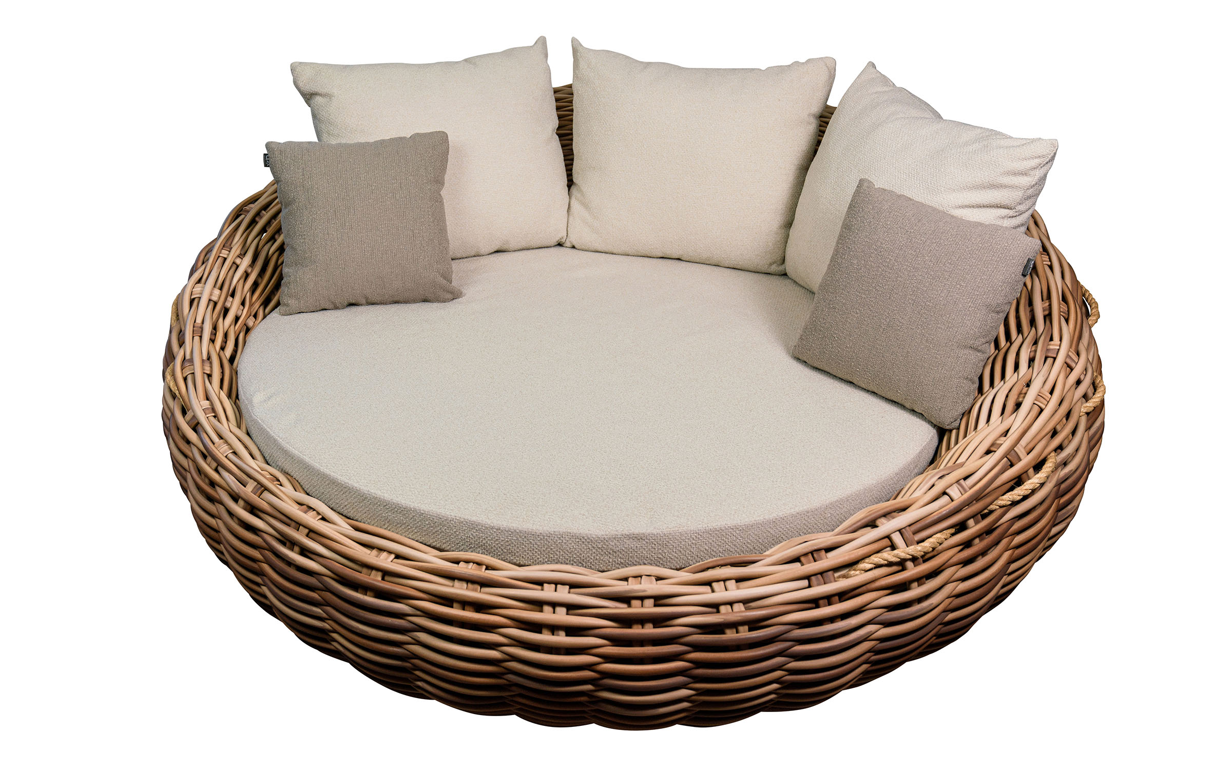 Model COCOON DAYBED to przestronne łóżko ogrodowe o imponującej średnicy, stworzone z myślą o relaksie w ogrodzie lub na tarasie. Jego zaokrąglona forma i ręcznie pleciony technorattan w naturalnym odcieniu tworzą harmonijną całość, która przyciąga wzrok i zapewnia wyjątkowy komfort. Do wyboru dwie wersje kolorystyczne poduszek: zielony Olefin lub beżowy Boucle.