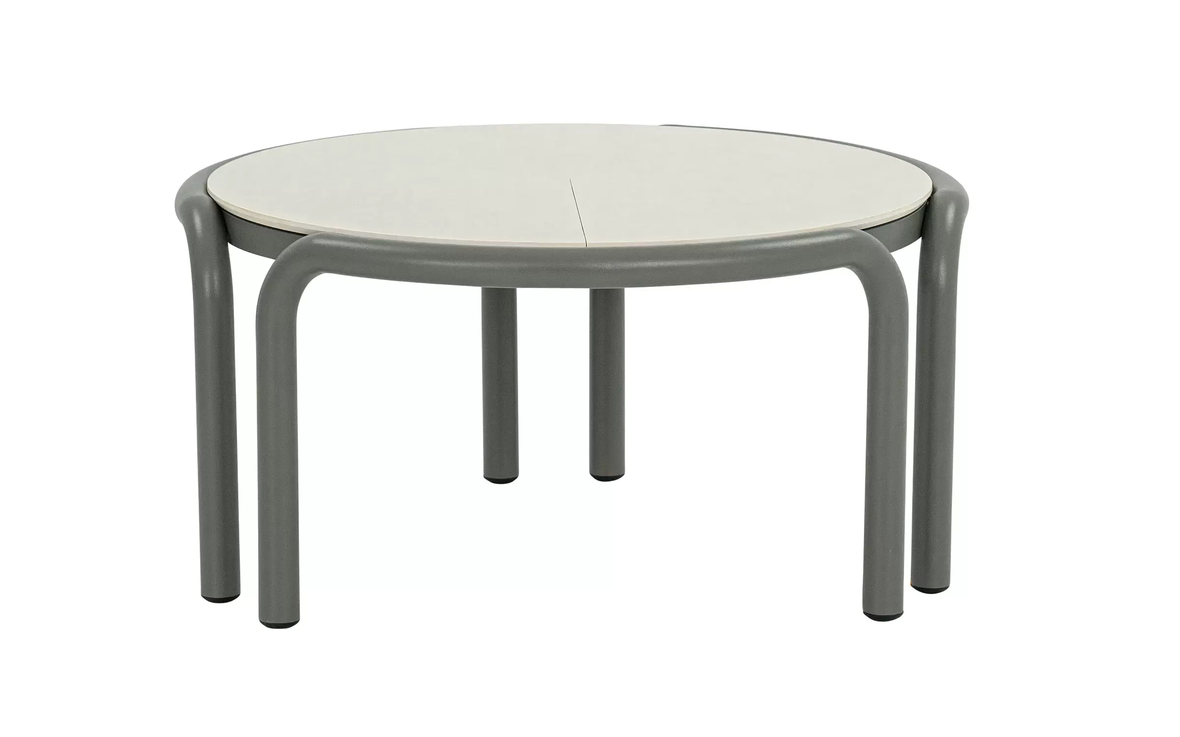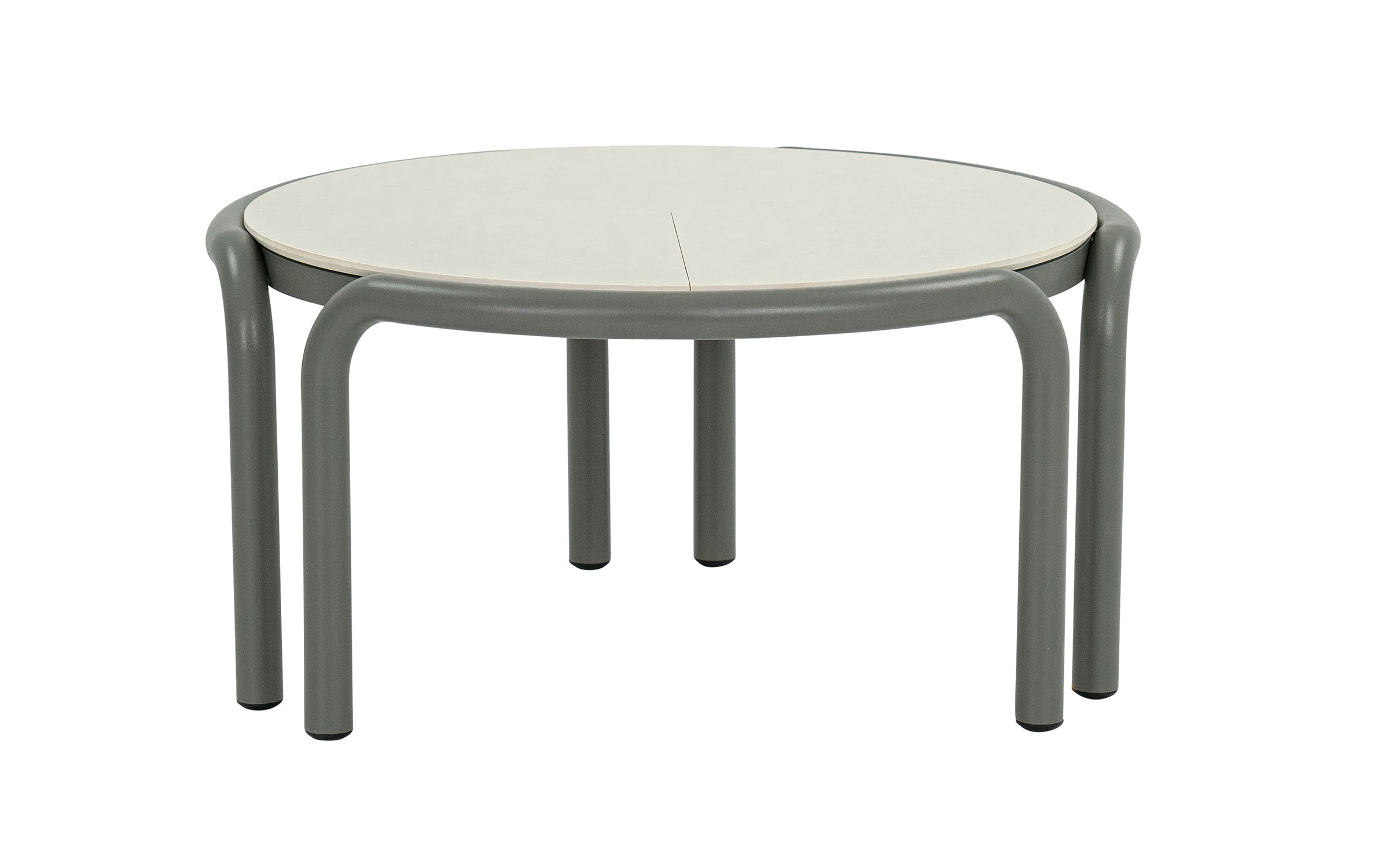 - 1× Stolik kawowy Lugano Ø 79,5 cm – blat Sintered Stone Travertino White