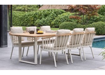 Poduszki: technologia BEE WETT® to rozwiązanie stworzone z myślą o użytkowaniu na zewnątrz. Wypełnienie nie chłonie wilgoci, a tkanina Olefin jest odporna na promieniowanie UV, pleśń i zabrudzenia. Poszewki są miękkie i przyjemne w dotyku, a jednocześnie szybkoschnące i łatwe w czyszczeniu. Dzięki temu poduszki zachowują świeżość i estetykę przez wiele sezonów bez konieczności chowania ich przed deszczem.