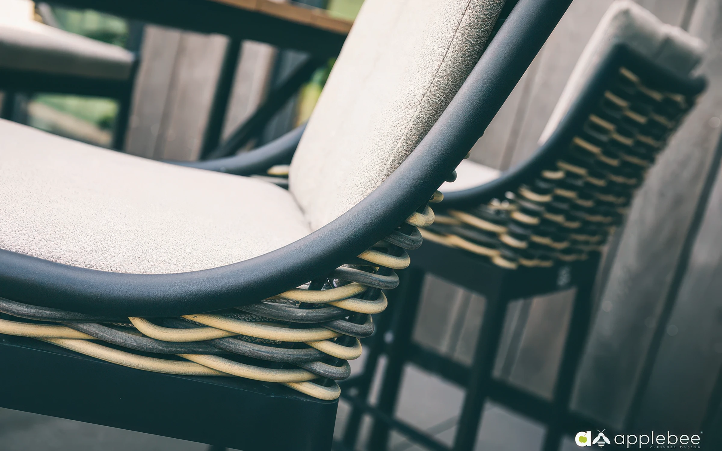 Konstrukcja z aluminium malowanego proszkowo – lekka, trwała i odporna na korozję. Oplot z technorattanu Willow Wave – syntetyczne włókno odporne na wilgoć, promieniowanie UV i zmienne warunki atmosferyczne.