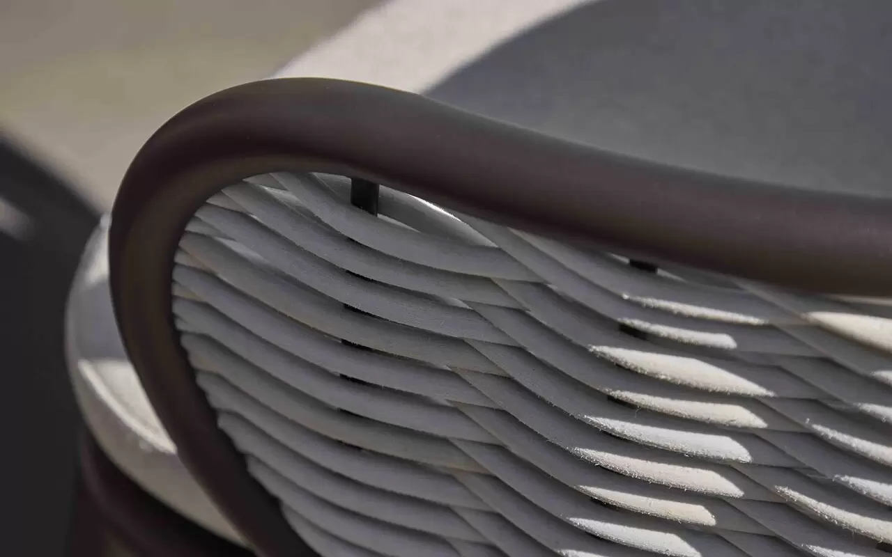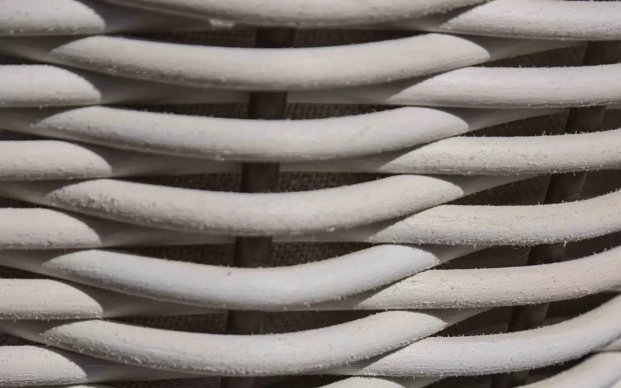 Technorattan o przekroju okrągłym – najbardziej prestiżowy i wytrzymały wariant splotu polimerowego (HDPE). Okrągły profil włókna zapewnia znacznie większą masę materiału i odporność na zrywanie niż plecionki płaskie. Materiał jest barwiony w masie, co gwarantuje stabilność koloru nawet przy wieloletniej ekspozycji na słońce.