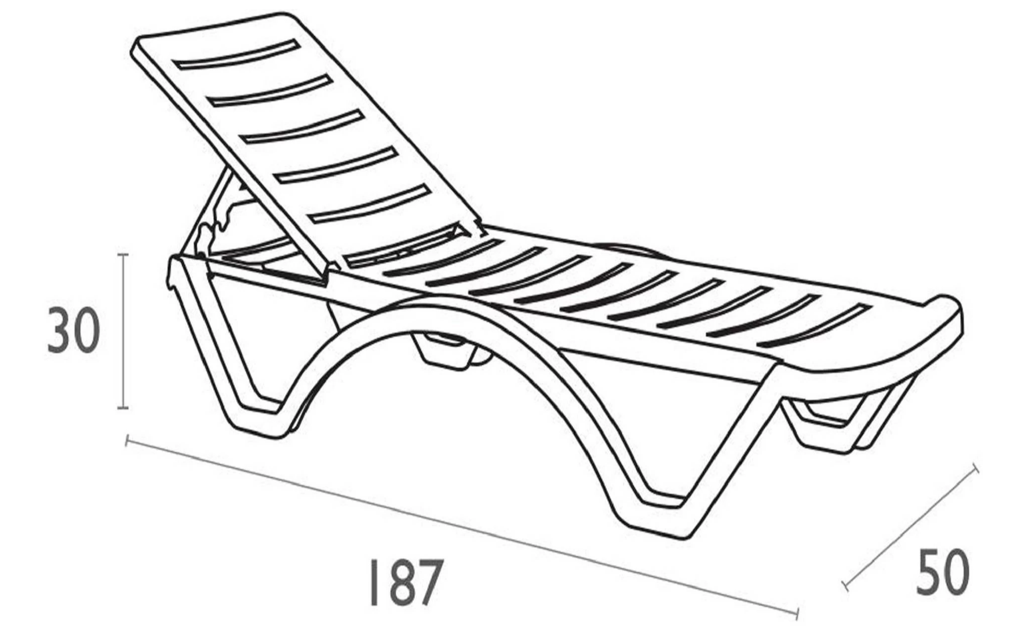 Szerokość 50 cm / Głębokość 187 cm / Wysokość 30 cm