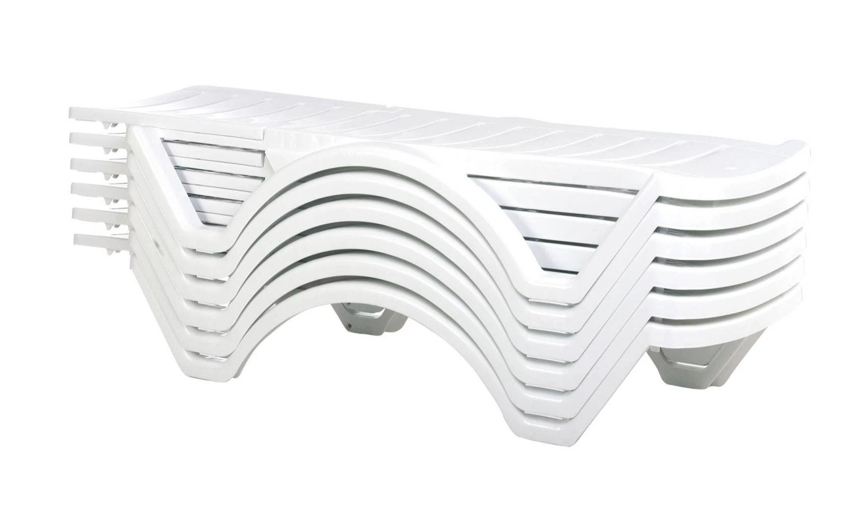 Leżaki wykonano z trwałego tworzywa sztucznego odpornego na warunki atmosferyczne. Są lekkie, łatwe w czyszczeniu i można je sztaplować, co ułatwia przechowywanie.
