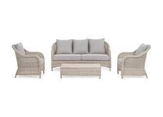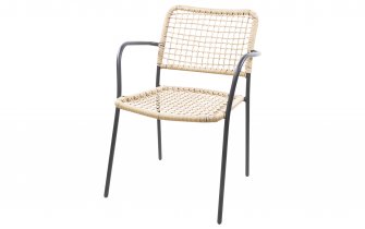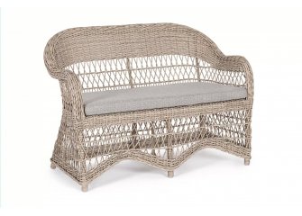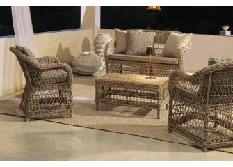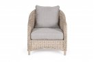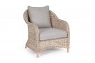 Ekskluzywny fotel ogrodowy na taras w klasycznej formie. Fotel wykonany z technorattanu beżowego. Poduszki wodoodporne ze zdejmowanymi poszewkami z materiału Olefin.