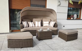 Klasyczna beżowa sofa ogrodowa wypoczynkowa do klasycznych tarasów ADITYA