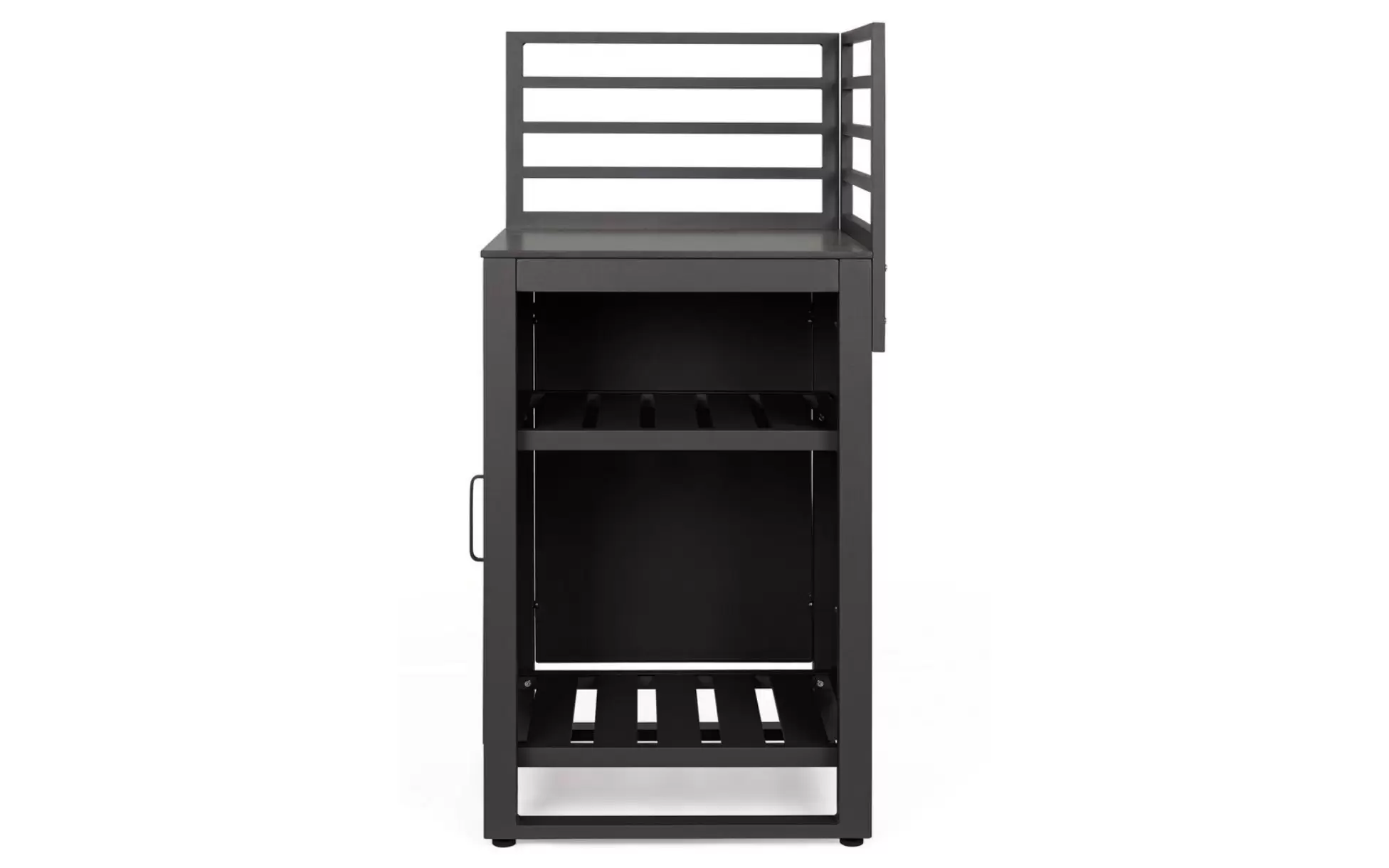 Narożny moduł kuchenny ANIA to funkcjonalny element nowoczesnej kuchni ogrodowej, zaprojektowany do tworzenia ergonomicznych układów narożnych. Łączy otwarte półki z funkcją szafki, zapewniając wygodne przechowywanie akcesoriów kuchennych i wyposażenia.