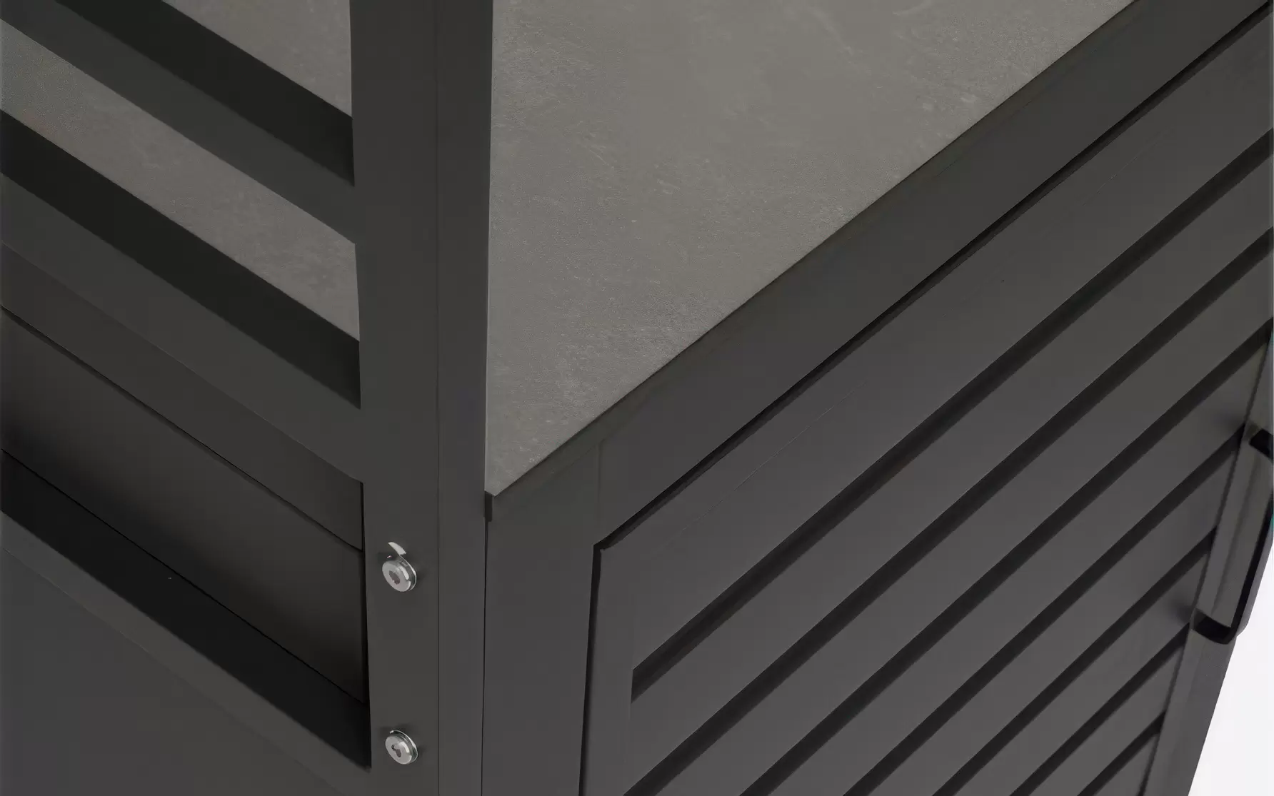 Moduł wyposażono w regulowane stopki, które umożliwiają stabilne ustawienie na każdej powierzchni. ANIA Corner Cabinet może być stosowana jako samodzielny element lub jako łącznik między innymi modułami kuchni ogrodowej.