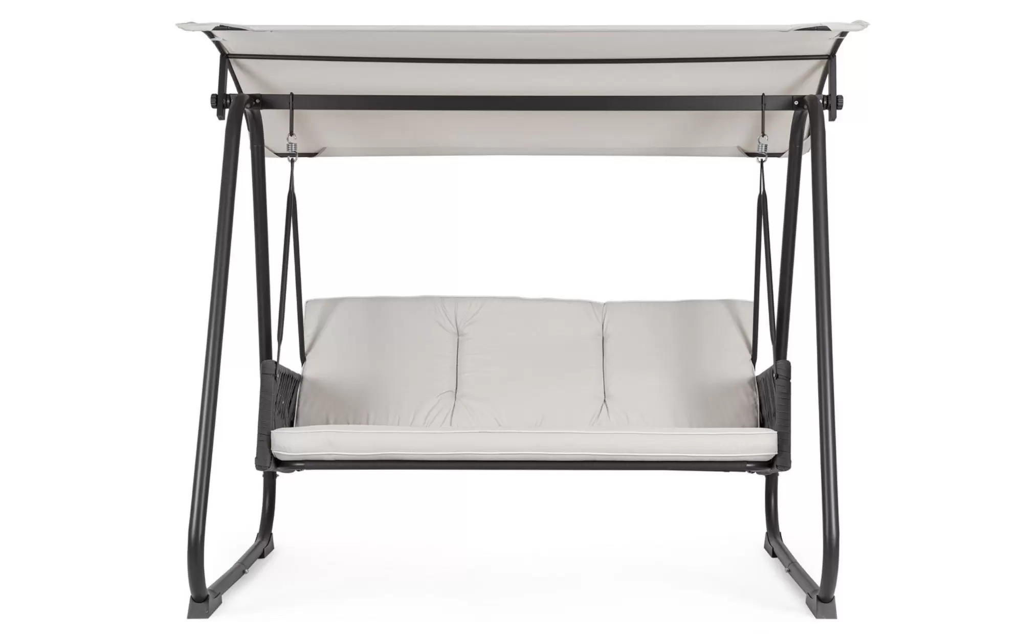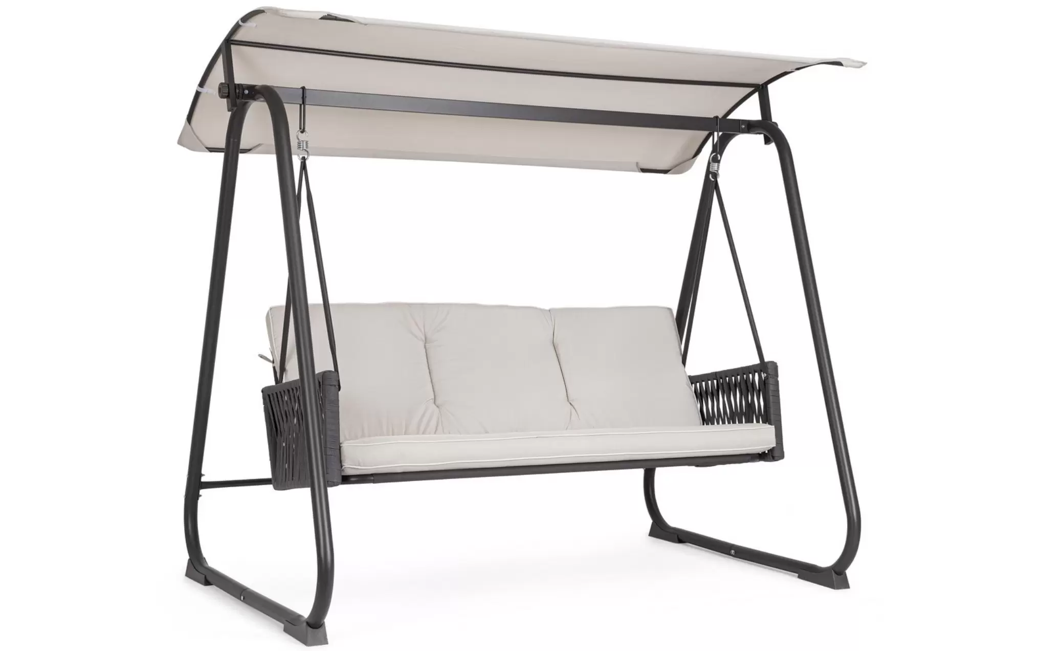 DEDALO to wygodna, trzyosobowa huśtawka ogrodowa wyposażona w regulowany daszek, który zapewnia ochronę przed słońcem i pozwala stworzyć komfortową strefę wypoczynku na tarasie lub w ogrodzie. Stabilna konstrukcja oraz miękkie poduszki gwarantują wysoki poziom relaksu.