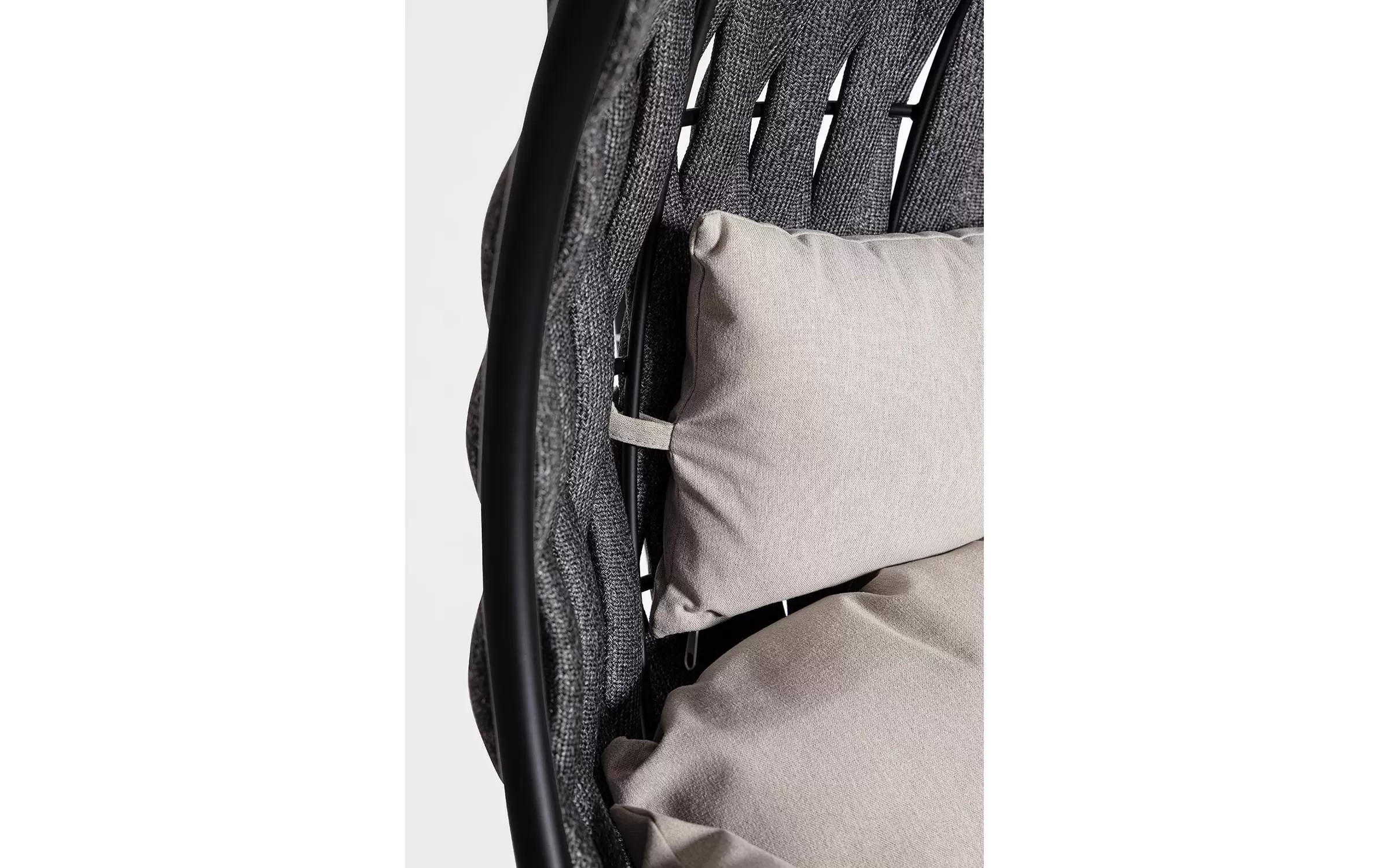 Huśtawka wisząca kokon z ładnym oplotem z pasów z materiału poliestrowego z wkładem z kauczuku.